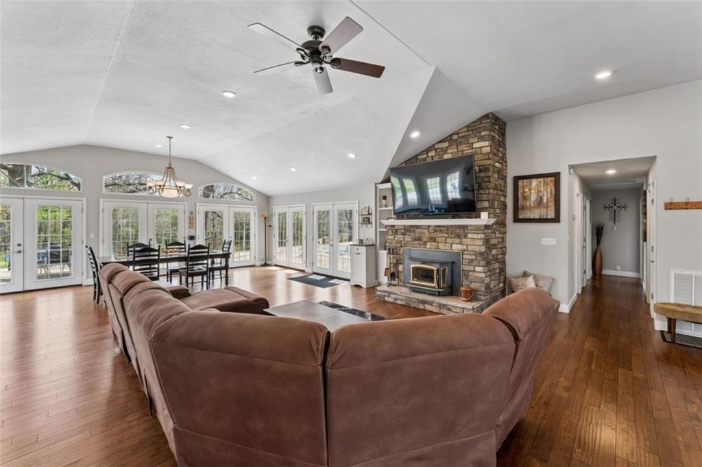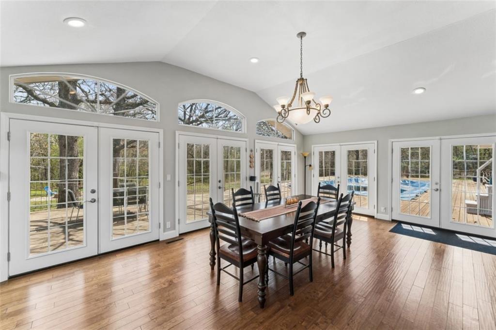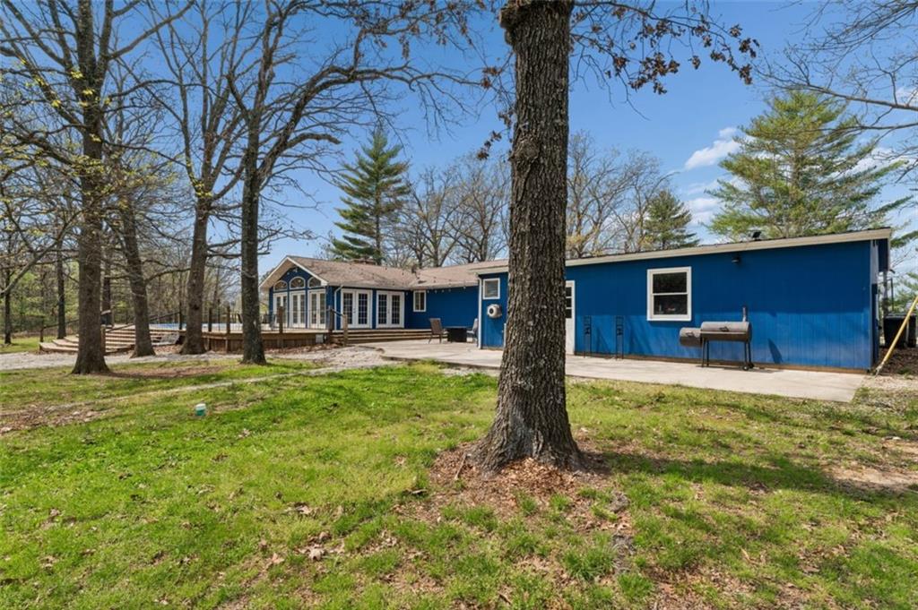 Welcome to 14441 Highway U, Cross Timbers, MO 65634, a beautifully maintained 3-bedroom, 3-bath home with over 3,700 sq ft, perfectly positioned on 20 scenic acres of mixed open land and mature woods. This is where modern comfort meets rural independence. From the moment you arrive, the oversized driveway and attached two-car garage with workshop space set the tone for functionality and scale. Step inside to discover a bright, open layout featuring quartz countertops, stainless steel appliances, and warm hardwood flooring, all anchored by a cozy living room fireplace that creates the perfect gathering space. The heart of the home flows seamlessly into a stunning dining area wrapped in windows, flooding the space with natural light and offering uninterrupted views of your private land. Just beyond, step out onto the expansive deck, where an above-ground pool with electric heater and outdoor entertaining space create the ultimate setting for summer nights and weekend gatherings. The newly finished basement (2023) adds incredible flexibility with an additional bedroom and full bathroom, making it ideal for guests, extended family, or multi-generational living. Outside is where this property truly separates itself. Enjoy your own private pond, wooded acreage with established trails for ATV riding and hiking, and two deer stands, making this a dream setup for hunting and outdoor enthusiasts. A dedicated shooting range further enhances the recreational appeal. For those seeking versatility and income potential, the 12x36 Amish-built log cabin with heat, AC, and pellet stove offers the perfect guest retreat, Airbnb opportunity, or private office space. Located on a paved road in the peaceful Cross Timbers area, this property offers the privacy buyers crave without sacrificing accessibility. If you’ve been searching for a Missouri acreage home with land, privacy, hunting, and modern upgrades. This is it. Optionally comes fully furnished.
