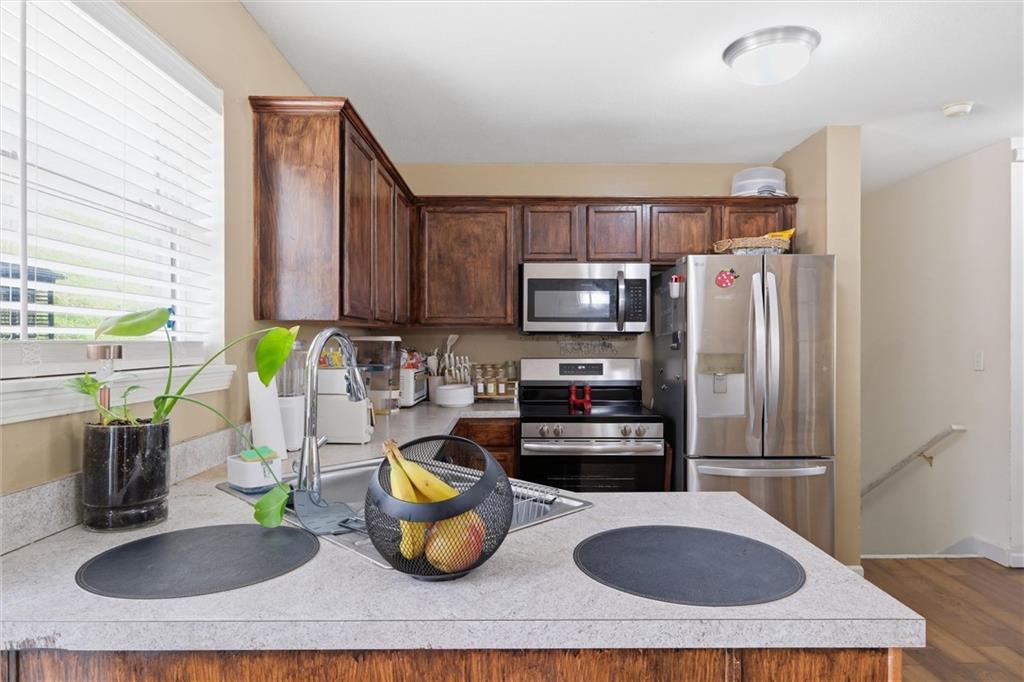 Charming 3-bedroom, 2.5-bath side-by-side split home offering a functional layout and great potential. The main level features a spacious living area, while the kitchen and dining spaces provide plenty of room for everyday living and entertaining. Upstairs, you’ll find three comfortable bedrooms, including a primary suite with a private bath. The basement includes two non-conforming rooms, offering flexible space for a home office, workout area, or additional storage. A 2-car garage provides convenience and extra storage. Situated on a generous lot with easy access to major highways, shopping, and dining.