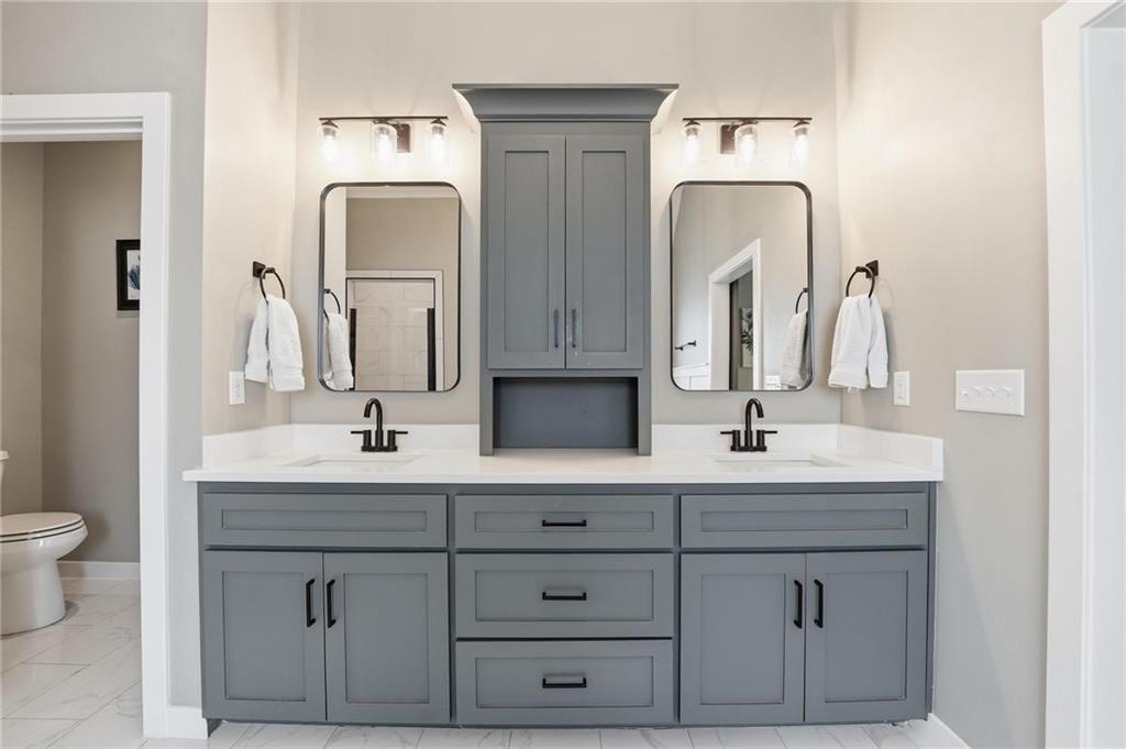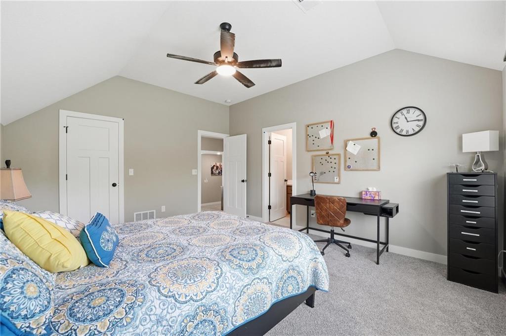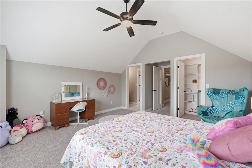 This Integrity Homes, Audrey 1.5 story plan is located on one of the best lots in the subdivision and is only 2+ years old. This home has it all, the floorplan, the closet space, the views and the workshop, it's a must see for sure. The main floor is expansive with tall and vaulted ceilings, open concept dining, living room and kitchen with a larger than typical front entry. The primary bedroom suite is located on the main floor with a beautiful view of the wooded area behind the home. Upstairs features a loft providing a second living area in addition to three more bedrooms. Two bedrooms are part of a jack-and-jlll suite with their own private vanities, and the third bedroom has a private bathroom. BONUS: every bedroom has spacious walk-in closets so nobody has to compromise! The basement is partially finished with a fifth bedroom and fourth bathroom, and an exercise room. RARE FIND: this home features a 3-car suspended garage making a great space for workshop or additional storage. Private walkout lot backing to the trail, oversized fenced lot. Why wait for new construction when everything is already done! Save the overages!