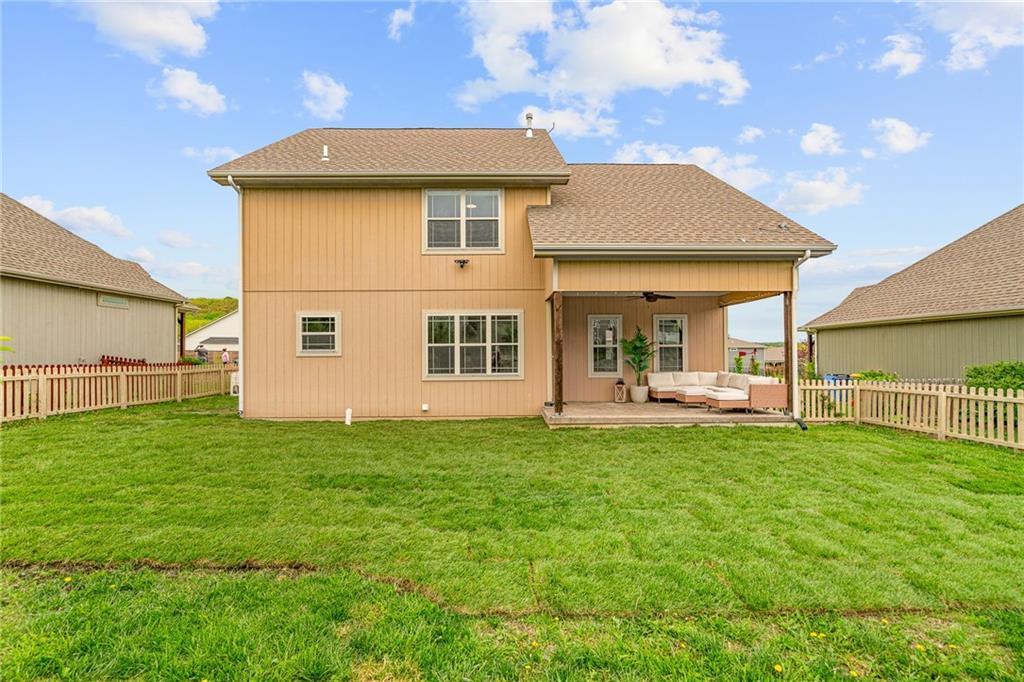 Welcome to this beautiful, nearly new 2-story home in the highly desirable Timber Hill Farms neighborhood! From the moment you walk in, you’ll love the bright, airy great room with soaring ceilings and an open layout that makes everyday living and entertaining feel easy. Upstairs, the spacious primary suite is a perfect retreat with a gorgeous en suite bath, plus two additional bedrooms with plenty of space. The finished lower level adds incredible flexibility—ideal for guests with a private bedroom and bath, or the perfect spot for movie nights, game days, or a home hangout. Step outside and enjoy not one, but two covered patios overlooking a large, private backyard—perfect for relaxing or hosting friends and family. The neighborhood amenities are a true bonus, with walking trails, a stocked fishing pond with paddle boats, a fire pit, and a play area. All that’s left to do is move in and enjoy!