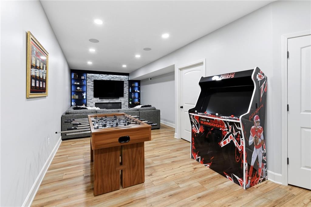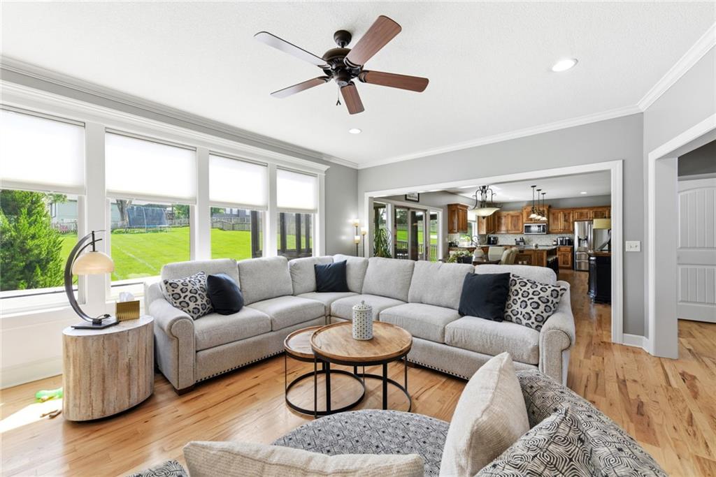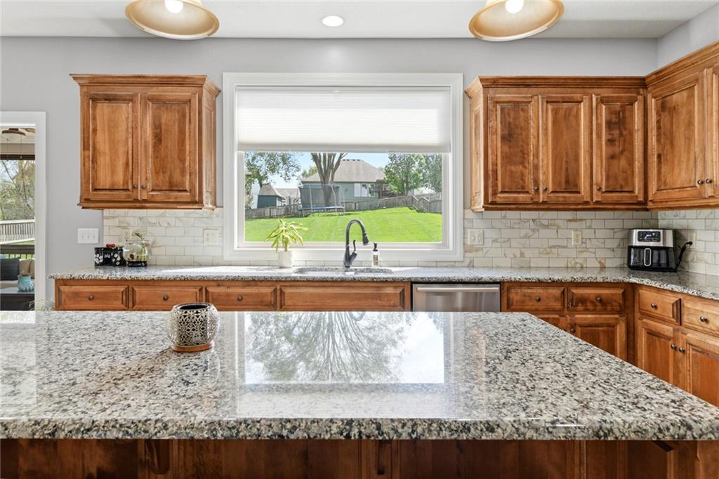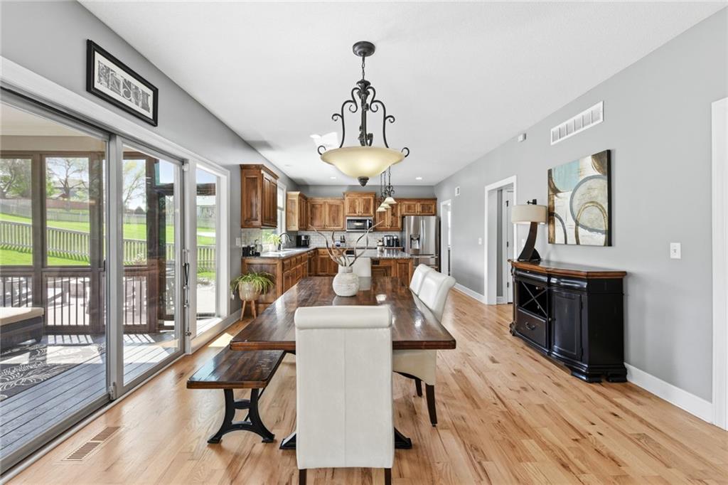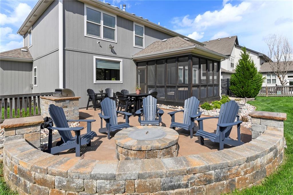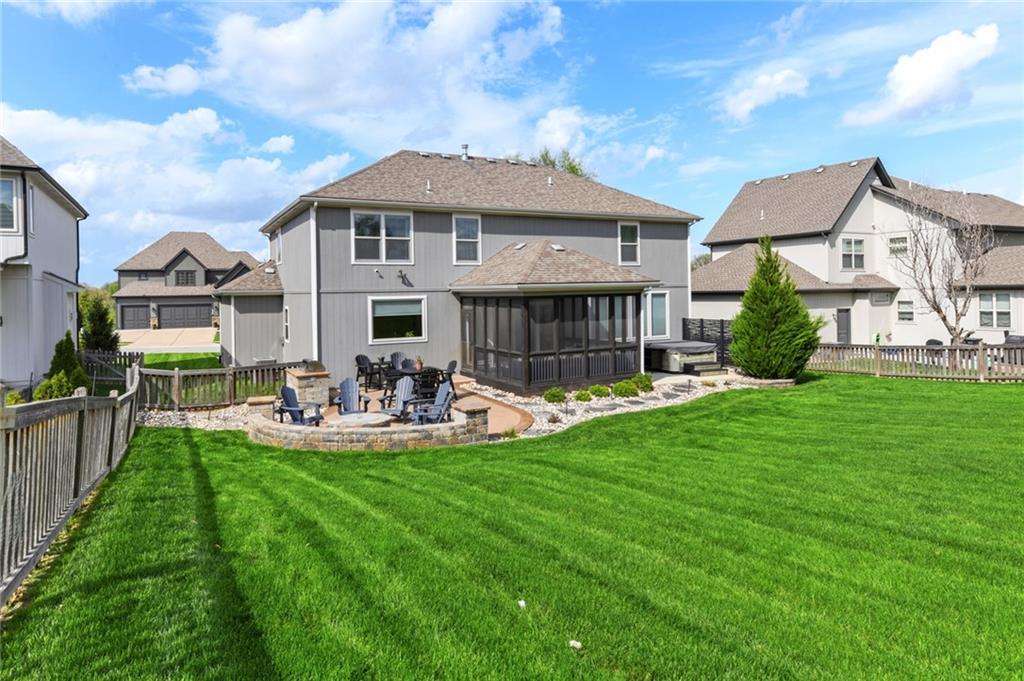 Stunning 5+Bedroom Home in Lee's Summits Premier Lake Community – Raintree! Welcome to your dream home in the highly sought-after Lake community! This beautifully designed 5+bedroom, 4.5-bathroom, 2-story home offers almost 4,000 square feet of luxurious living space and is perfectly situated with views of the pristine Backyard Oasis. Step inside to find rich hardwood floors flowing throughout the main level and an open-concept floorplan filled with natural light. The gourmet kitchen features elegant cabinetry, granite countertops, a spacious island, and a walk-in pantry—ideal for both daily living and entertaining. The expansive lower-level recreation room is the ultimate gathering spot, complete with a stylish wet bar—perfect for game nights or hosting guests. After a long day, relax on the screened-in, covered deck while taking in the peaceful outdoor living area. You can continue to entertain and enjoy a wonderful day or evening in the oasis backyard with a firepit and outdoor kitchen. With 5+ spacious bedrooms, including a luxurious primary suite, and 4 full bathrooms plus a convenient half bath, there’s room for everyone to spread out and feel right at home. Raintree Lake isn't just a neighborhood—it’s a lifestyle. Enjoy access to top-notch amenities including a clubhouse, pool, lake, fitness center, and more. Don’t miss this rare opportunity to own an incredible home in one of Lee's Summits finest communities. Schedule your private showing today!
