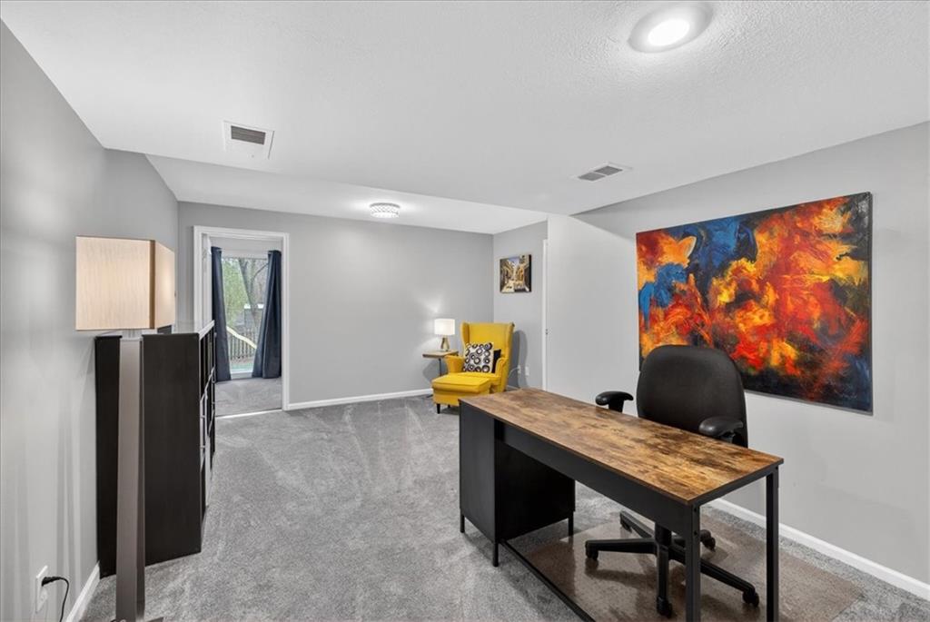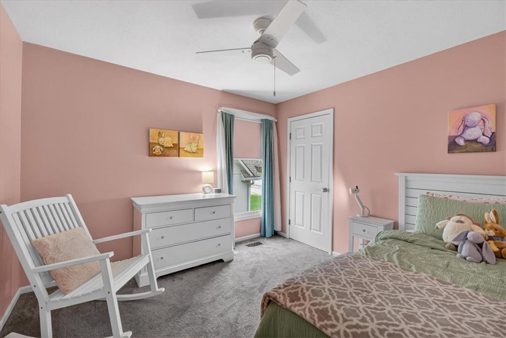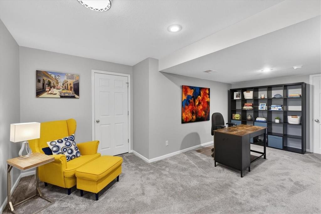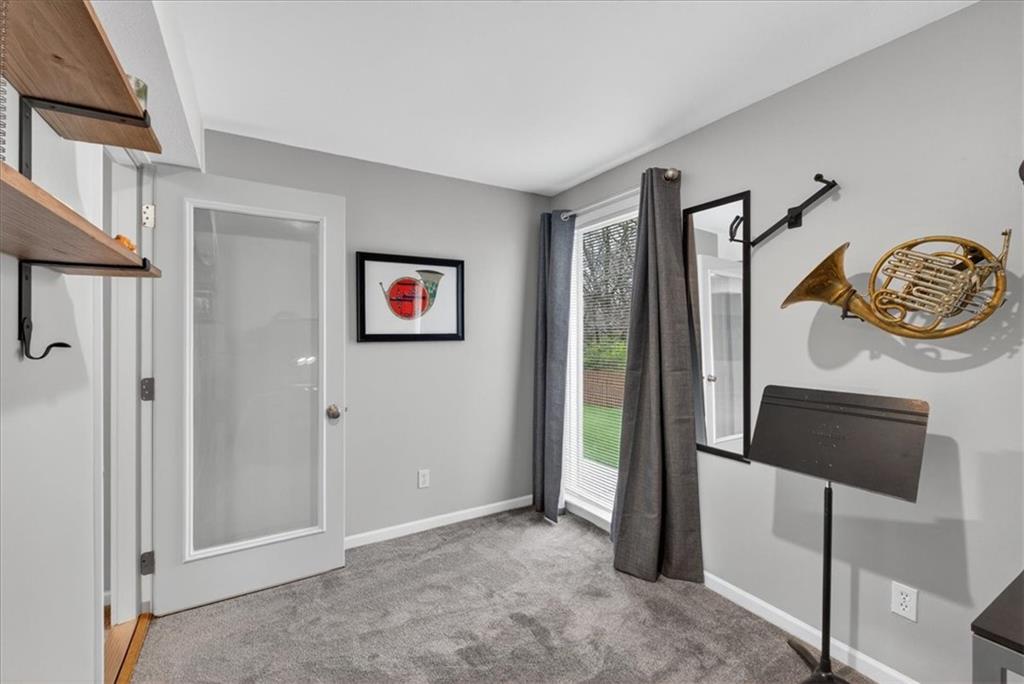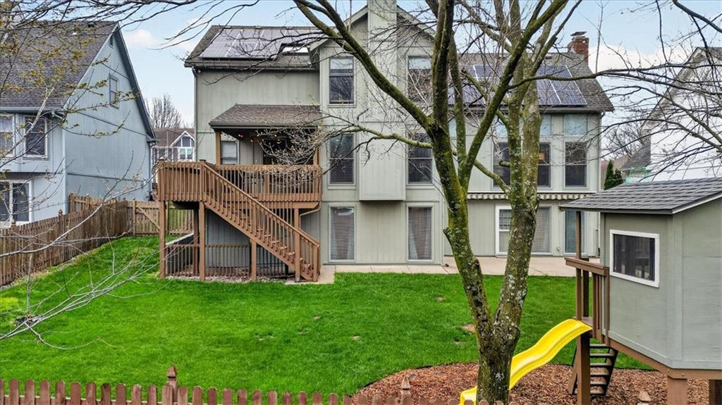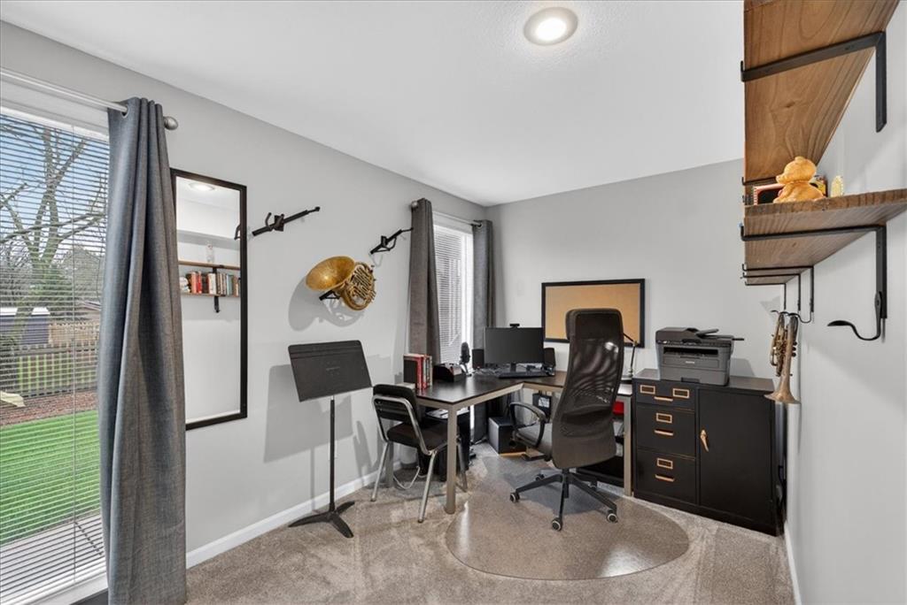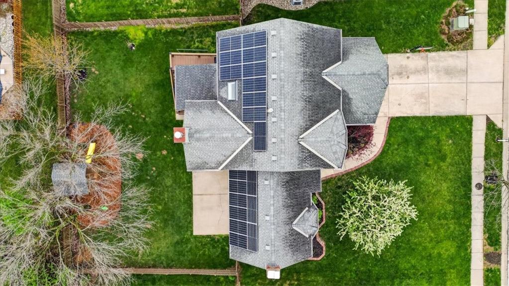 This home is a showstopper! Gorgeous cul-de-sac home with incredible curb appeal. Soaring vaulted ceiling in the Great Room, and huge windows provide a view of the peaceful back yard with lovely greenspace that backs to a wooded area and Line Creek park. The owners have fully updated, meticulously maintained, and LOVED this home. Updates include new exterior siding, exterior and interior paint, newer SS kitchen appliances, newer range hood, ACTIVE SOLAR PANELS--which means very low utility bills for the owner. Custom built-in storage at the back of the home. Fully finished Walkout Basement with a spacious Rec Room, an Office, a full bath, and a professionally soundproofed Music Studio.