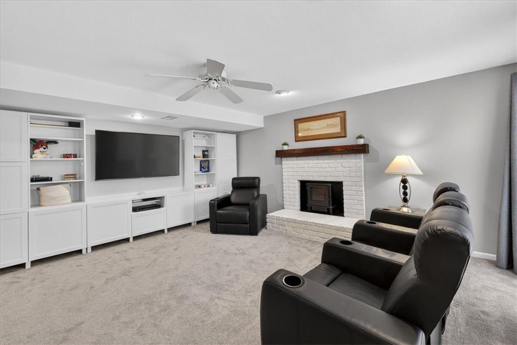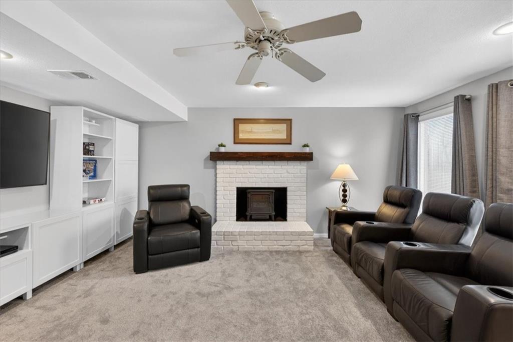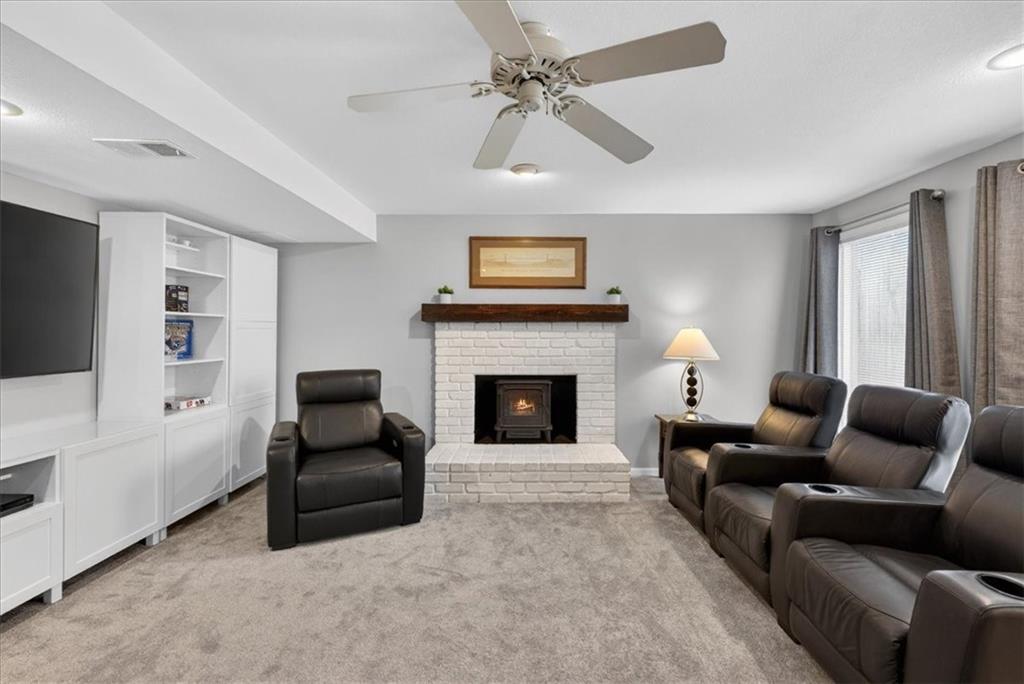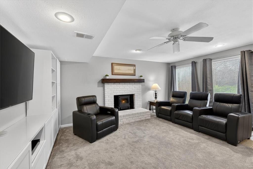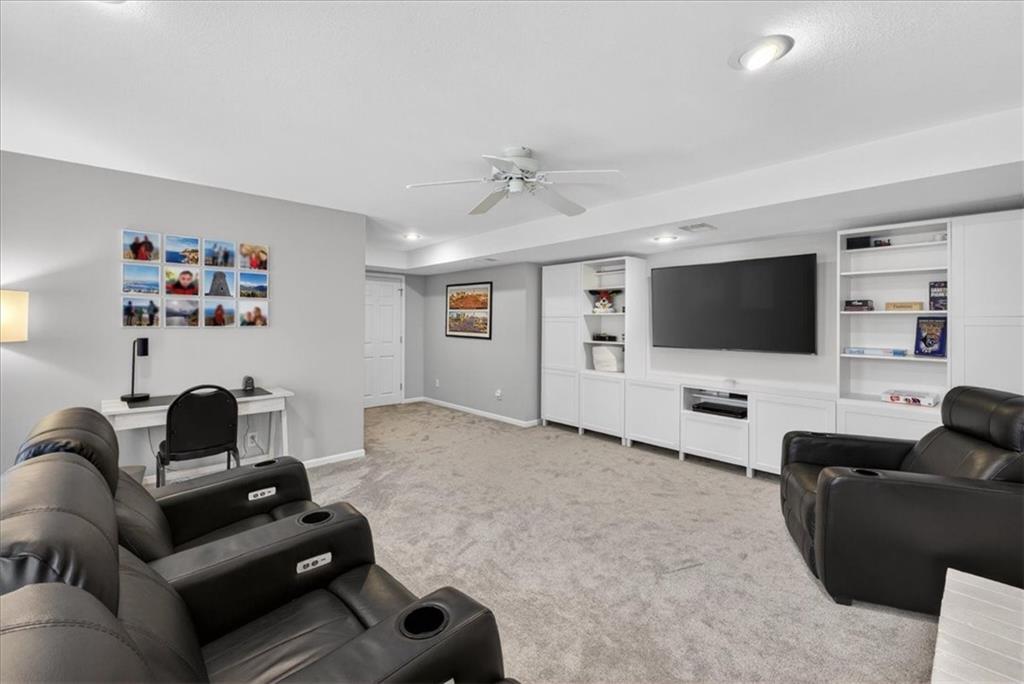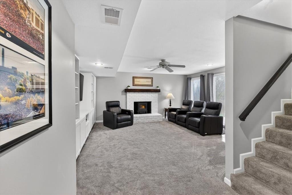 This home is a showstopper! Gorgeous cul-de-sac home with incredible curb appeal. Soaring vaulted ceiling in the Great Room, and huge windows provide a view of the peaceful back yard with lovely greenspace that backs to a wooded area and Line Creek park. The owners have fully updated, meticulously maintained, and LOVED this home. Updates include new exterior siding, exterior and interior paint, newer SS kitchen appliances, newer range hood, ACTIVE SOLAR PANELS--which means very low utility bills for the owner. Custom built-in storage at the back of the home. Fully finished Walkout Basement with a spacious Rec Room, an Office, a full bath, and a professionally soundproofed Music Studio.