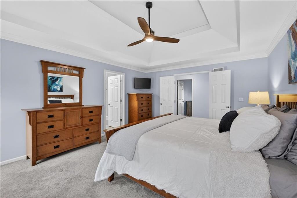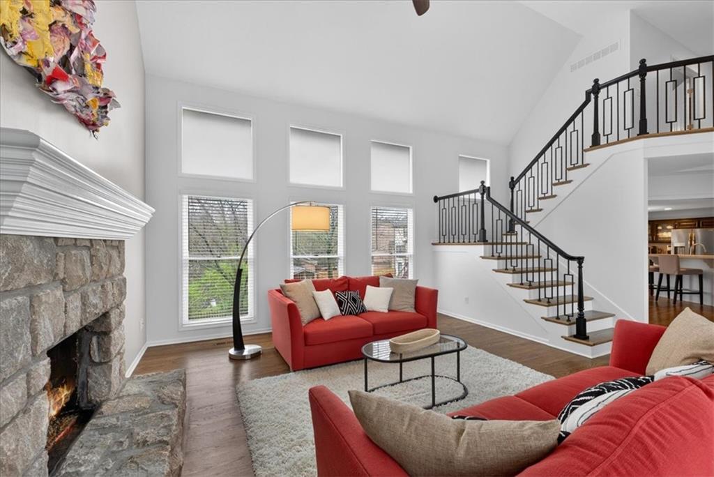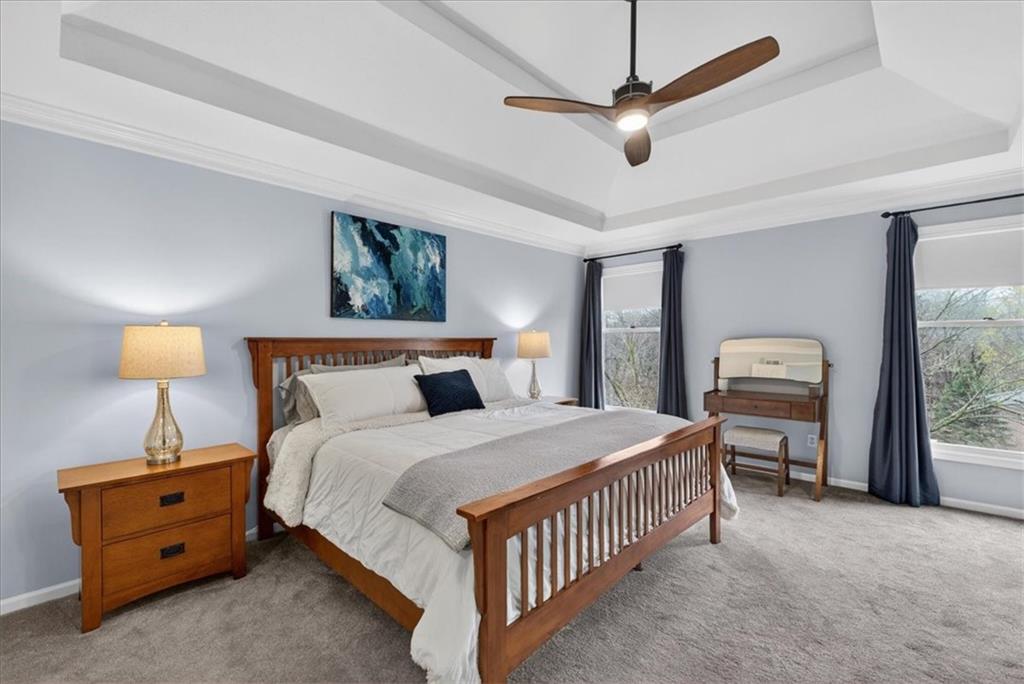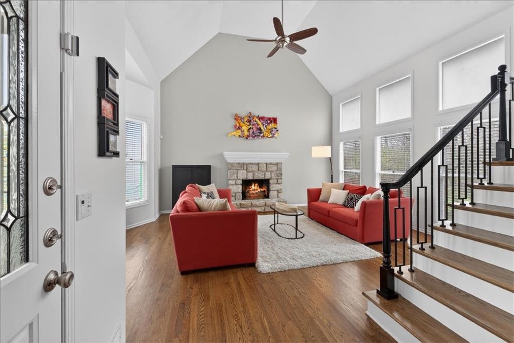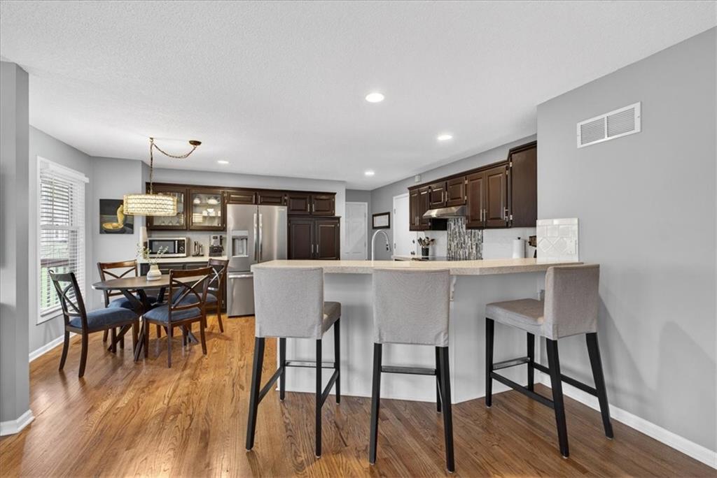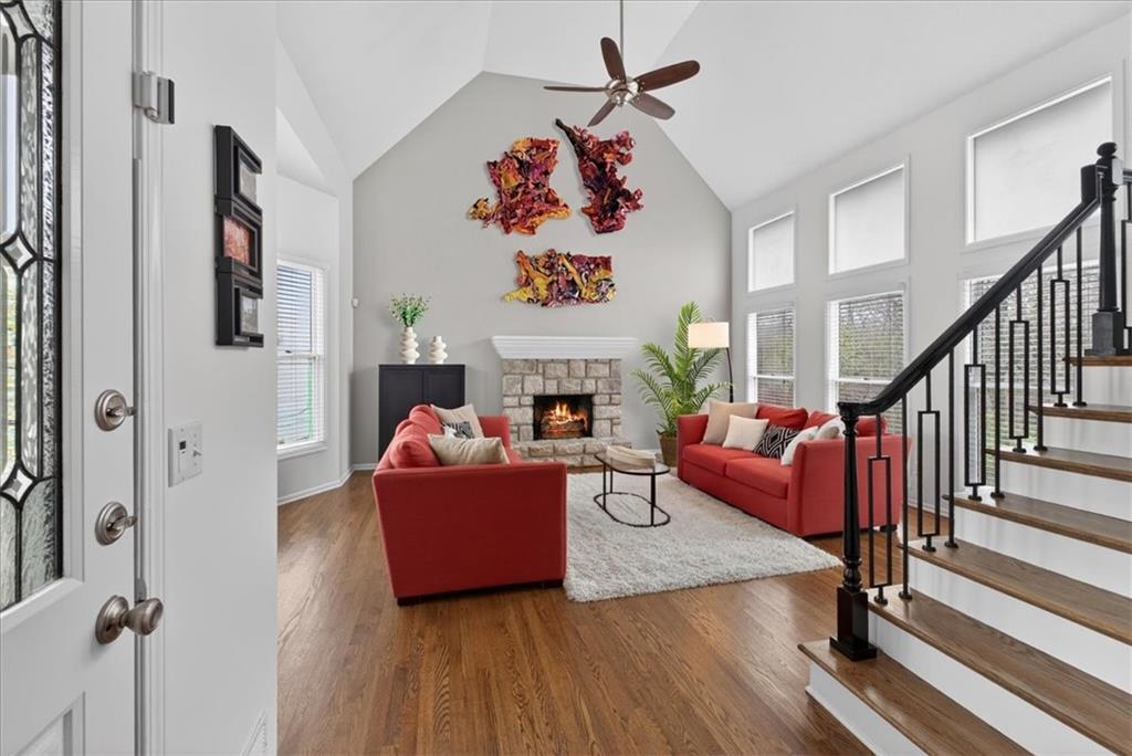 This home is a showstopper! Gorgeous cul-de-sac home with incredible curb appeal. Soaring vaulted ceiling in the Great Room, and huge windows provide a view of the peaceful back yard with lovely greenspace that backs to a wooded area and Line Creek park. The owners have fully updated, meticulously maintained, and LOVED this home. Updates include new exterior siding, exterior and interior paint, newer SS kitchen appliances, newer range hood, ACTIVE SOLAR PANELS--which means very low utility bills for the owner. Custom built-in storage at the back of the home. Fully finished Walkout Basement with a spacious Rec Room, an Office, a full bath, and a professionally soundproofed Music Studio.
