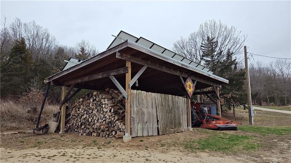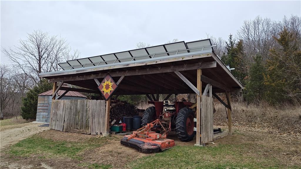 Space, Quiet, and Self-Sufficiency: 28 Acres with Pond, Pasture, Woods & Hiking trails, 12-year-old, premium-quality, timber frame home w lg open kitchen, N of Lawrence This isn’t just acreage and a house – it’s a thoughtfully designed, custom-built, energy-independent lifestyle property with mature woods, fishing, gardens, pasture, and serious infrastructure already in place. Properties with this level of sustainability, privacy, and proximity rarely come available. This is more than a house. It’s a slower pace, a quieter rhythm—morning coffee on the porch, evenings that linger. Straw bale walls keep it comfortable year-round, and solar power quietly does its job. The space is open and flexible made for gathering, working, or relaxing. Step outside to watch the weather move in, spot deer in the pasture, and hear the birds, wind, and wildlife. There’s room to garden, raise animals, or leave the land as it is. You’ll find community here if you want it, and plenty of space if you don’t. This place has held a lot of life, and now it’s ready for someone else to make their own story here. 28 ACRES NEAR BUCK CREEK: -10 acres fenced pasture -Private hiking trails -Stocked pond w/aeration THE HOME: -Premium quality build -Large flexible loft -20’ ceiling peak, open living area -Large kitchen with island -Large bathroom, zero-entry shower -500 sq ft covered porch -500 feet off the road TRADITIONAL TIMBER FRAME, HIGH PERFORMANCE DESIGN: -R-40 exterior walls, -R-40 Roof -Andersen windows -Standing-seam metal roof -Mitsubishi mini-split heat pump -Pacific Energy wood stove -Natural materials, superior air quality, calm feel NET ZERO SOLAR: -6kW solar -Inverter replaced 2024 -Average electric bill: $54 WATER & INFRASTRUCTURE: -8,000-gal. rainwater cistern -Whole-house filtration (spin-down, UV, carbon/sediment, chlorinator) OUTBUILDINGS: -Pumphouse/workshop -15’ x 45’ pole barn (3 bays) -16’ x 32’ pole barn (2 bays)