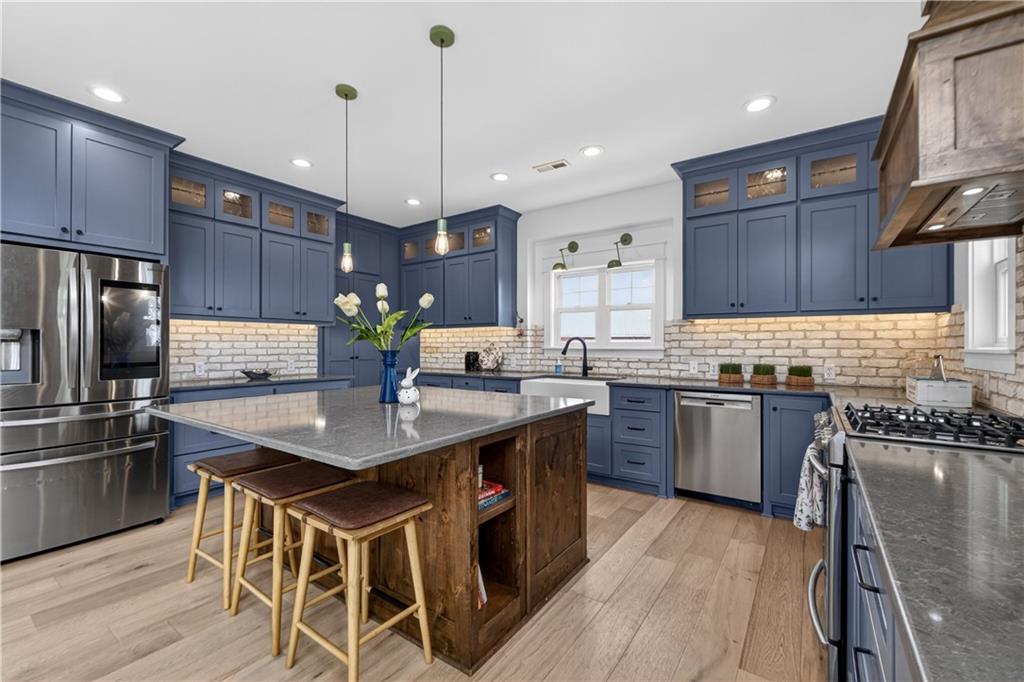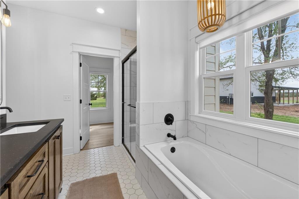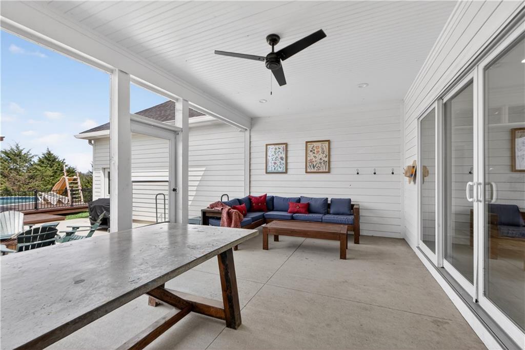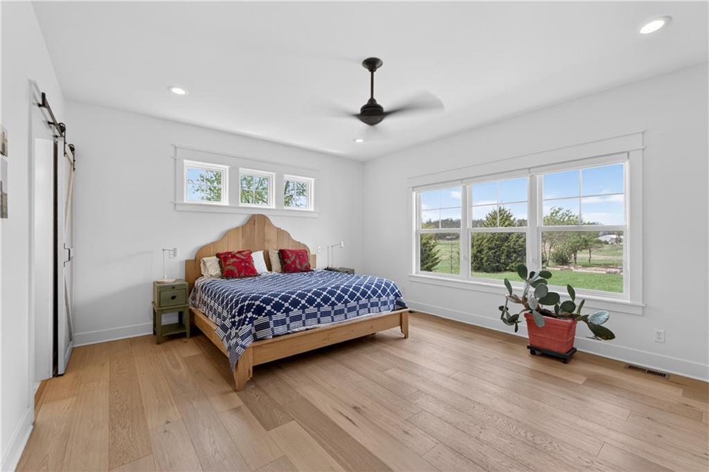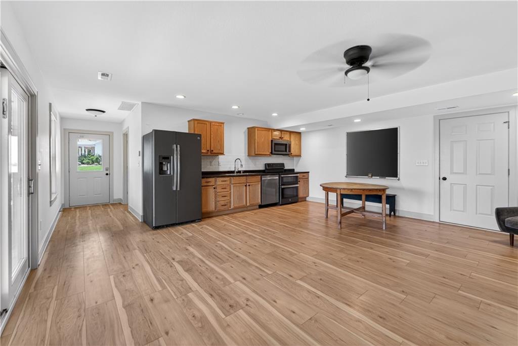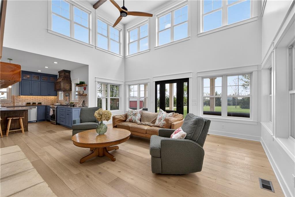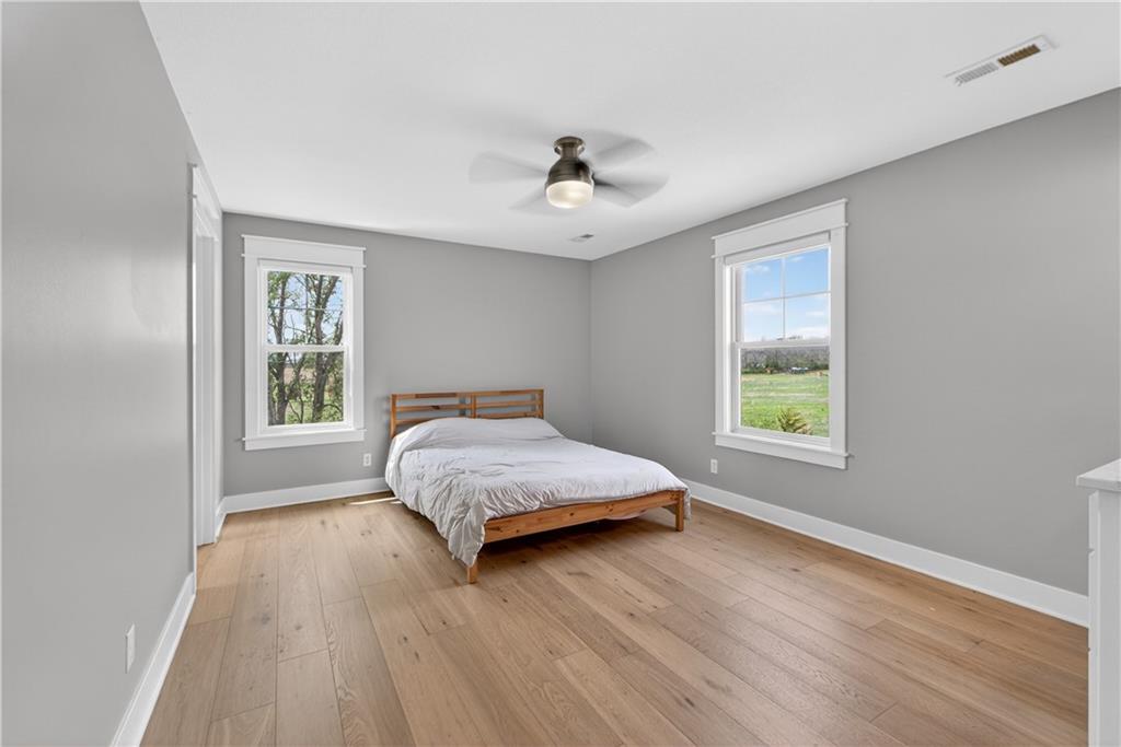 10 acres on blacktop — a rare blend of modern comfort and full-function hobby farm living. Built in 2020 as the sought-after builder’s personal residence, this open-concept home offers 6 bedrooms, 3.5 baths and 4,032 total sqft with thoughtful finishes throughout. Main living features include a dramatic two-story great room with abundant windows, wide-plank white oak engineered floors, a see-through fireplace between the dining room and living room, and a chef-ready kitchen flowing to living and entertaining spaces. The primary suite is conveniently located on the main level and opens to a large screened porch that, together with the dining room, leads out to an expansive concrete patio — ideal for indoor-outdoor living. Two oversized bedrooms upstairs include vanities/sinks plus a full upstairs bath; three additional bedrooms are located below grade. Practical comforts: main-level and basement laundry, an oversized two-car garage, and a large finished six-sided concrete storm shelter. Outdoor and outbuilding amenities are built for hobby farmers, equestrians, and weekend hosts. Approximately 2.5 acres are fenced and improved with a horse barn that has power and water. The back 5 acres serve as productive hay pasture. The 2,400 sqft barn/shop includes a 1,600 sqft insulated, heated & cooled shop space with two overhead doors and a full bath, plus an 800 sqft one-bedroom apartment with kitchen/living area, full bath, W/D hookups and a wraparound covered porch — perfect for rental income, guest quarters, or on-site help. Additional property highlights: chicken coop with power, water and indoor/outdoor access; raised-bed garden area with water run; a 33-ft above-ground pool with deck and awning for summer entertaining; and abundant acreage for riding, gardening, or expansion. Location is exceptional — just one mile from the new elementary school in the award-winning Basehor-Linwood School District.