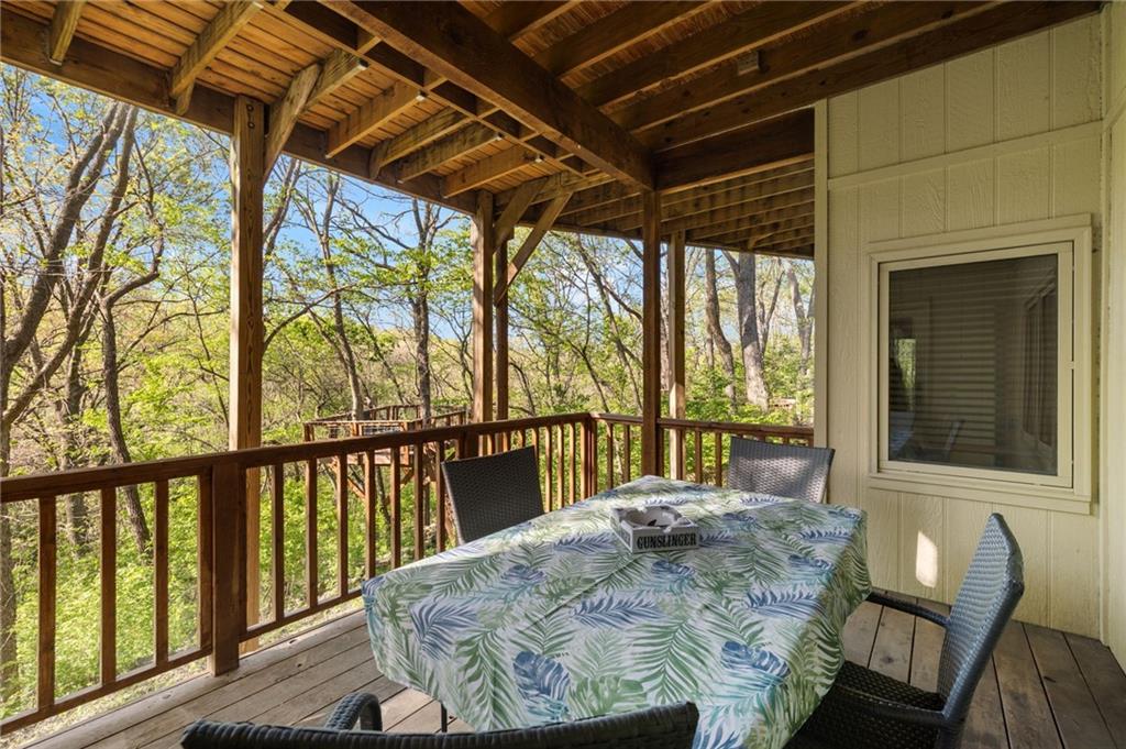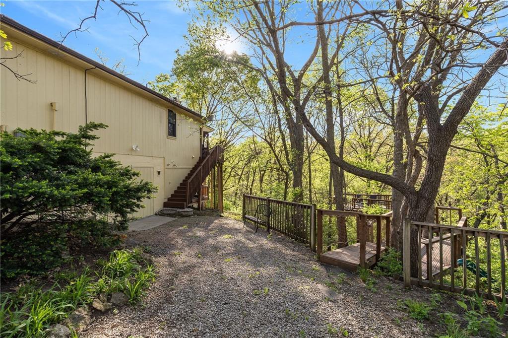 If you’re searching for a truly exceptional home, 7206 Larson is it. Tucked quietly at the end of a small horseshoe street in a quiet neighborhood, this custom-built 1.5 story reverse ranch offers unmatched seclusion and character. Built in 1992 and perfectly maintained, this rare opportunity sits on a beautifully wooded 1.6-acre lot that feels like your own private nature sanctuary. With 4 bedrooms, 3 full baths, and 2 half baths, there’s plenty of space to entertain and unwind. The open flow connects the living area, dining room, and kitchen while vaulted ceilings and large windows showcase sweeping views of the park-like backyard. Step outside to enjoy two decks overlooking mature trees and wildlife — deer, turkey, and birds are frequent guests. A custom treehouse, completed in 2022, adds even more charm and a sense of retreat. The primary suite on the main level features a remarkable en-suite bath designed for two, with dual vanities, dual water closets, separate walk-in closets, and a shared jetted tub and walk-in shower connecting the spaces. Down the curved staircase, discover a lower level built to impress — an indoor atrium with turf and stone accents opens into a spacious family room with a gas fireplace and three additional bedrooms surrounded by private wooded views. Ample storage and thoughtful design make every corner functional and inviting. Recent updates include a new Air Conditioning unit (2025), tankless water heater, water softener, toilets, faucets (2021), kitchen upgrades (2018), and garage resealing (2020). This home stands as one of the most unique and well-kept properties in the area. Also to note the property is in close proximity to the Rock Island Trail. Rarely does a home blend craftsmanship, privacy, and location like this. Schedule your private showing today before this extraordinary home is gone.