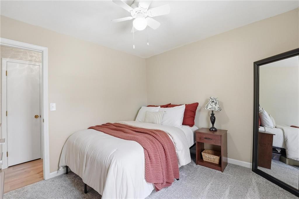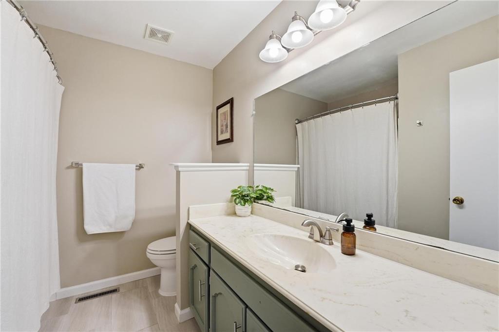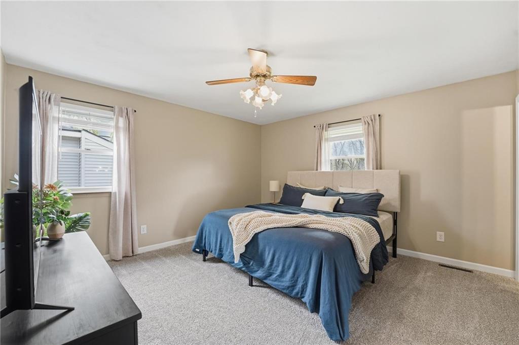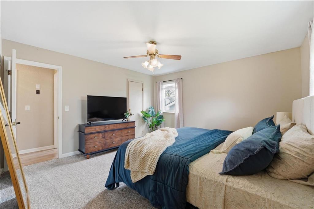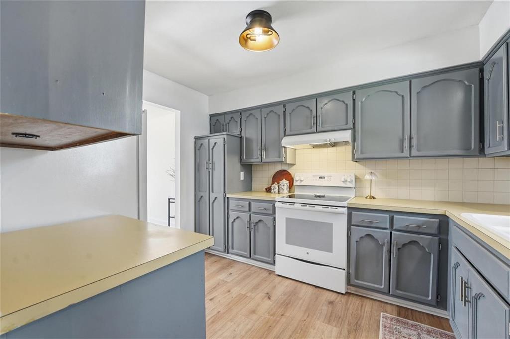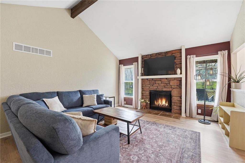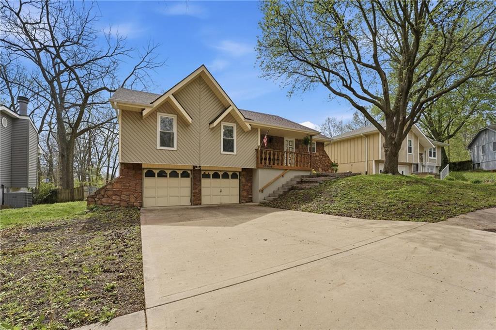 This stunning raised ranch home has been beautifully updated with modern luxury vinyl plank flooring, new carpeting, a new roof, a tiled primary bathroom shower, and fresh paint throughout. Upon entering, you'll notice the high ceilings and wooden beam accents that create a spacious atmosphere, warmly complemented by a charming stone fireplace. The layout seamlessly flows into a dining room featuring a back door that leads to the deck. The kitchen is equipped with ample cabinetry and smart counter space for all your culinary needs. Down the hallway, you will find a coat closet, linen closet, a full bathroom with a large vanity and a shower over the tub, and three cozy bedrooms at the end of the hall, each adorned with plush carpeting. The primary bedroom offers generous space and a stunning ensuite, complete with a new tiled shower, vanity, and mirror. The finished basement includes a recreation room and a laundry room with fantastic storage, including storage shelves that stay. The two car garage provides access to the basement, featuring space for a coat rack and additional storage behind the shutter doors in the recreation room. The back deck, accessible from the dining room via the back door, overlooks a fenced backyard that backs up to trees, creating a serene retreat. This home is situated in a quiet cul-de-sac within the North Kansas City School District, with Staley High School as the designated attendance school.