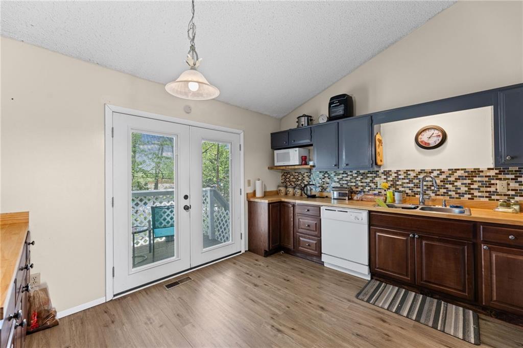 Step into this fully remodeled, 3 bedroom townhouse located in Raytown on a quiet cul-de-sac. Minutes away from schools, Longview Lake, shopping, I-435 and 350/Blue Pkwy access, this home's location is convenient. This home includes updated luxury vinyl plank flooring, painted cabinets, and a spacious back yard. Basement bedroom has outside access. Back yard is partially fenced and is allowed to be fully fenced. Working solar panels keep electric bill under $30 a month with owners current usage. Mature trees in the back yard provide privacy and relaxing view when enjoying the back deck space. Schedule your showing today!