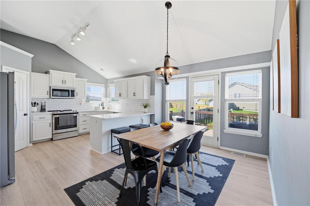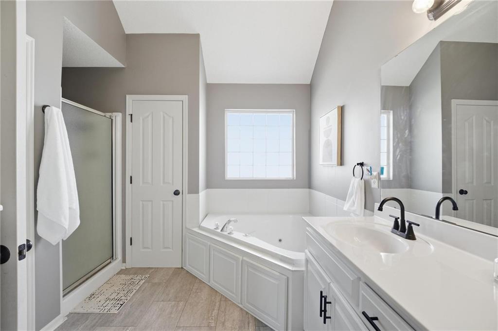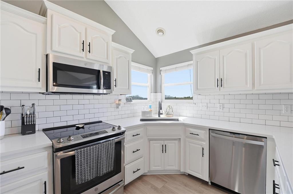 Welcome to Genesis Place at Green Hills! This front to back split welcomes you into a large living room with vaulted ceilings, beautiful windows and a refinished fireplace. Upstairs the renovated kitchen takes center stage with quartz countertops and painted cabinets, opening into a home filled with newer flooring throughout. This home also offers updated bathrooms and a 3-car garage along with a subbasement perfect for storage, a workout area, or flex space. The spacious primary suite features a large jacuzzi tub, double vanity, and walk-in closet. Out back, the yard truly steals the show with a basketball court, playground, deck, and extended concrete patio complete with a retractable awning—ideal for both relaxing and entertaining. Curb appeal is no problem here with the newly installed flower bed retaining walls in both the front and backyard. Last but certainly not least, a NEW ROOF is coming soon!