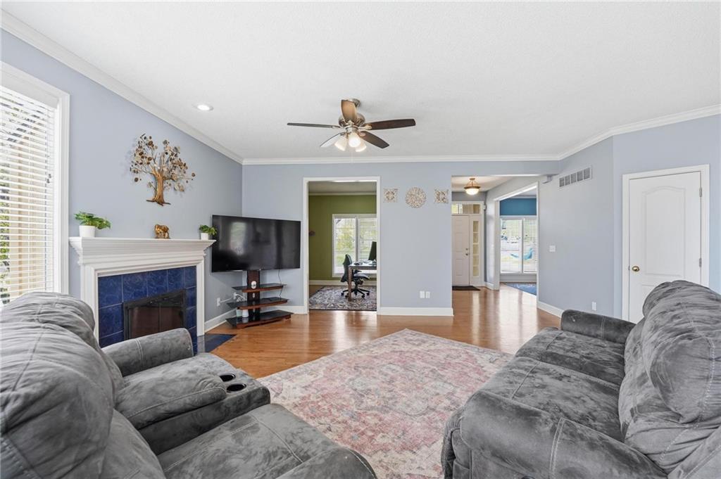 Fabulous corner cul-de-sac lot in the highly desirable Shadow Brook community! This hard-to-find home is perfectly situated within the sought-after Lakewood Elementary and Middle School boundaries. The interior has been stunningly updated with brand-new hardwood flooring throughout both the main and second floors, offering a seamless and luxurious feel. The flowing main level is designed for modern living, featuring a spacious great room, formal dining area, and a cozy hearth room. The oversized kitchen is a chef’s dream, now featuring a premium gas range and a massive footprint that provides space for a convenient main-floor home office. Retreat to the upper level where you'll find generous secondary bedrooms and an expansive primary suite complete with a private sitting area and fireplace. The finished daylight lower level adds significant living space with a large family room, recreation area, a full bathroom, and substantial storage. Peace of mind comes standard with a brand-new roof, newer exterior paint, and high-end mechanicals including a radon mitigation system and water purifier. Step outside to an incredible outdoor oasis featuring a newer deck overlooking a lush backyard filled with mature trees and professional landscaping. The unique drive-through driveway provides effortless access to the front of the home and the oversized three-car garage. Tucked away for privacy yet minutes from Target, Starbucks, and local dining, this home offers the perfect blend of seclusion and convenience.