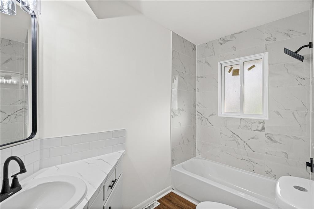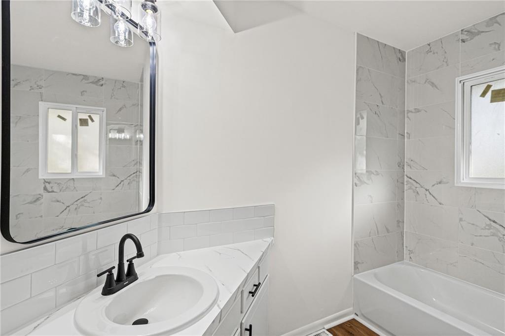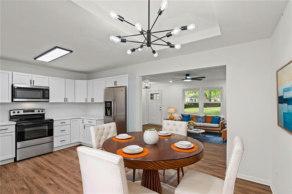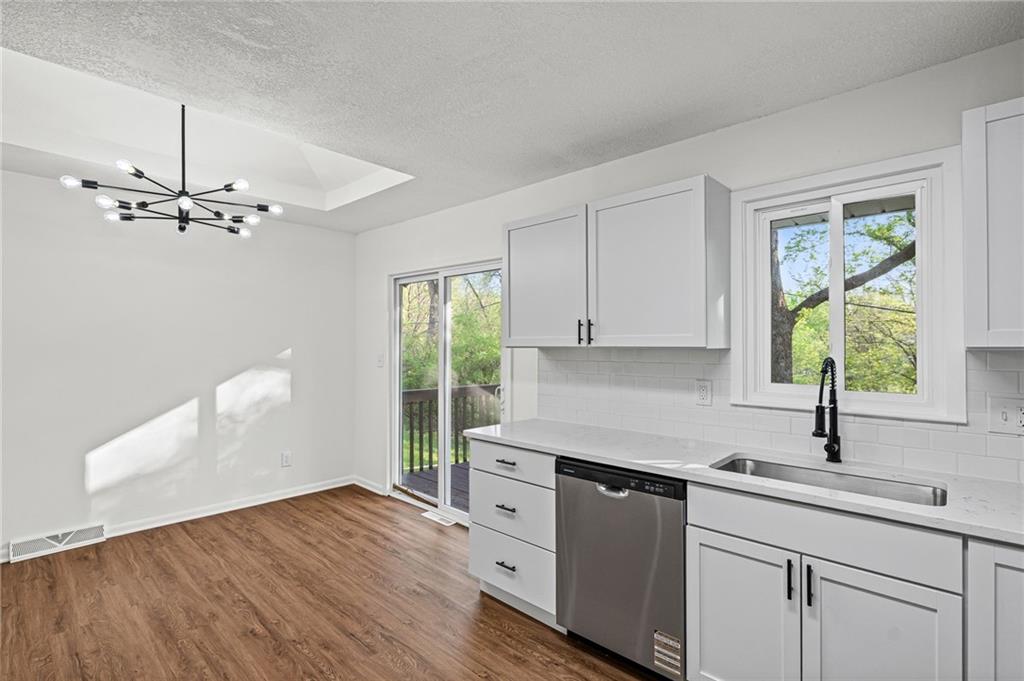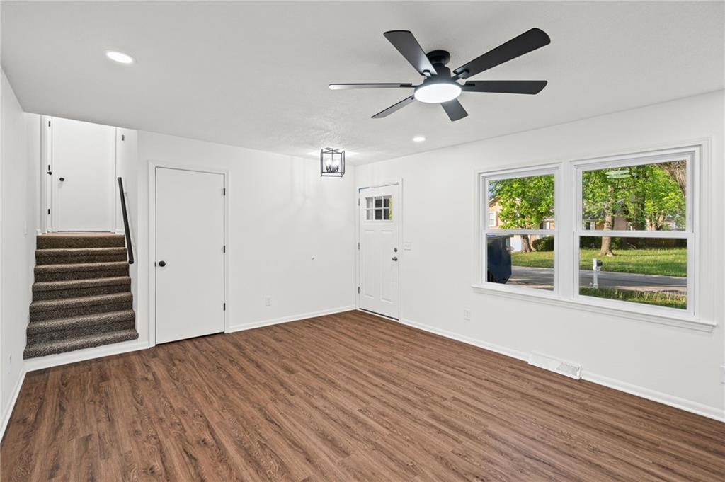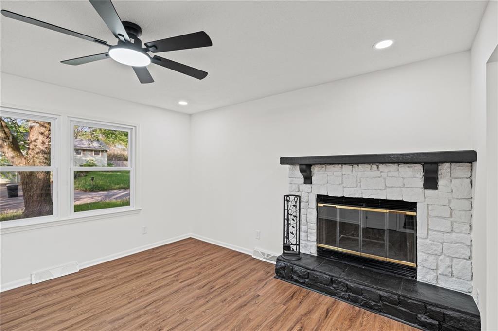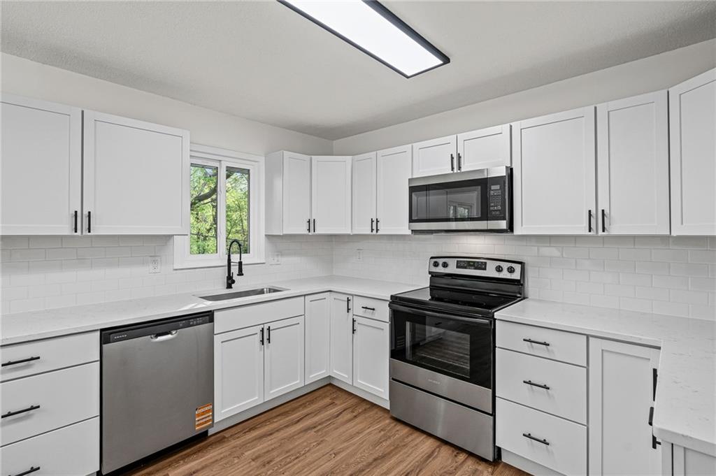 The finishes here belong in a $290,000 listing. The price tag doesn't! This fully renovated 3-bed, 2-bath Northland split has been rebuilt from the inside out: brand-new kitchen with quartz countertops, white shaker cabinets, subway tile backsplash, and a full stainless appliance package. Both bathrooms are completely new. New LVP floors run through the main living areas. The living room is anchored by a stone fireplace with black mantel. Upstairs, three bedrooms with tray ceilings and fresh carpet. Primary suite has its own private bath. The finished walkout lower level adds 401 sqft of flex space with a sliding door exit to the backyard. Second family room, home office, playroom. Your call. Step out to a deck overlooking a private, tree-lined yard. Tuck-under 2-car garage. HVAC, water heater, windows, and siding all replaced within the past few years. Move-in ready. Finishes that impress. Open to FHA, VA, and conventional buyers.