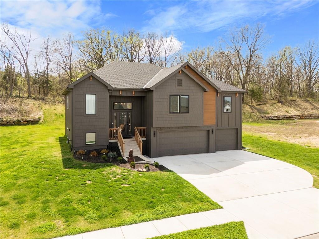 Welcome to this nearly new, beautifully upgraded home built by Kerns Homebuilders. This 4-bedroom, 3-bath property offers an open, contemporary layout with thoughtful upgrades at every turn. The main level features an open concept with a striking fireplace accent wall and large windows that fill the home with natural light. The beautifully designed kitchen includes wood cabinetry, a spacious island, stainless steel appliances, and stylish lighting—perfect for everyday living and entertaining. The primary suite is complete with a tiled shower, tub, double vanity and walk-in closet. With two additional rooms and a bathroom on the main level. The basement has a great area for entertaining with another bedroom and bathroom off the garage. Sellers are relocating for work, giving you the opportunity to move into a like-new home without the wait!