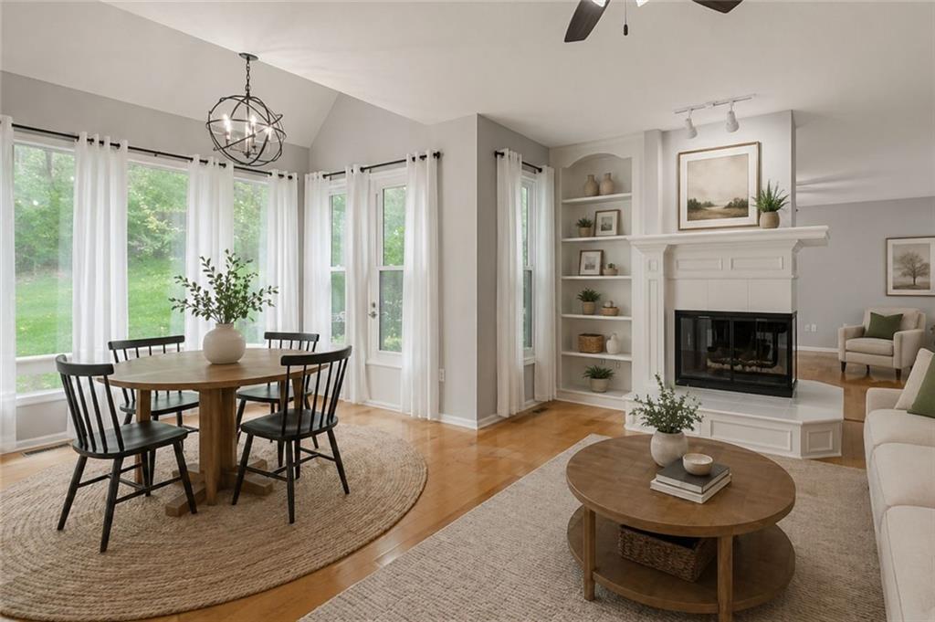 BEAUTIFUL GEM IN DESIRABLE NEIGHBORHOOD IN THE HEART OF SHAWNEE: RED OAK HILLS!! This immaculate two-story features 4 bedrooms, and updated 2 1/2 baths. The primary bath features dual sinks , standing shower and new fixtures.. Upstairs the primary suite includes a spacious walk-in closet, generous master bath and small nook for reading/relaxing The home has been completely repainted on the inside! SPACIOUS living room and kitchen with accent of see-through fireplace .Enjoy entertaining in the lovely and bright dining room on the main floor. . A wooded nature trail accents the amenities of the area and is at your side yard. The finished basement in the lower level offers a very large rec room pls another finished area that can be used as an office, work out room or second rec room. This room provides a sink and is stubbed for a stool. The large wood deck gives you a tranquil spot to enjoy the nature of the back yard. The home is wired for security system plus each bedroom and several rooms have technology USB outlets. The central vacuum system makes vacuum so much easier. The ideal location features various amenities including a short distance to Shawnee Mission Park and Tomahawk golf course plus quick access to I-435 and Shawnee Mission Parkway. An "entertainment district" is just minutes away. This wonderful neighborhood is ready to welcome any buyer.