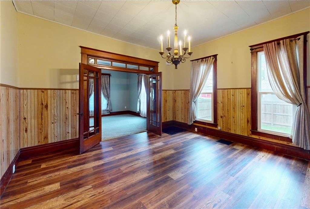 Discover this beautifully updated residence where classic charm meets modern convenience. This three-bedroom, one-bathroom home features a freshly painted interior, providing a bright and clean atmosphere throughout every room. The functional floor plan boasts a large formal dining room and a dedicated laundry room, offering the space and utility desired in a modern layout. Exterior highlights include an inviting front porch, a generous back deck for outdoor relaxation, and a yard fully enclosed by a privacy fence. Additionally, the property includes a detached one-car garage, providing secure parking or extra storage. This move-in-ready home is prepared for its next chapter.