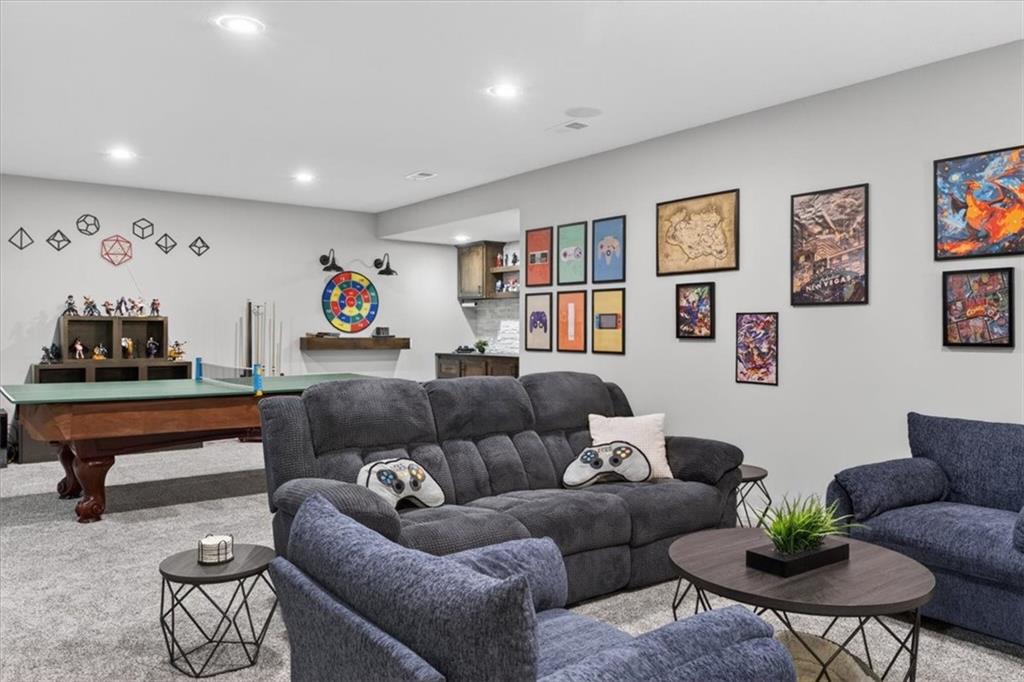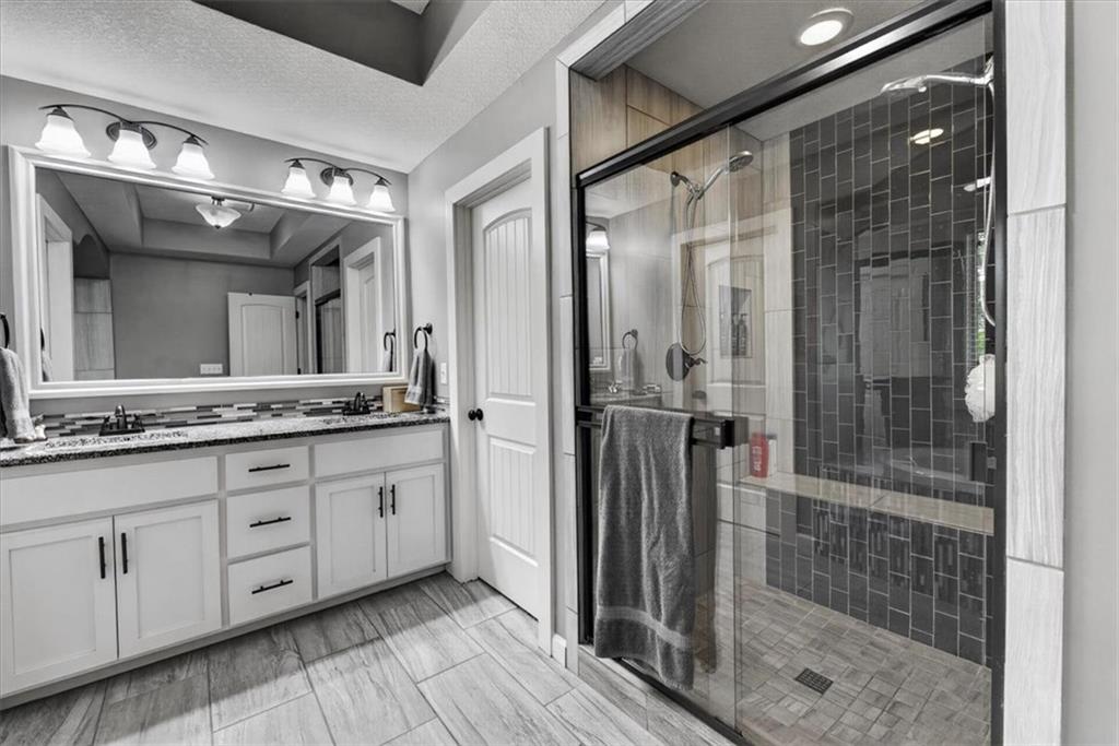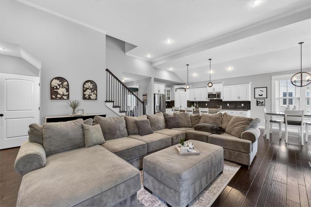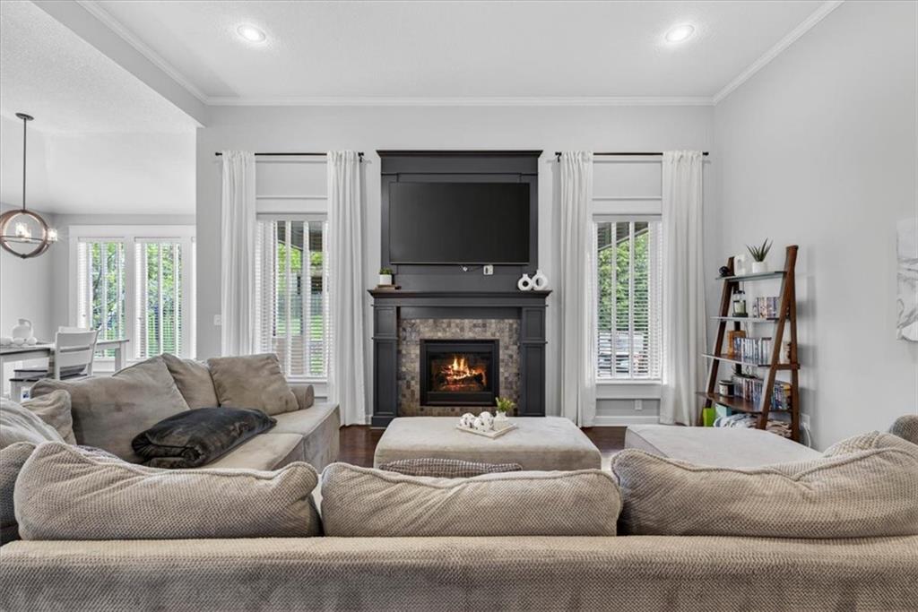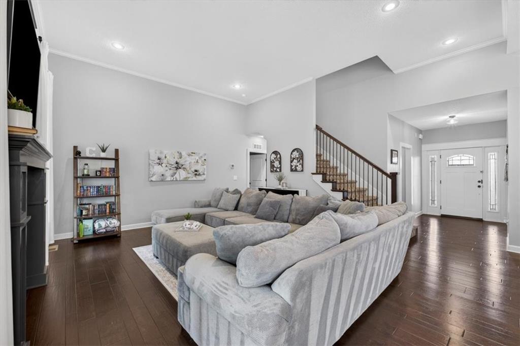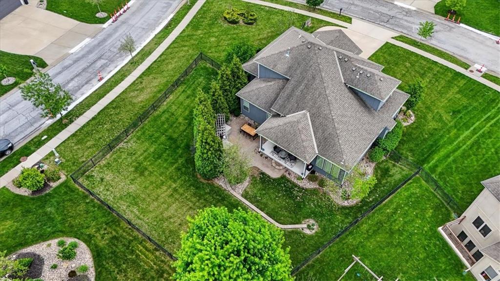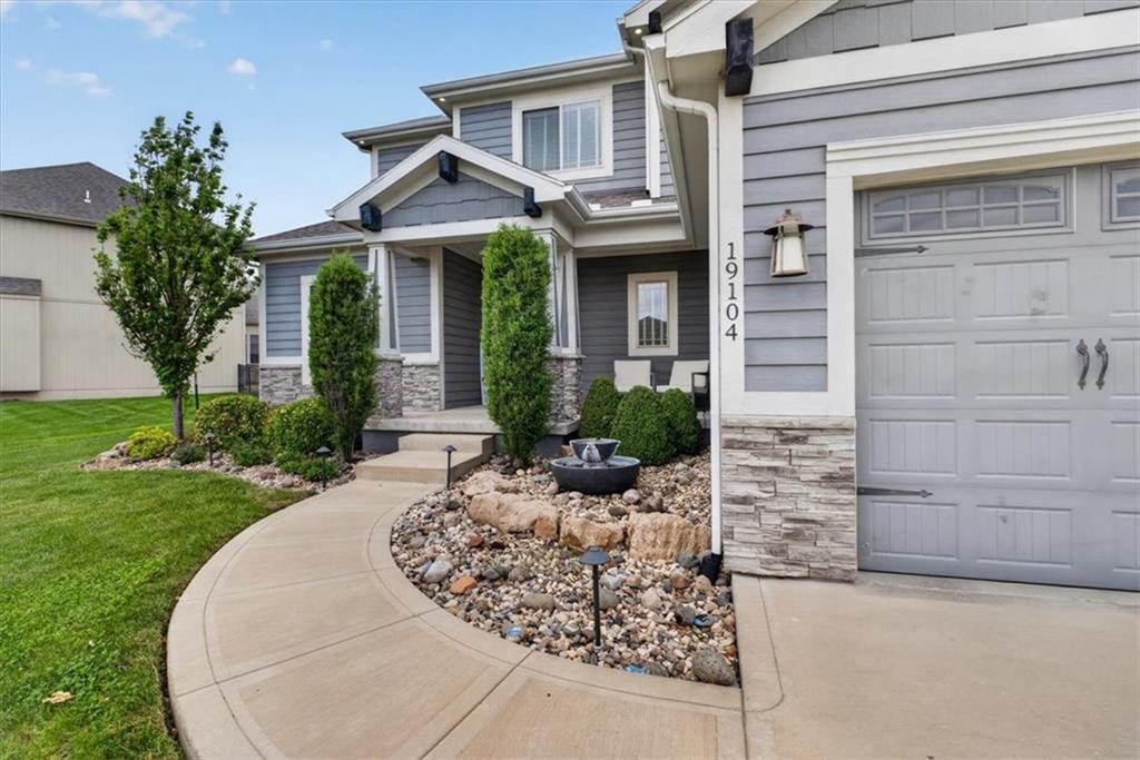Welcome to 19104 W 100th Ter in the highly sought after Falcon Valley community, where thoughtful upgrades and quality craftsmanship shine throughout. From the inviting covered front porch to the extensive landscaping, retaining wall, wrought iron fence, and exterior downlighting, the curb appeal is unmatched on this large corner lot. Inside, abundant natural light highlights the open and engaging floor plan, featuring extensive trim, crown molding, wainscoting, and a beautifully trimmed fireplace in the family room that flows seamlessly into the kitchen with a large island, modern backsplash, gas stove, and walk-in pantry. The main-level primary suite offers a spacious retreat with a tray ceiling, spa-like bath with soaking tub and walk-in shower, and a large closet with direct access to the laundry room. You’ll love the versatile front den, which could also serve as a formal dining space or playroom, while the breakfast area and island seating provide ample room to gather. Upstairs includes three oversized bedrooms, all with walk-in closets. One bedroom features a private bath, while the others share a Jack and Jill bathroom. The finished basement expands your living space with built-ins, a wet bar with wine fridge, full bath, large fifth bedroom with egress window, PLUS an 85” TV and surround sound for a truly immersive experience AND a new pool/game table that will convey with the property. Step outside to a covered patio with ceiling fan, outdoor kitchen, and professionally landscaped yard designed for entertaining. Complete with a heated three-car garage featuring coated floors and an organized storage system, plus NEW HVAC system and newer carpet throughout, this property offers the perfect blend of style, space, and functionality in a highly desirable Lenexa location.