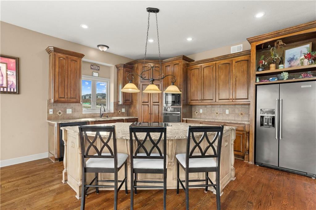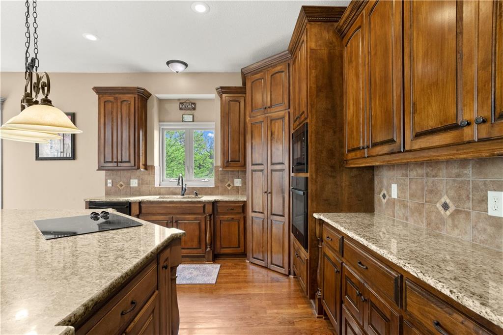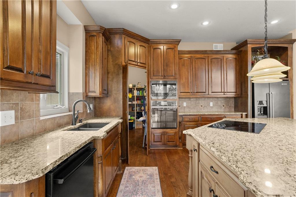 Step inside and feel the difference! This former model home delivers style, space, and thoughtful upgrades throughout with over 2,000 sq ft on the main level alone. Soaring 12-foot ceilings and elegant crown molding set the tone in the bright, inviting great room. The formal dining room offers the perfect setting for gatherings, while a comfortable eat-in kitchen area adds everyday convenience. The kitchen is a standout with solid wood cabinetry, a newer Bosch dishwasher, microwave, smart oven and an oversized pantry designed to handle everything from weeknight dinners to holiday hosting. The primary suite is a true retreat with direct access to the deck, perfect for morning coffee or evening unwinding. The primary bath features split vanities, a jetted tub and a double-headed shower for a spa-like feel at home. The main level also includes another well-appointed bedroom, offering flexibility for guests, an office, or multi-generational living. The lower level expands your living space with a large open area ideal for entertaining or relaxing, complete with a wet bar, two additional bedrooms and a full bath. Major updates offer peace of mind, including a concrete tile roof, newer exterior paint, and HVAC system. A sprinkler system keeps the exterior looking its best with minimal effort. Plenty of extras, plenty of space—this one checks all the boxes!
