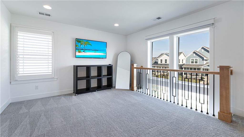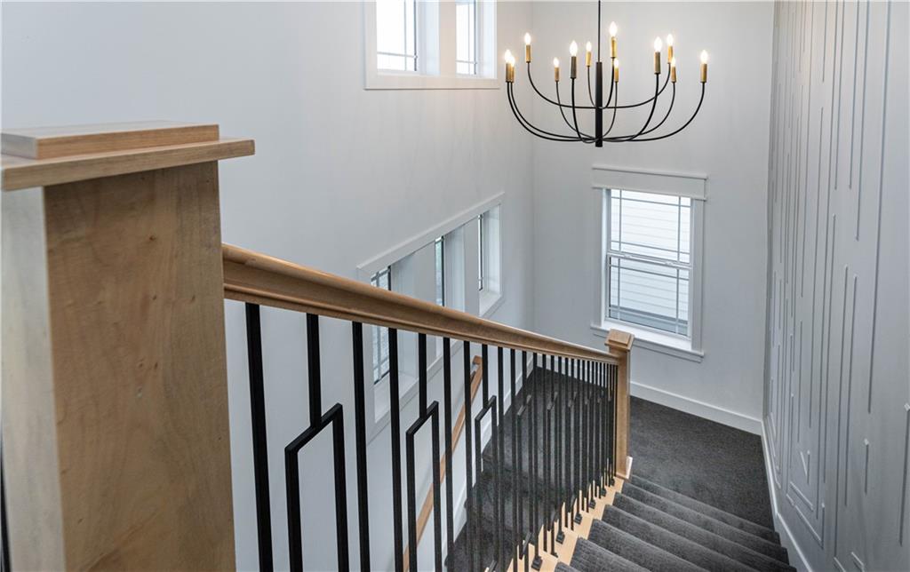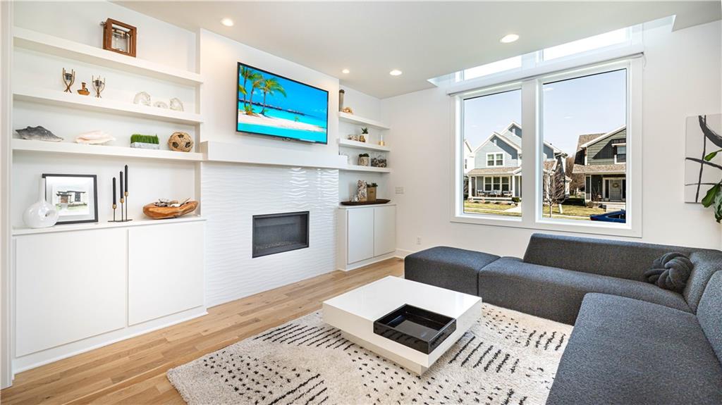 OPEN HOUSE SATURDAY, MAY 2nd, 11am-1pm. Step into this stunning, modern-chic residence offering 3 bedrooms, 2 full baths, and 1 half bath, thoughtfully designed with high-end upgrades throughout. At just five years young, this home truly stands out. From the moment you enter, you’re welcomed by an abundance of natural light streaming through dramatic two-story windows with motorized blinds. Wide-plank wood flooring flows seamlessly from the living room into the kitchen, creating a warm and inviting atmosphere. The living area features a striking fireplace flanked by custom built-in cabinetry, serving as a beautiful focal point. The kitchen is a chef’s dream, equipped with premium Café appliances, including a six-burner gas range, dishwasher, and a high-end refrigerator (originally valued at over $3,000), all included. Additional highlights include a gooseneck faucet, under-cabinet microwave, and upgraded soft-close cabinetry. You'll also find upgraded plantation blinds. Convenience meets functionality with a main-floor laundry room that also features a built-in desk. The main-level primary suite offers a true retreat, complete with a spa-inspired bathroom showcasing a spacious tiled shower with dual showerheads and double vanities. Upstairs, you’ll find a versatile second living area along with two generously sized bedrooms, each with ample closet space. The full, daylight unfinished basement provides endless possibilities and is already stubbed for a future full bathroom and also boasts a water softener. Completing the home is an attached two-car garage and a fenced side yard, adding both practicality and charm. This exceptional property combines modern style, comfort, and thoughtful upgrades. This neighborhood is home to a lake, swimming pool, playground and walking trails.