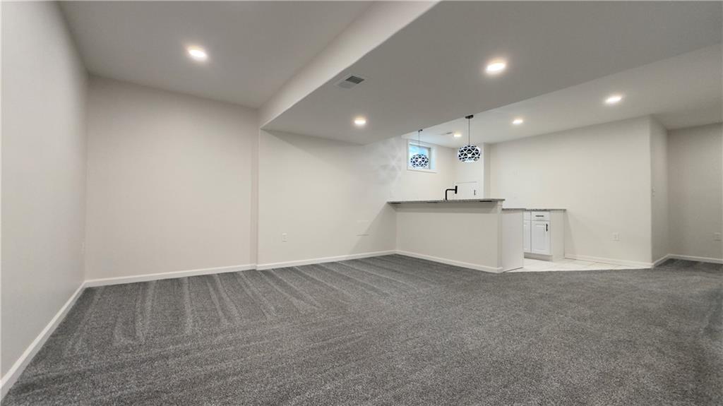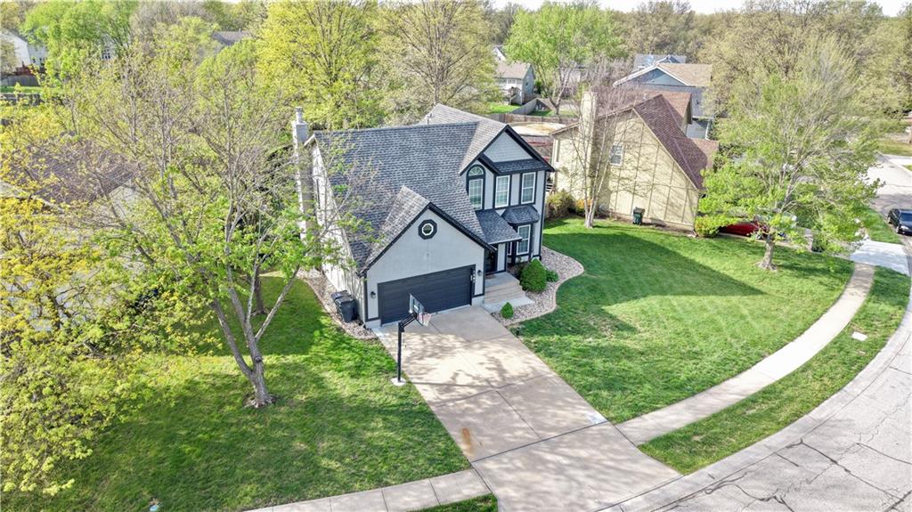 Beautifully updated 4-bedroom, 3-bath home in Olathe, KS with modern finishes and unique style throughout. Great curb appeal with black accents, a spacious driveway, two-car garage, and a good-sized lot. Inside features new ceramic flooring, carpet, fresh paint, and an updated kitchen with stylish fixtures. The spacious primary suite offers a private bath with double vanity, whirlpool tub, separate shower, and private toilet area. The finished basement adds extra living space with one bedroom, a full bath, double closet, custom bar, wine cooler, and storage. Large backyard with plenty of room to enjoy.