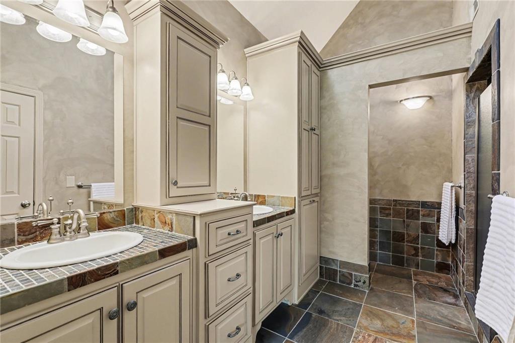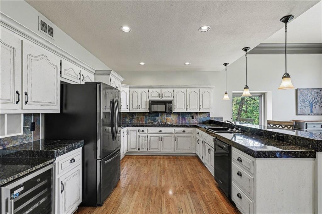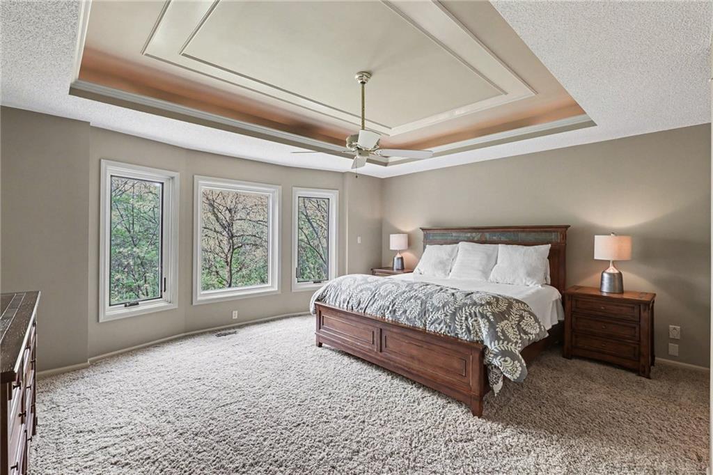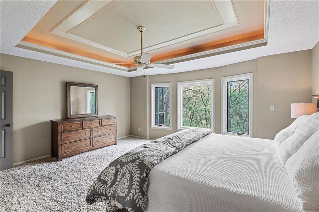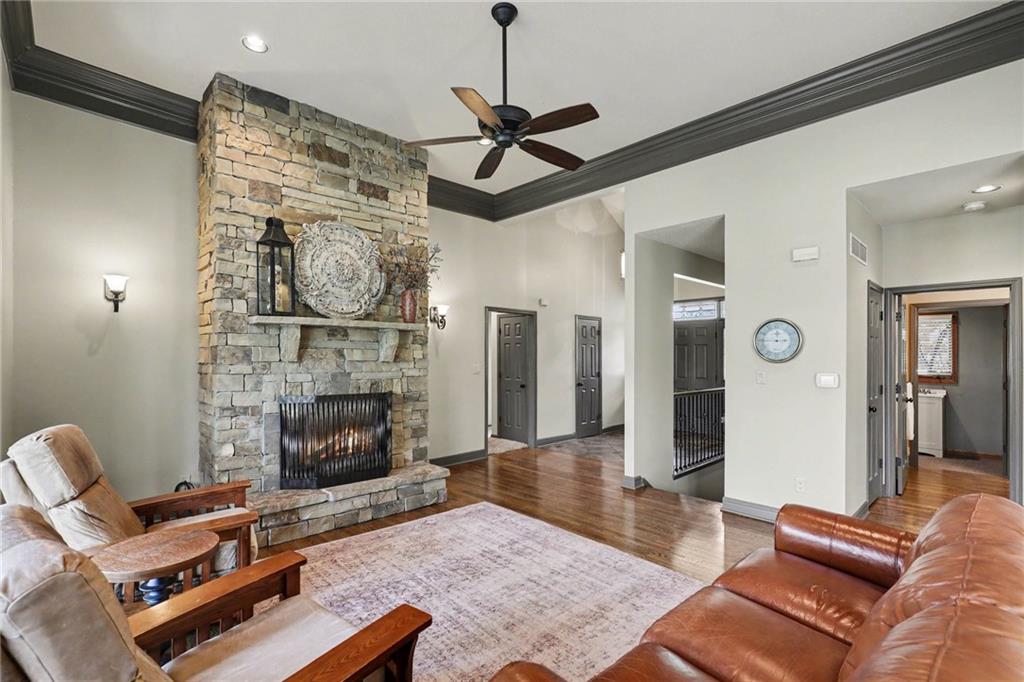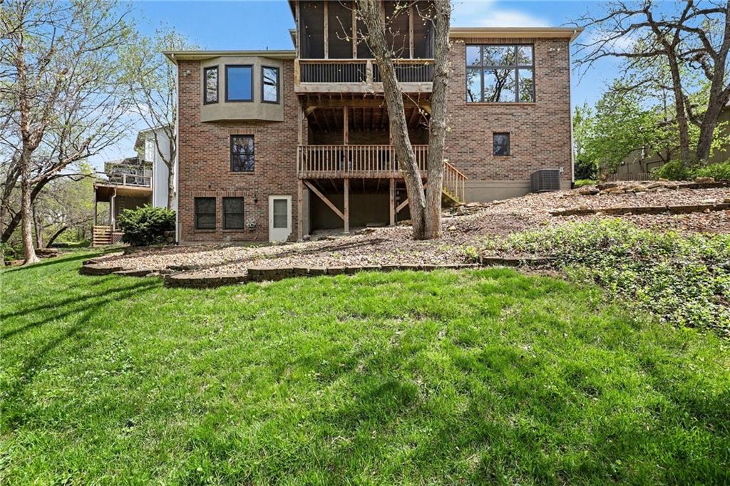 Stunning custom-built home where thoughtful design meets breathtaking views—come for the house, stay for the scenery. The chef’s kitchen is a showstopper with hardwood floors, custom cabinetry, granite tile countertops, a breakfast bar with seating, and stylish pendant lighting. The breakfast area features soaring ceilings, walls of windows, and access to the covered, screened-in porch—perfect for relaxing mornings or evenings. The inviting Great Room offers beautiful views of the treed backyard, upgraded trim, and a striking stone fireplace. The grand entry welcomes you with a vaulted ceiling, updated lighting, and tiled flooring. The primary suite is a retreat with bayed windows, a tray ceiling, and ceiling fan. The spa-like bath includes a double vanity with custom cabinetry, tiled floors, and a walk-in tiled shower. A secondary bedroom on the main level offers flexibility as a guest room or office. The large laundry room adds convenience with cabinetry and a sink. The lower level features a spacious living area with a corner fireplace and access to another covered deck, along with two generously sized bedrooms, a full bath, and a non-conforming bonus room. The next level is perfect for entertaining with a massive rec room, wet bar, and additional full bath. Walk out to the private, landscaped backyard and enjoy the serene, wooded setting year-round. Additional highlights include storage space under the two-car garage and a dedicated workshop area. This home truly has it all—space, function, and incredible views.