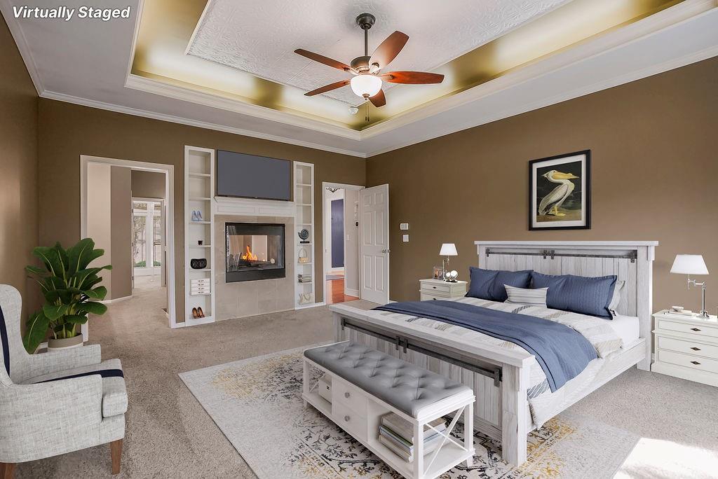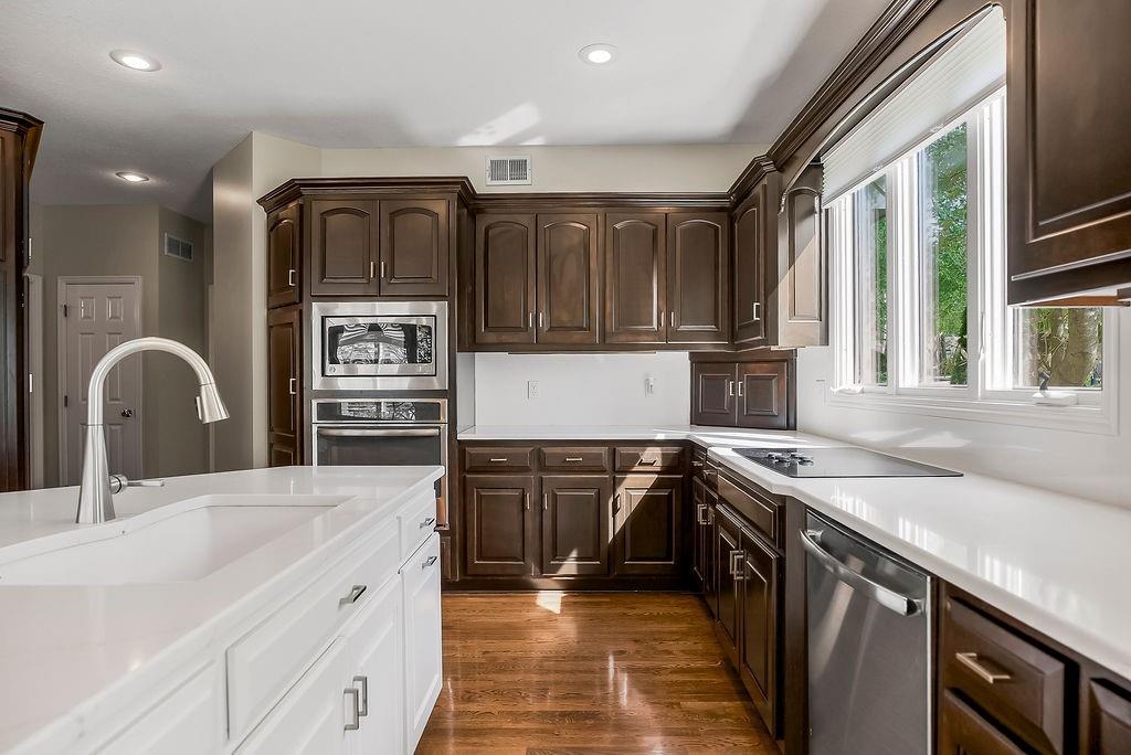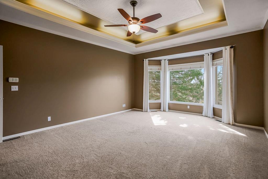 This meticulously maintained 1.5-story home with a finished walk-out basement is perfectly situated at the end of a quiet cul-de-sac. Set on a spectacular wooded lot backing to a scenic valley and greenbelt, the property offers exceptional privacy and serene views, with frequent visits from local wildlife. Main level features an open formal dining room perfect for entertaining large groups, a living room with a wall of windows, hearth room with built-ins and a see-through brick fireplace to the living room, and an updated kitchen (2024) with white quartz and three pantries (one walk-in). The main-floor primary suite offers a bay window, boxed vaulted ceiling with interior lighting, a spa-like bath with separate tub and shower, see-through fireplace to the bedroom, and a huge walk-in closet. Laundry with desk/folding counter off the 3-car garage. Screened deck overlooks private, tree-filled backyard. Upstairs: three bedrooms — two share a Jack-and-Jill bath, one with a private ensuite — plus built-in bookcases in the hall and guest bedroom and easy attic access that could be finished as a loft. Finished walk-out basement includes large game area with wet bar, 5th bedroom, 4th full bath, separate TV room, and patio. Additional highlights: immaculate condition, hardwoods on main level, plantation shutters, central vac, sprinkler system, wired for surround sound on main floor, natural stone landscaping and retaining walls, stamped concrete walkways, exterior paint 2022, dual HVAC units. Enjoy resort-style living in Cedar Creek — one of Kansas City’s finest neighborhoods with access to a 65-acre fishing lake, 3 community pools, lighted tennis & pickleball courts, clubhouse, indoor gym, and miles of walking trails.
