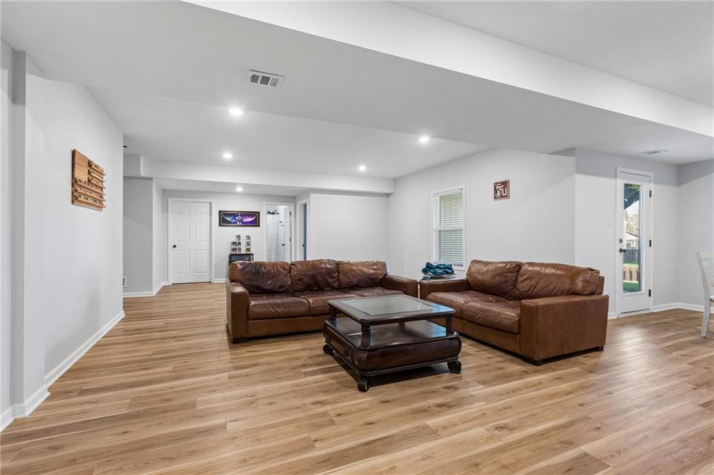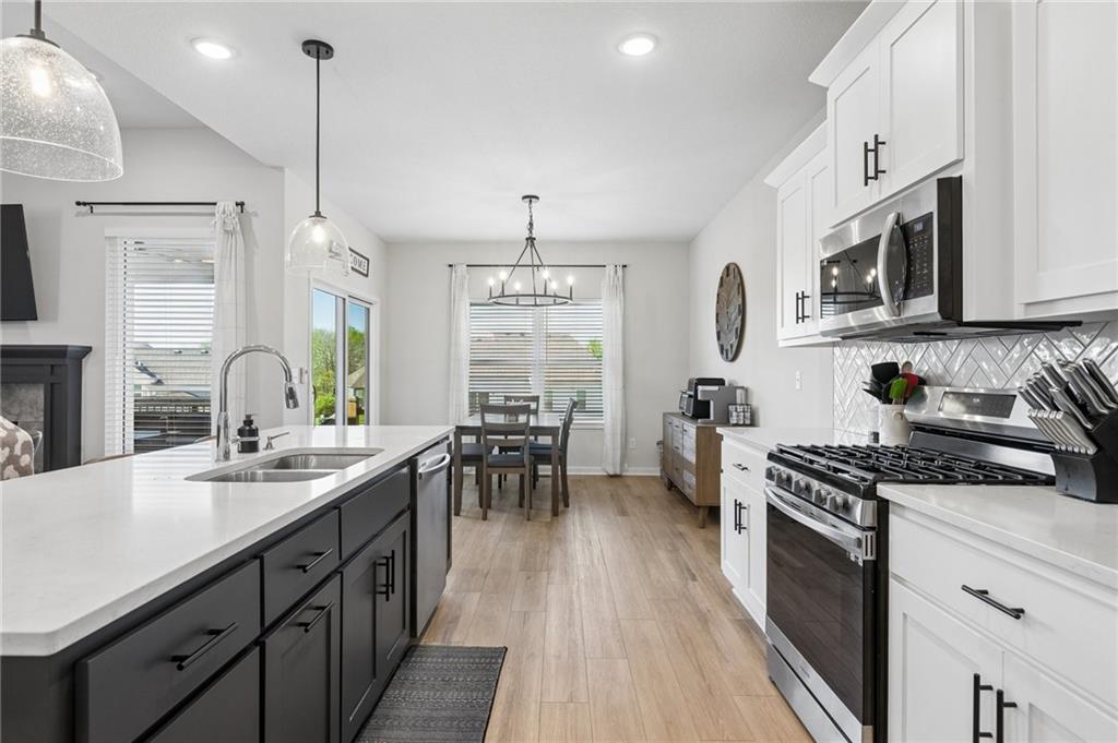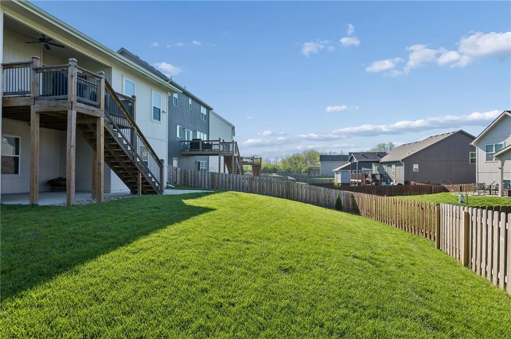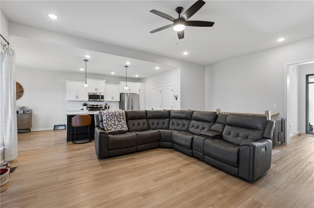 Gorgeous home in a sought-after Northland neighborhood! 4 Bedrooms / 3 Baths + 5th Non-Conforming Bedroom – perfect for office, gym, or guest space Open floor plan with gleaming hardwood floors and vaulted ceilings Two fireplaces – one in living room, one in family room Modern kitchen with quartz countertops, stainless steel appliances, eat-in dining, and large pantry Spacious primary suite with walk-in closet and double vanities Finished basement with family/rec room, full bath, and bedroom and 5th non-conforming bedroom Covered deck overlooks beautifully maintained fenced yard Convenient access to highways, shopping, and top-rated North Kansas City schools Move-in ready with space for everyone to spread out and enjoy!