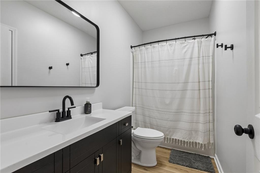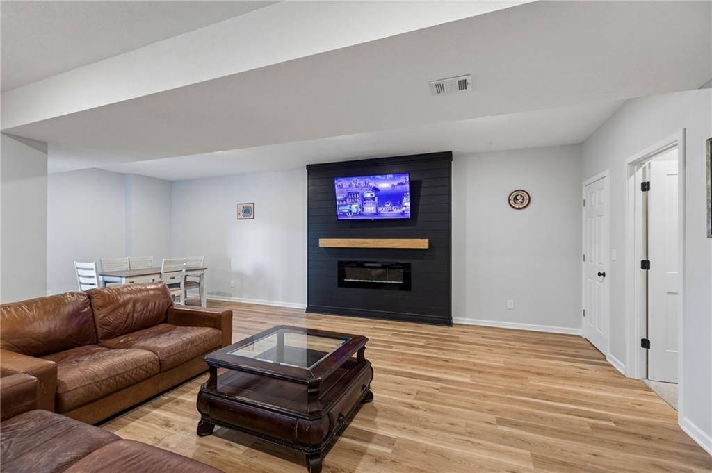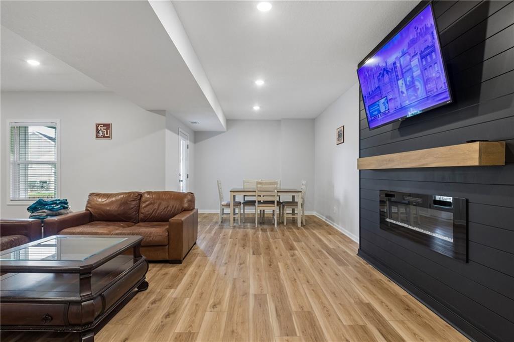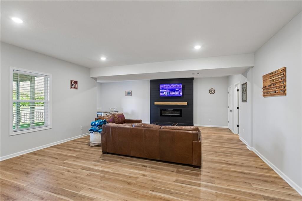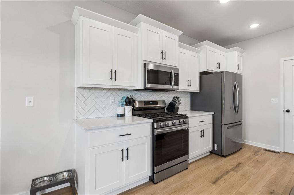 Gorgeous home in a sought-after Northland neighborhood! 4 Bedrooms / 3 Baths + 5th Non-Conforming Bedroom – perfect for office, gym, or guest space Open floor plan with gleaming hardwood floors and vaulted ceilings Two fireplaces – one in living room, one in family room Modern kitchen with quartz countertops, stainless steel appliances, eat-in dining, and large pantry Spacious primary suite with walk-in closet and double vanities Finished basement with family/rec room, full bath, and bedroom and 5th non-conforming bedroom Covered deck overlooks beautifully maintained fenced yard Convenient access to highways, shopping, and top-rated North Kansas City schools Move-in ready with space for everyone to spread out and enjoy!