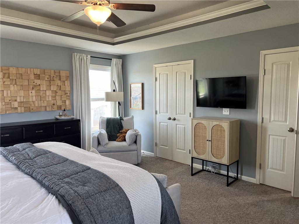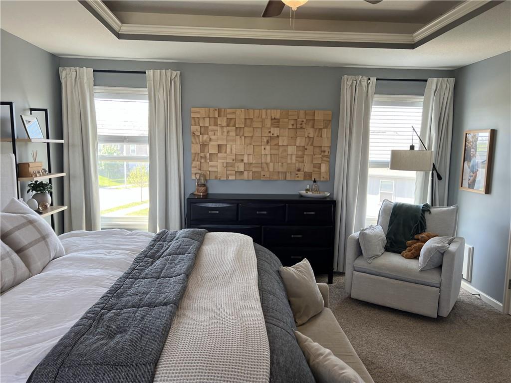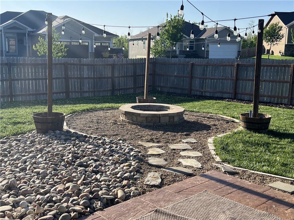 2 story on corner lot with tall wood fence and screened patio. Large covered front porch. Stacked stone trim. 3 car garage. Open main floor living with wood flooring. Kitchen has granite counters, an island, pantry and access to fenced backyard. 4 bedrooms, 2 baths and laundry room on 2nd floor. Primary bedroom features large walkin closet and en suite with jetted tub, double sinks and shower with bench. Unfinished basement with 2 egress windows. Private backyard has tall fence, firepit, patio with screened and unscreened area.