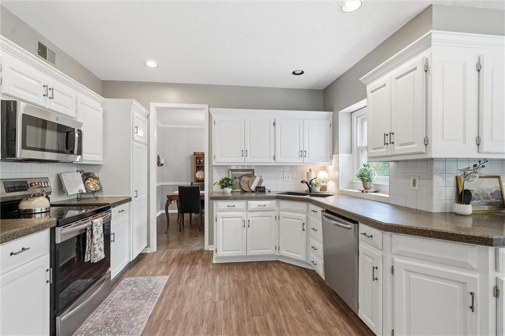 Welcome to this awesome 2-story home in the highly sought-after Creekside neighborhood. The neighborhood features scenic walking trails, a neighborhood pool, several ponds and is just a stones throw from Blue Valley High School, Stanley Elementary and the new Bluhawk shopping/dining area! This spacious home offers 4 bedrooms, 2.5 bathrooms along with a huge unfinished basement ready for your vision! Upon entering, you'll notice the extra large formal living room that could also be used as a home office, sitting room or even a play room! The bright white kitchen features plenty of countertop space, cabinetry room, a coffee bar area, granite countertops, stainless steel appliances and flows seamlessly into the large family room with a cozy gas fireplace. Main floor also showcases a formal dining room, laundry room and half bathroom. Upstairs you'll find 3 spacious bedrooms that share a full size bathroom and the primary bedroom with it's own ensuite bathroom. New Roof installed Aug 2025! This home is the perfect blend of comfort, size and location. Don't miss it!