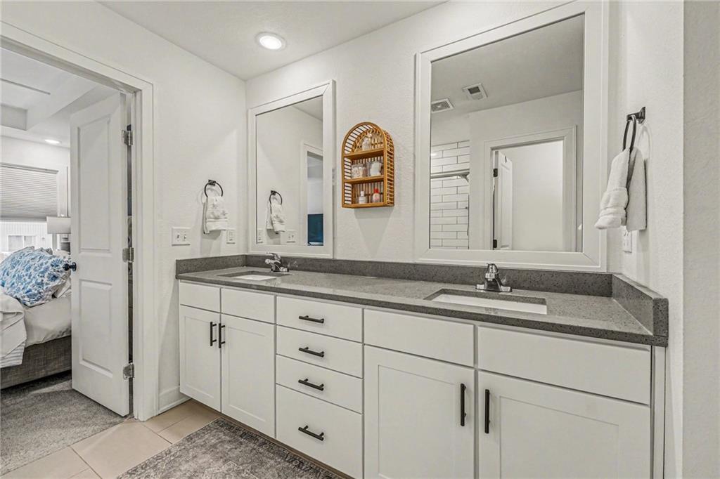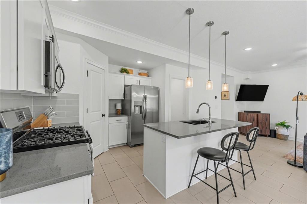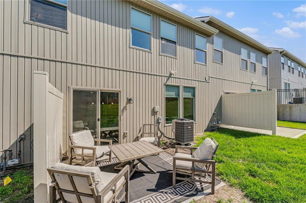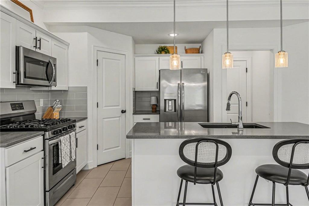 Low-maintenance living in the heart of Parkville. This meticulously kept home offers 3-bedroom and 2.5 bathrooms. Step inside to discover a bright and airy open floor plan, perfect for entertaining. Serene primary suite with custom geometric wall detailing, a large walk-in closet, and a private en-suite bath with dual vanities and elevated finishes and quartz countertops.The sleek kitchen features stainless steel appliances, tile floors, ample counter space, and a stylish island. The spacious living and dining area flows seamlessly to your back patio.
