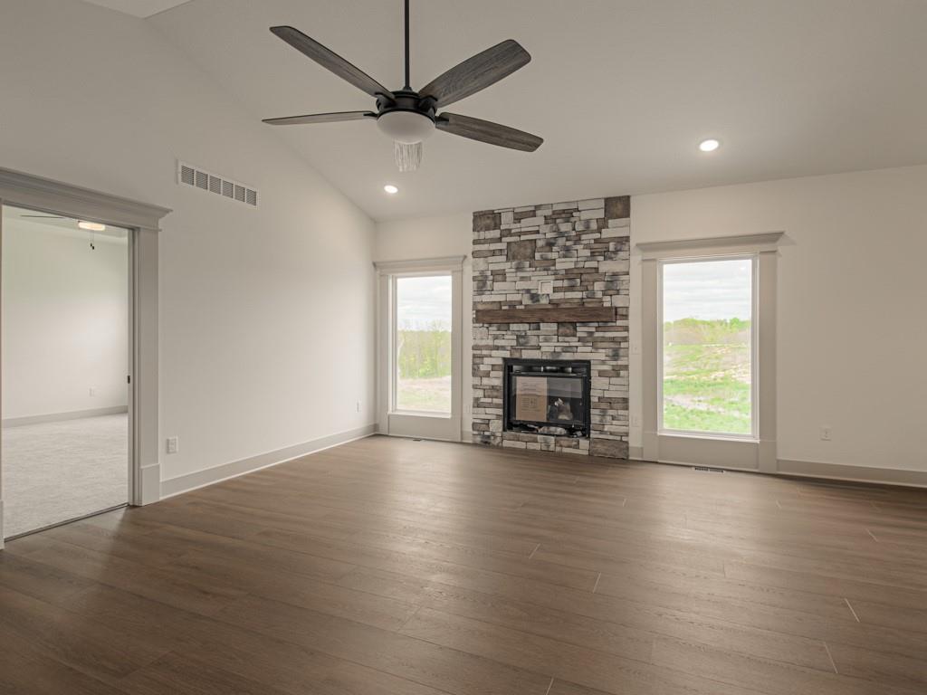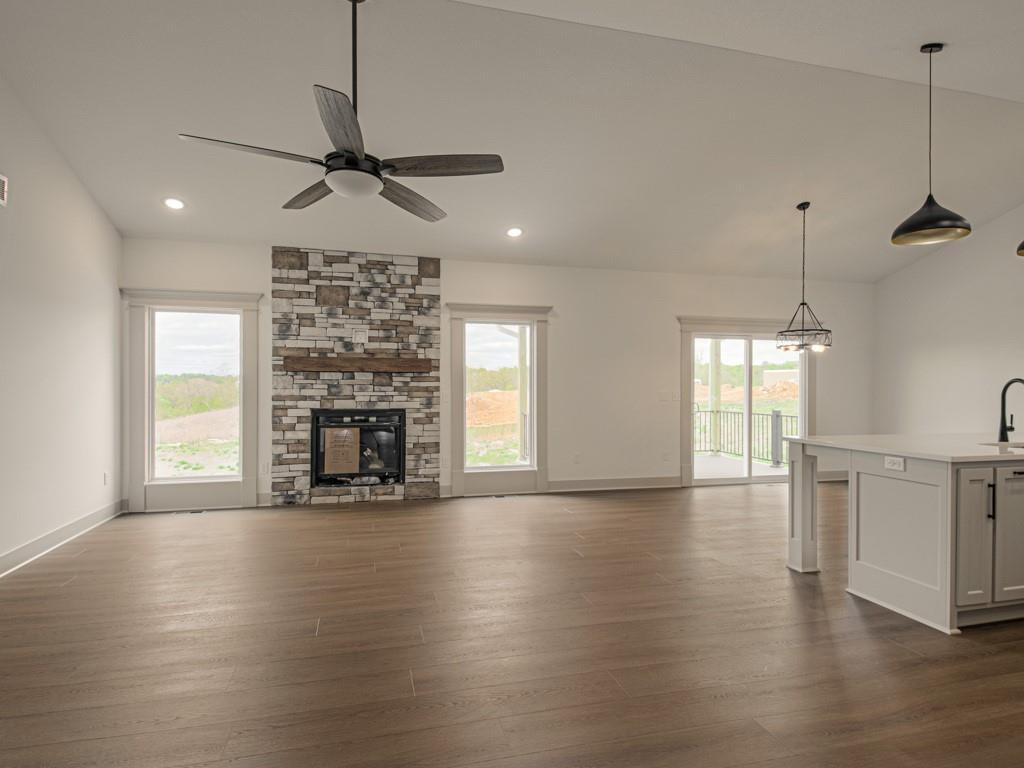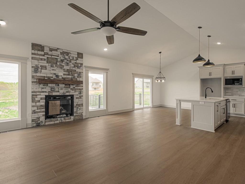 Brand-New True Ranch in Unincorporated Platte County! Looking for space, style, and one-level living? This stunning 4-bedroom, 3.5-bath open-concept true ranch in Running Horse Subdivision delivers exceptional craftsmanship and modern comfort throughout. As you step inside, you will find the extra-wide entry that flows into a bright, expansive living area featuring beautiful hardwood floors and a striking stone fireplace. The chef’s kitchen is the heart of the home, showcasing a large island, abundant cabinetry, and a walk-in pantry, perfect for everyday living and entertaining. The dining area opens to a covered deck, ideal for morning coffee, weekend BBQs, or relaxing evening sunsets. The main level offers true convenience with laundry, three of the bedrooms, including the private primary suite complete with a spa-like bath and spacious walk-in closet. The finished lower level expands your living space with a large family room, an additional bedroom, a full bath, and ample storage. Walk out to a partially covered patio and enjoy the beauty of your spacious lot, perfect for play time, gatherings or quiet evenings. This property offers the perfect blend of location, space, and style; and is ready to welcome you home!