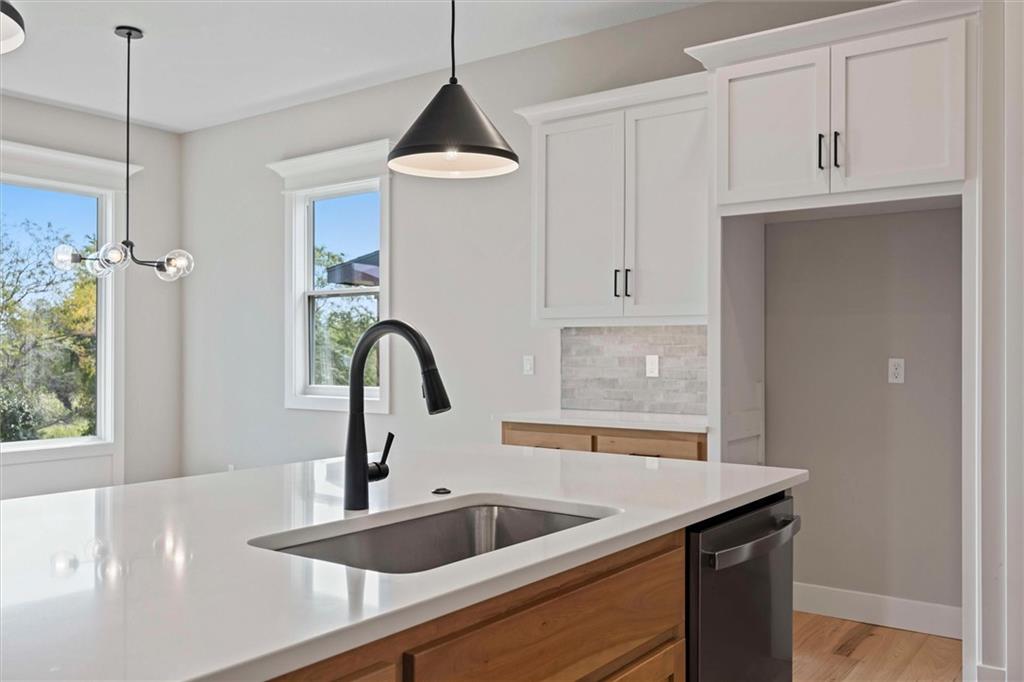 MOVE-IN READY - Discover the exceptional craftsmanship of Lamendola Custom Homes with The Aiden Expanded, located on Lot 99. This stunning 4-bedroom, 3-bathroom reverse-story home offers an impressive blend of style, comfort, and functionality. The main level features a beautifully designed kitchen, an inviting great room, a serene primary suite, a secondary bedroom that can double as an office, a convenient 3/4 bath, and a well-placed laundry room. The lower level expands your living space with two additional bedrooms, a full bathroom, a spacious family room, and an impressive bar complete with a large island—perfect for entertaining. Situated on a daylight lot with a covered deck, this home also includes an oversized garage with 8-foot garage doors for added convenience and versatility. Come experience the quality and elegance this home has to offer!