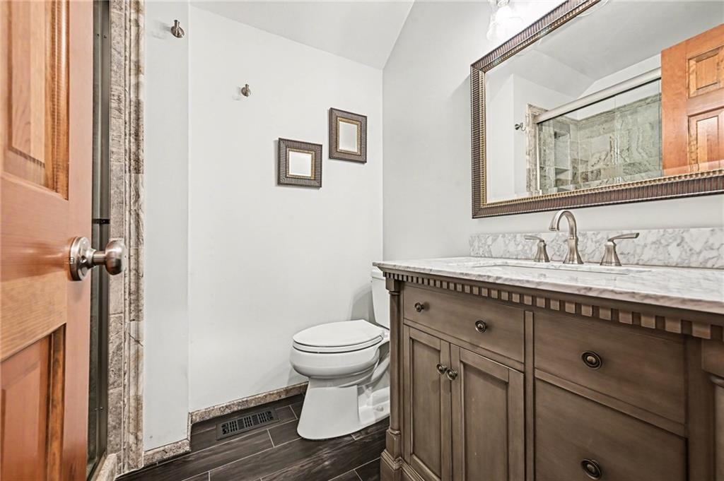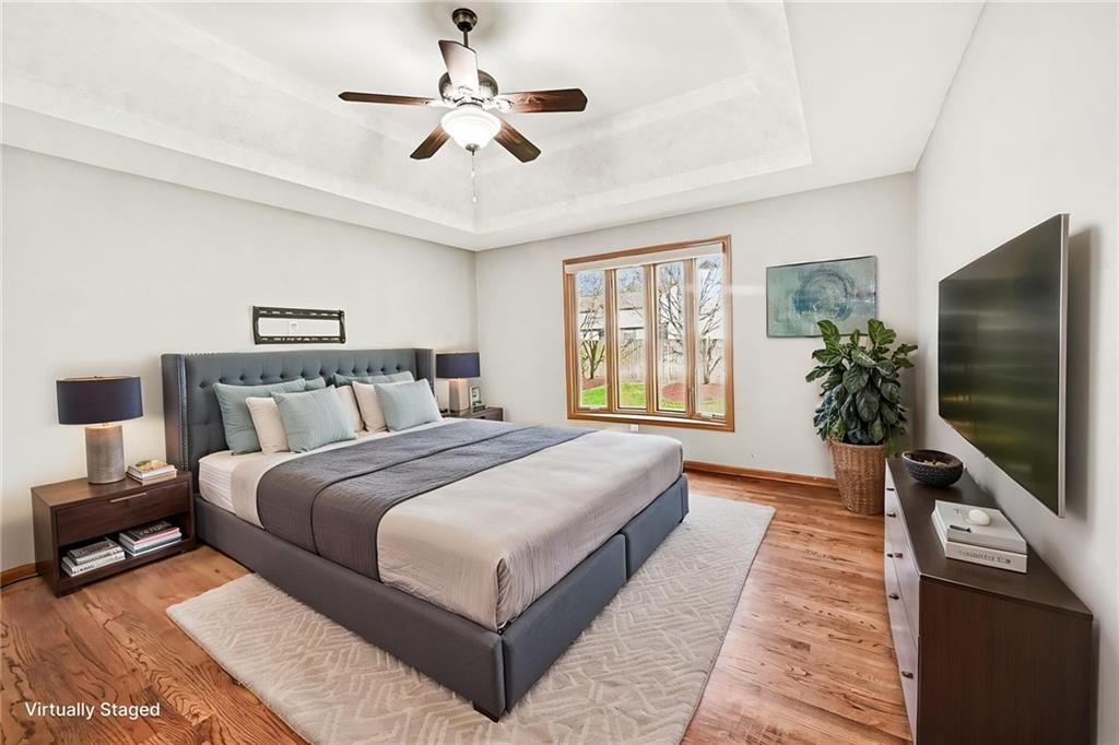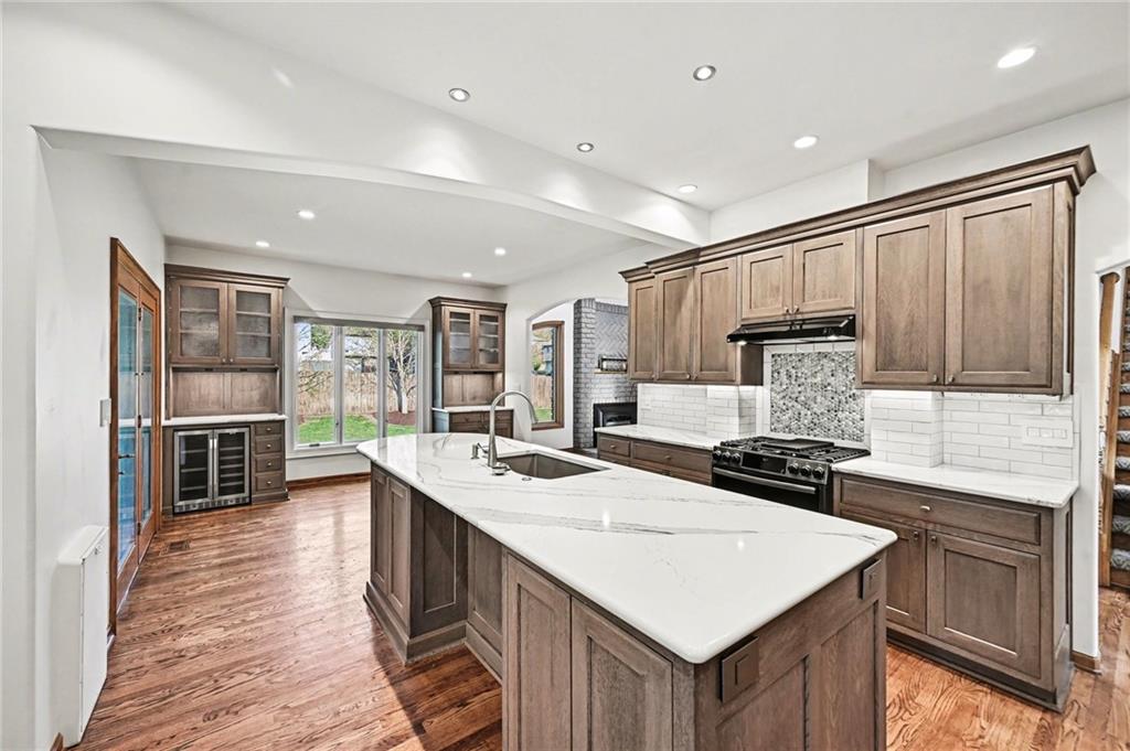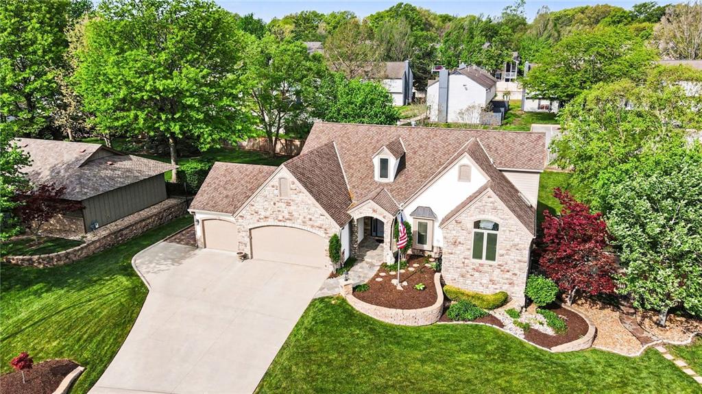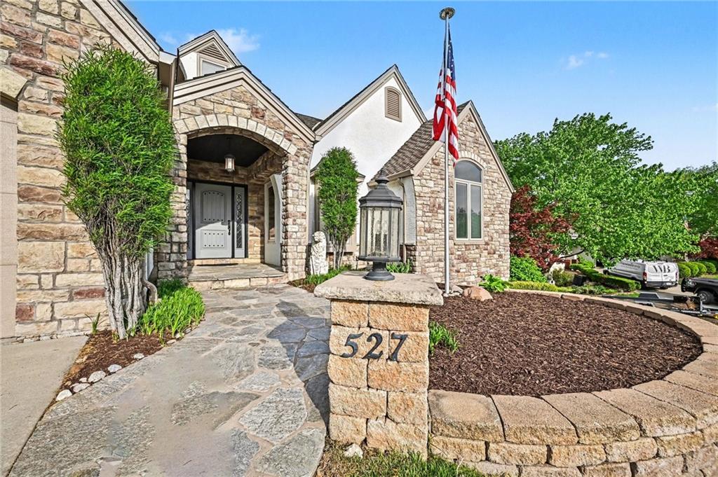 Located near the Lawrence Country Club, this expansive and beautifully maintained home offers exceptional space, updates and comfort throughout. The welcoming hardwood entry opens to an office with French doors. The spacious living room features gleaming hardwoods, a vaulted ceiling and a cozy fireplace. The oversized kitchen is a chef's dream-with quartz countertops, custom cabinetry, under-cabinet lighting, a gas range, built-in microwave, wine fridge and hardwood floors. There is an enclosed sunroom complete with ceiling fan, split heat/air and a nice doggie door. The main-level primary suite is spacious, has a massive walk-in closet and a wonderful, updated bathroom with a huge walk-in shower, custom cabinets and gorgeous tile flooring. A second main-floor bedroom has lots of room. There is a full bathroom in the hall with a wonderful skylight. There is a main floor laundry room as well as a laundry area in the lower level. The upstairs has two large bedrooms. The third bedroom has a large walk-in closet and beautiful plantation shutters. The fourth bedroom also boasts a nice walk-in closet. There is a bathroom on the second level that has a wonderful step-in shower. The lower-level walkout basement offers luxury vinyl flooring, a secondary kitchen with a huge island, sink and custom-built cabinets. The fifth bedroom is absolutely enormous with a large walk-in closet. There is a full bathroom in the lower level which makes this area perfect for guests or extended living. The lower-level walks out to a large patio. The big backyard has a gorgeous stone patio, pergola and a nice firepit. This home has beautiful landscaping, stone walkway in the front and a three-car garage. This stunning home combines abundant living space, quality craftsmanship, and a prime location near golf, trails, shops, schools and more. This is an ideal blend of luxury and comfort. Taxes and rooms sizes are approximate. Buyer to confirm schools and any information they deem important.