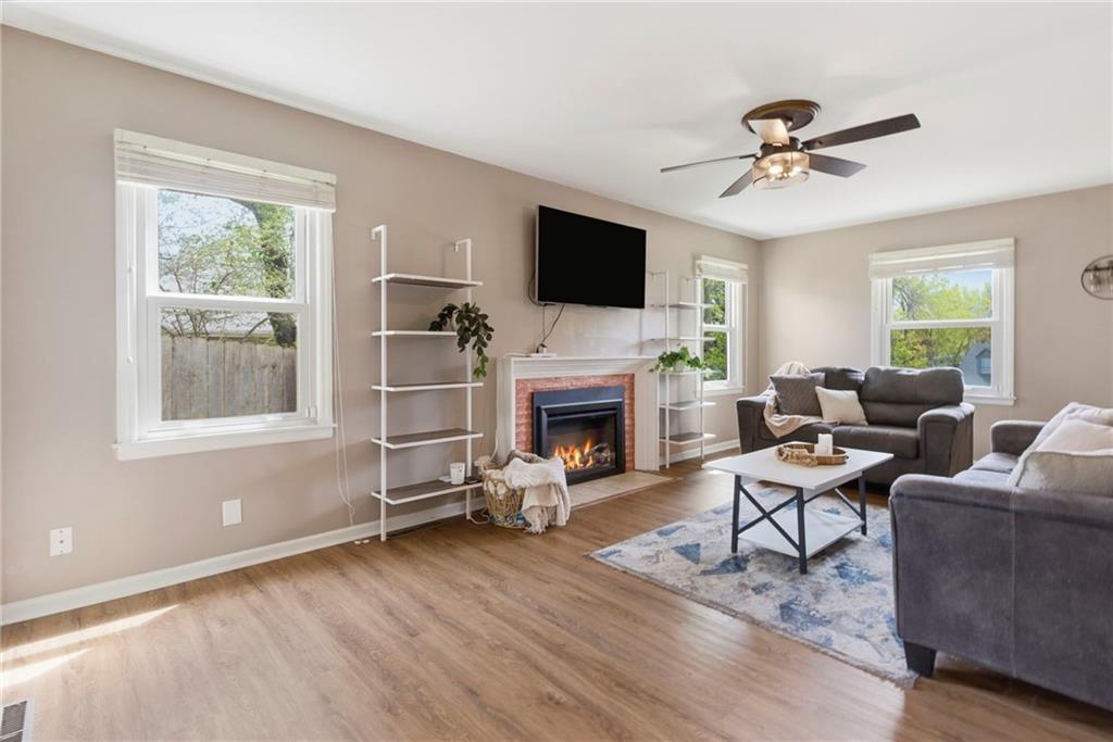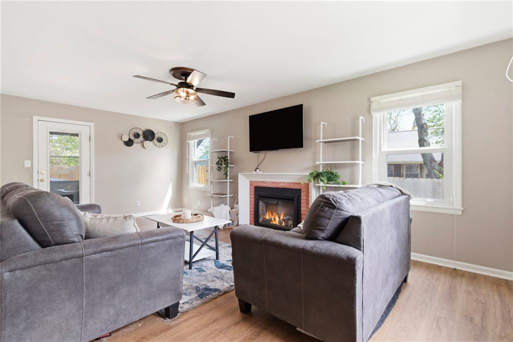 Tucked away on a quiet culdesac just minutes from downtown North Kansas City, this second owner home has been thoughtfully maintained and beautifully updated. From the moment you walk in, the home feels bright and inviting. The dining area is filled with natural light thanks to oversized windows that perfectly showcase the large backyard. The main level primary suite offers a comfortable retreat with its own ensuite bathroom and walk in closet. Additional bedrooms are generously sized, giving you flexibility for guests or a work from home space. Recent updates include luxury vinyl plank flooring and fresh interior paint throughout. Downstairs, the finished lower level adds even more living space with updated flooring and a custom built bar that is ready for game days, movie nights, or hosting friends. Out back, the fully fenced yard and large partially covered deck create an ideal setup for entertaining or simply unwinding. In the warmer months, the front garden comes to life with vibrant blooms, adding to the home’s charm and curb appeal. In the winter, the fireplace offers the perfect cozy escape. This is one of those homes that just feels good the second you walk in, with the updates already done and the location hard to beat!