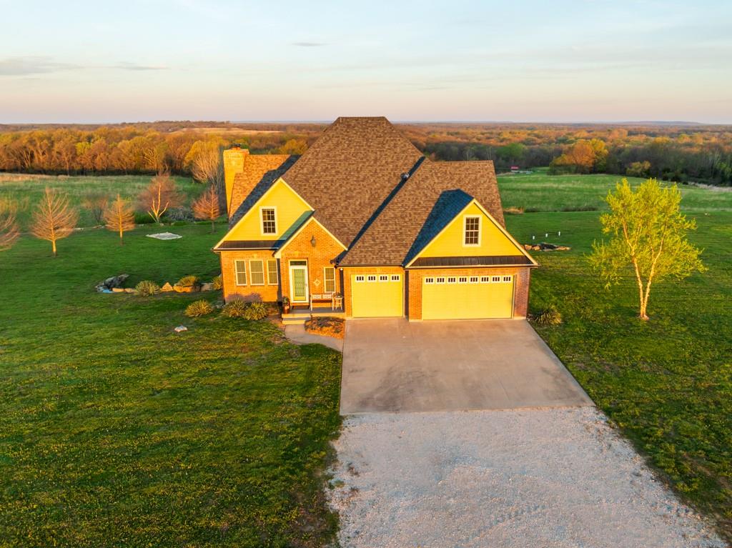 Escape the city life and live on 71.6 +/- acres that looks like a setting from a magazine. You will fall in love with the 1,000+ foot driveway access to the house that sits perfectly overlooking the property. Enjoy the sunrise and sunset views that literally go on for miles. The gently rolling land mainly consists of amazing pasture ground along with a 5 +/- acre patch of timber. It gets even better with a 2.5 +/- acre spring fed pond that is loaded with fish! The land offers it all and the real possibility of making it your very own country homestead. The 5 bedroom, 4.5 bathroom house was built in 2005 and offers plenty of space for the family and entertainment. It’s a must see! The main level features a living room with a fireplace, vaulted ceilings, formal dining room, oversized eat-in kitchen, and a massive master suite. The upstairs includes 4 spacious bedrooms, 2 bathrooms, and an additional large play or storage room. The full walkout basement offers plenty of storage space and is currently framed as a separate studio apartment style living quarters for guests or in-laws. Another awesome feature is the oversized 5 car garage offering plenty of room for vehicles, gear, or a workshop. Don’t forget about the incredible deck off the main level with amazing scenic views. Another bonus is the 30’x50’ outbuilding that will come in handy for storing farm equipment and other fun toys. This property checks all the boxes!