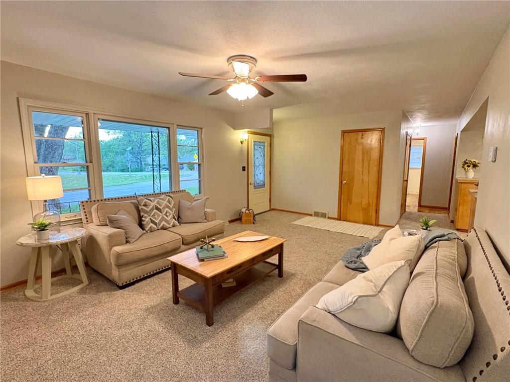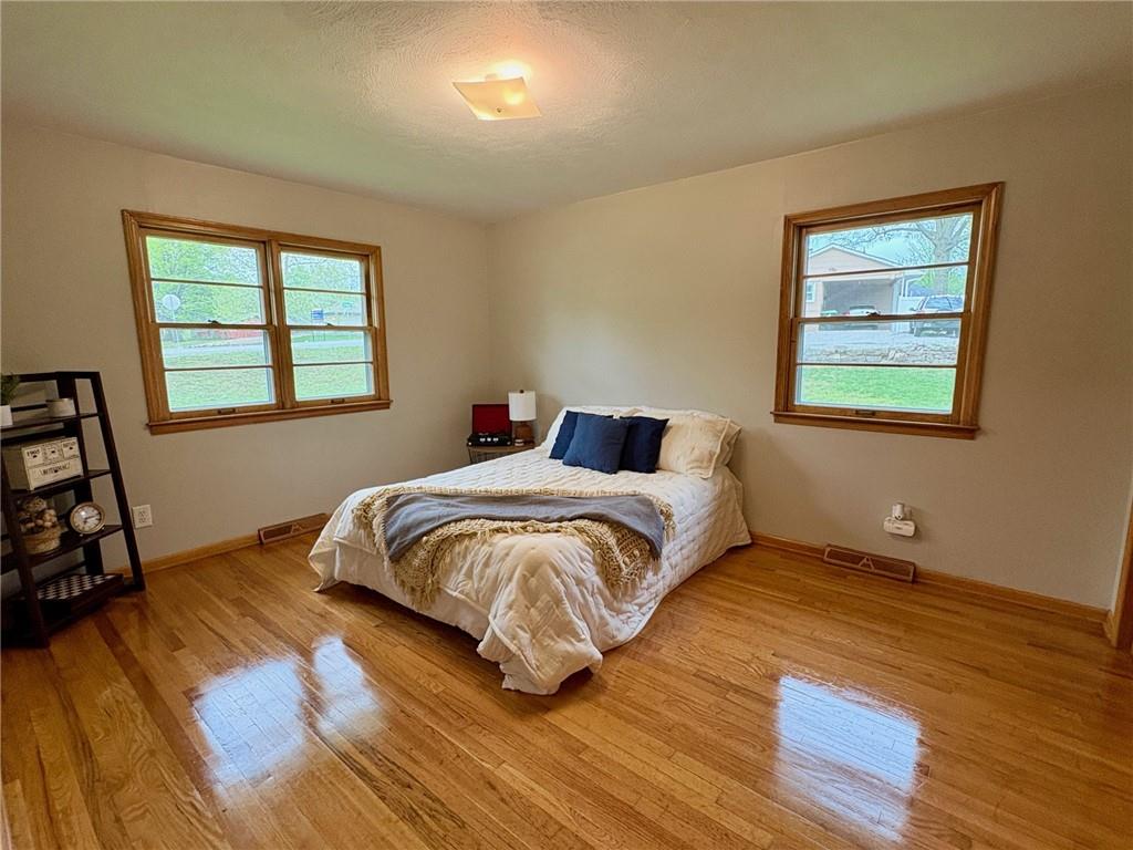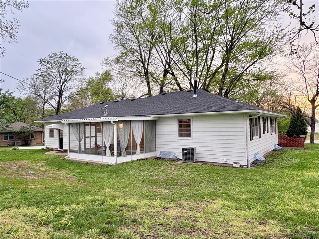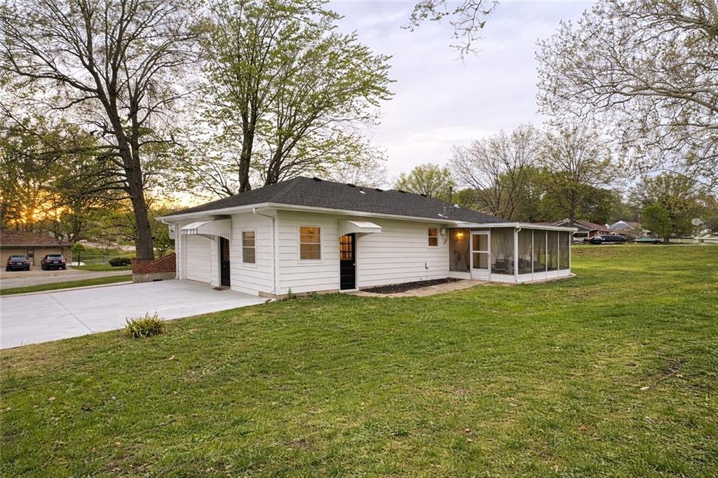 Welcome home! This beautifully maintained mid-century ranch is perfectly situated on a spacious corner lot in a desirable Harrisonville location close to schools, shopping, and parks. This move-in ready home offers a wonderful blend of classic charm and modern updates throughout. Recent improvements include fresh interior and exterior paint, updated yard drainage, and a roof less than three years old. Major mechanicals have been well maintained with a recently serviced HVAC system (including updated control module), a newer hot water heater, and a sump pump approximately three years old. Interior updates shine with new carpet in the living room, refinished hardwood floors in all bedrooms, new ceramic tile in the bathroom, and luxury vinyl plank flooring in the kitchen and dining areas. The kitchen also features a newer oven, making it both functional and inviting. Enjoy year-round comfort in the bright four-season room just off the kitchen—perfect for relaxing or entertaining. Additional upgrades include epoxy-coated floors in the basement, garage, and utility shed, along with a newly installed sidewalk and driveway built with durable, reinforced concrete for long-term value. The unfinished basement provides excellent opportunity for future expansion—ideal for a recreation room, home gym, or additional living space.
