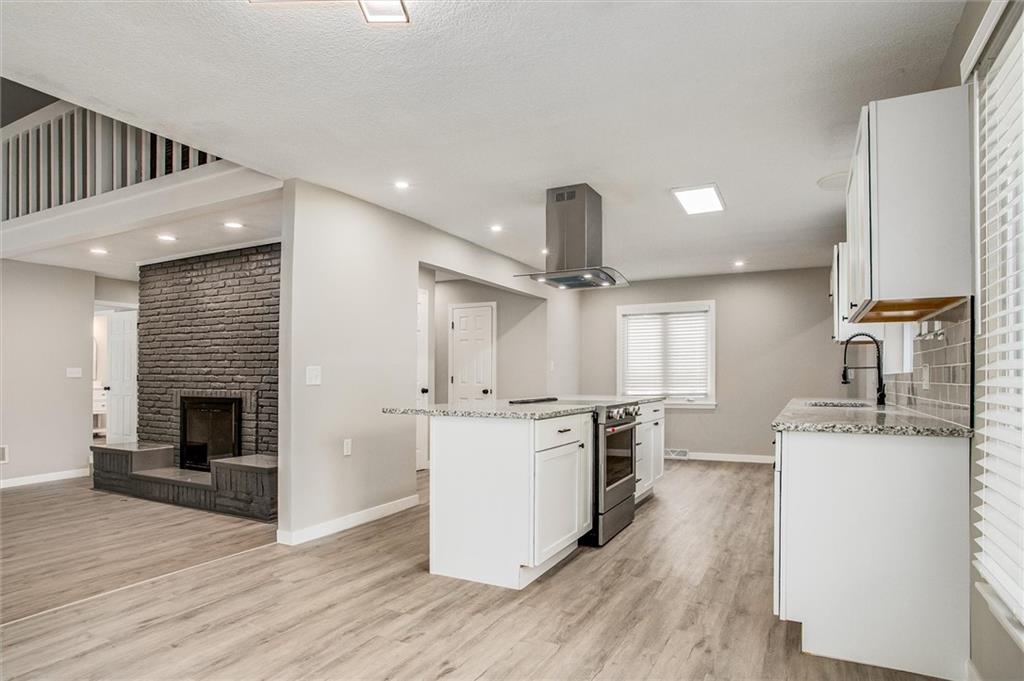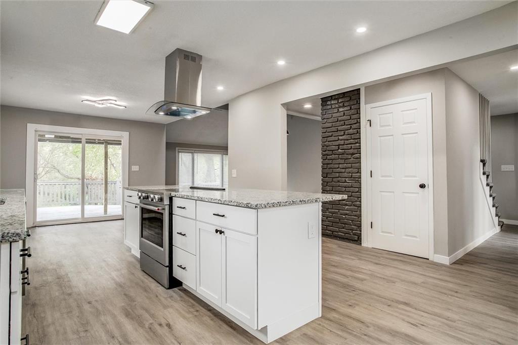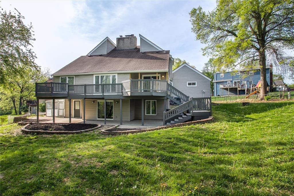 Fabulously modern and truly unique, this beautifully remodeled home is tucked into a family-friendly cul-de-sac in the Northland. A striking floor plan welcomes you with soaring ceilings and a dramatic exposed fireplace that extends to the second-story loft. This 1.5 story floorplan features the primary bedroom & bathroom on the main level, with all finishes updated throughout. The brand-new kitchen shines with stainless steel appliances, granite countertops, and a center island. Just off the kitchen, a generous mudroom offers convenient laundry and ample drop space for backpacks, shoes, and more. Upstairs, you’ll find three additional bedrooms and a full bathroom, with loft views below. The finished basement expands your living space with a fifth bedroom, a third full bathroom, a large family room with a second fireplace, and a versatile bonus room ideal for a playroom, home office, or fitness area. Screened in sunroom is perfect for relaxing or any plant lover. The large, private lot offers multiple outdoor living spaces- including a deck stretching the length of the house and two patios. Subdivision includes pool, tennis courts, pickleball, and clubhouse, and located within the highly regarded Staley School District.