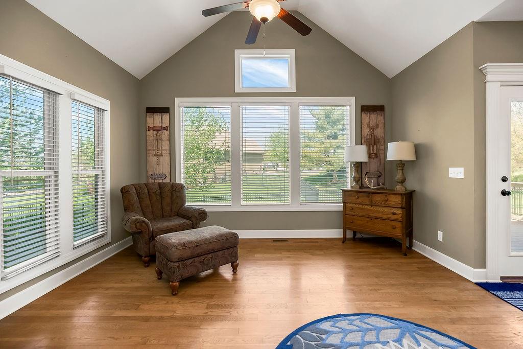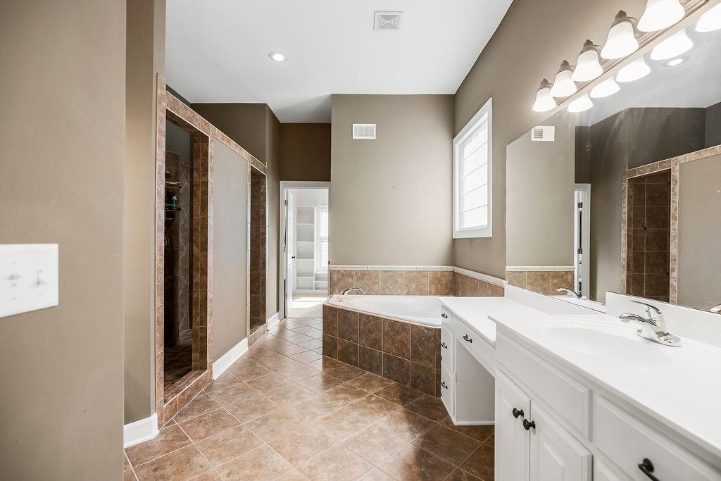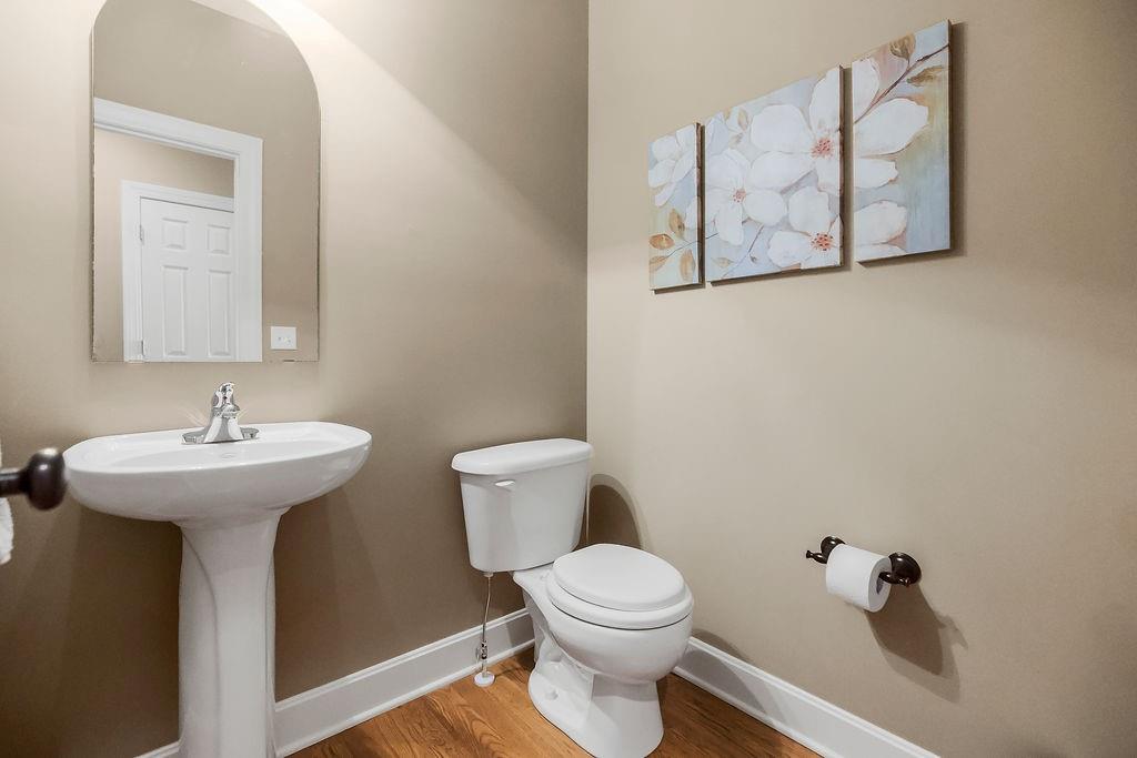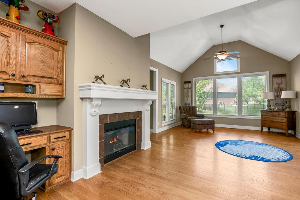 Beautiful 1 1/2 story home offers an exceptional floor plan, Dramatic open foyer has cathedral ceilings that flows into the Great room, offering a beautiful see through fireplace, full of natural light with floor to ceiling windows that carry throughout the home, Master suite on Main floor, offers his and her vanities, double entry shower with 2 shower heads, large luxurious tub, flows right into master large walk in closet with built ins. style Kitchen and large Hearth room has floor to ceiling windows, see through fireplace, beautiful Granite countertops, large Island with built-in cooktop and seating, large walk -in pantry, built-in desk in kitchen, open to back deck, great for outdoor entertaining, main floor laundry room with built- ins and 1/2 bath. Double entry from kitchen and entry foyer to 2nd level where there is an open area with built in desk and drawers, has 3 large bedrooms, a bonus room, jack n Jill bath with 2 separate vanity rooms, 3rd bedroom has private full bathroom. The basement is open the full size of home, has an egress window, and very tall ceilings used now as game room and work out room, could be finished out for a 5 the bedroom, media room, whatever you can vision. Has Zoned HVAC, 1 of the systems newer. Back yard is fenced, in ground lawn sprinklers, home has new roof. Very close to community private pool, walking trails, and a small lake.