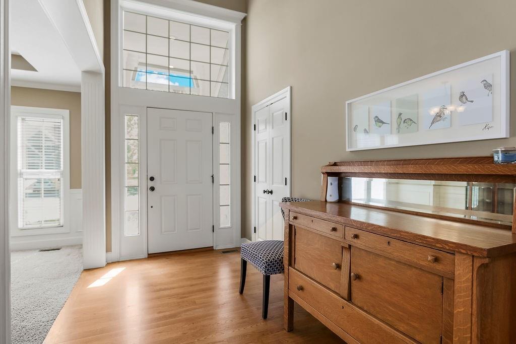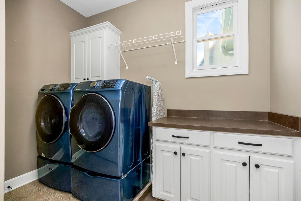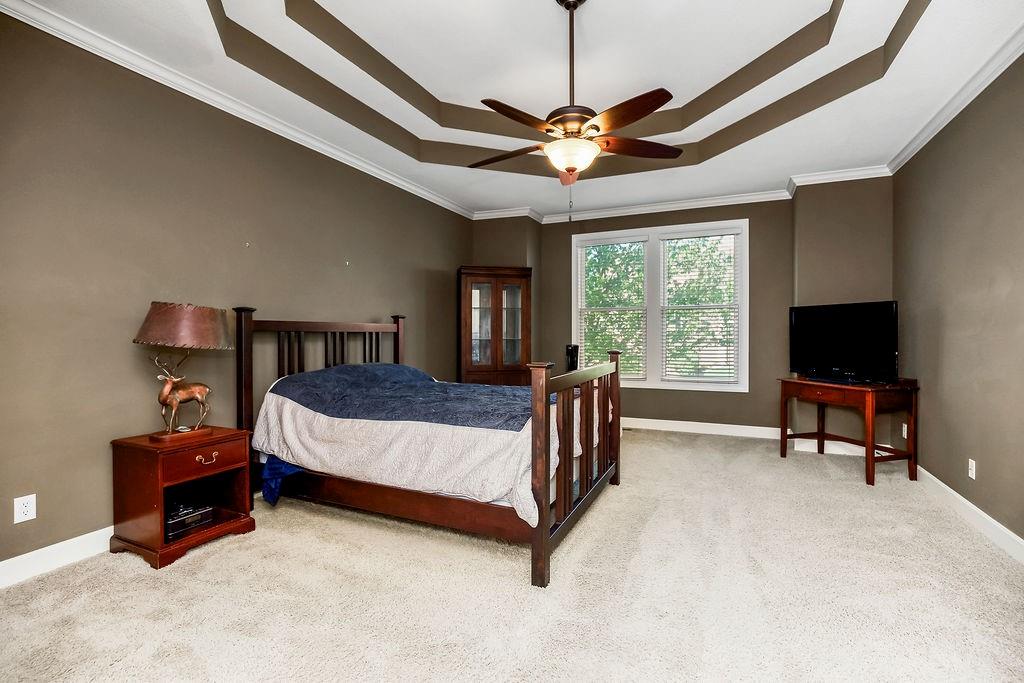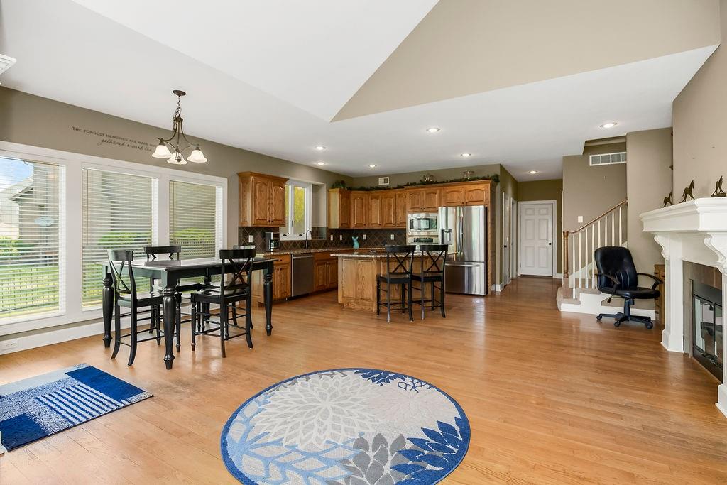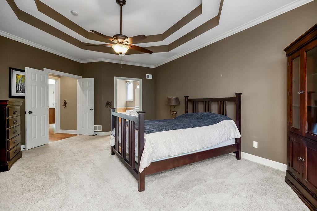 Beautiful 1 1/2 story home offers an exceptional floor plan, Dramatic open foyer has cathedral ceilings that flows into the Great room, offering a beautiful see through fireplace, full of natural light with floor to ceiling windows that carry throughout the home, Master suite on Main floor, offers his and her vanities, double entry shower with 2 shower heads, large luxurious tub, flows right into master large walk in closet with built ins. style Kitchen and large Hearth room has floor to ceiling windows, see through fireplace, beautiful Granite countertops, large Island with built-in cooktop and seating, large walk -in pantry, built-in desk in kitchen, open to back deck, great for outdoor entertaining, main floor laundry room with built- ins and 1/2 bath. Double entry from kitchen and entry foyer to 2nd level where there is an open area with built in desk and drawers, has 3 large bedrooms, a bonus room, jack n Jill bath with 2 separate vanity rooms, 3rd bedroom has private full bathroom. The basement is open the full size of home, has an egress window, and very tall ceilings used now as game room and work out room, could be finished out for a 5 the bedroom, media room, whatever you can vision. Has Zoned HVAC, 1 of the systems newer. Back yard is fenced, in ground lawn sprinklers, home has new roof. Very close to community private pool, walking trails, and a small lake.