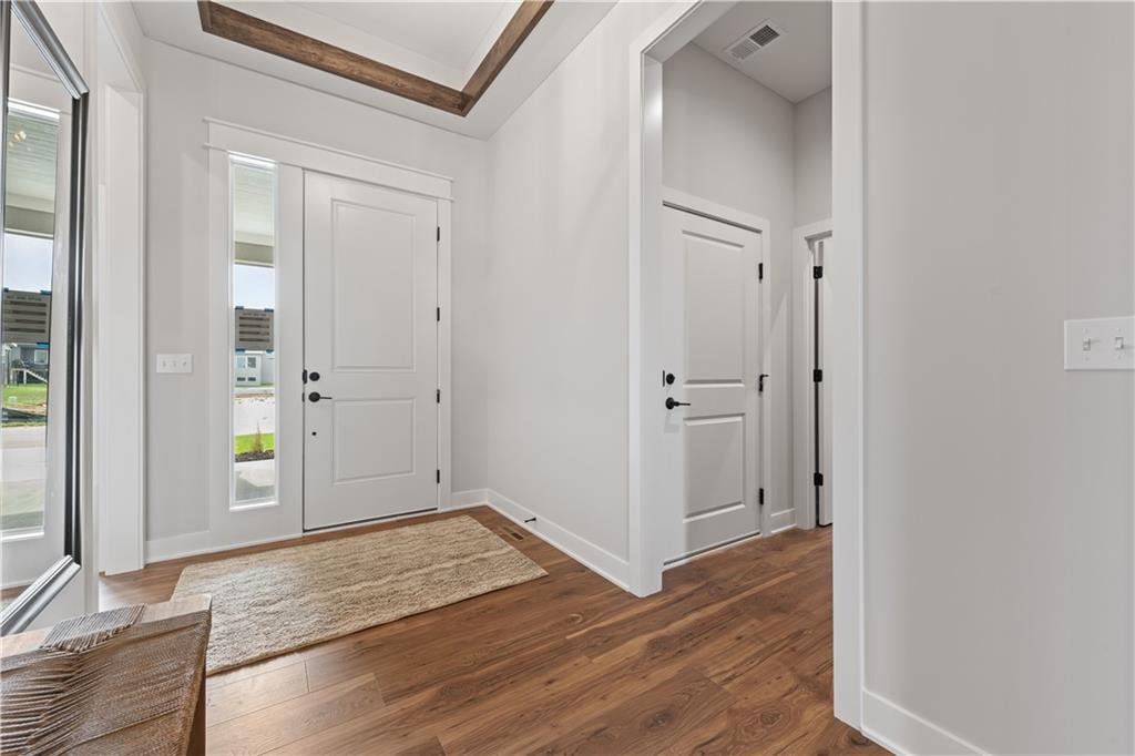 Ready for an end of June 2026 close! Presenting The Cambridge, the newest Reverse 1.5-story floor plan by award-winning builder Inspired Homes, nestled in the sought-after Pryor Ridge community. This thoughtfully crafted 4-bedroom, 3-bath residence blends upscale design with everyday comfort and functionality. A bright, open-concept layout welcomes you with a spacious entry, striking staircase, 10-foot ceilings, and expansive windows that flood the home with natural light. The gourmet kitchen is designed to impress, featuring quartz countertops, a designer tile backsplash, soft-close cabinetry, a large island, and a walk-in pantry—ideal for hosting and daily living. The great room showcases a beautiful stone fireplace and flows seamlessly to a covered patio and level backyard, perfect for enjoying outdoor spaces. Durable and stylish RevWood flooring extends throughout the main living areas. Retreat to the main-level primary suite, complete with a spa-inspired bath offering a 6-foot soaking tub, walk-in shower, dual vanities, and a walk-in closet with convenient access to the laundry room. The finished lower level expands your living space with a recreation room, two additional bedrooms, a full bath, and ample storage. Conveniently located just minutes from Downtown Lee’s Summit, as well as nearby lakes, trails, shopping, dining, and highly rated schools. Enjoy added peace of mind with new construction backed by a 2-10 Home Warranty, including 10-year structural, 2-year mechanical, and 1-year workmanship coverage. Final touches are underway—this home is nearing completion in its Quality Assurance stage. **Photos are of previous stage home. See last photos for actual home.