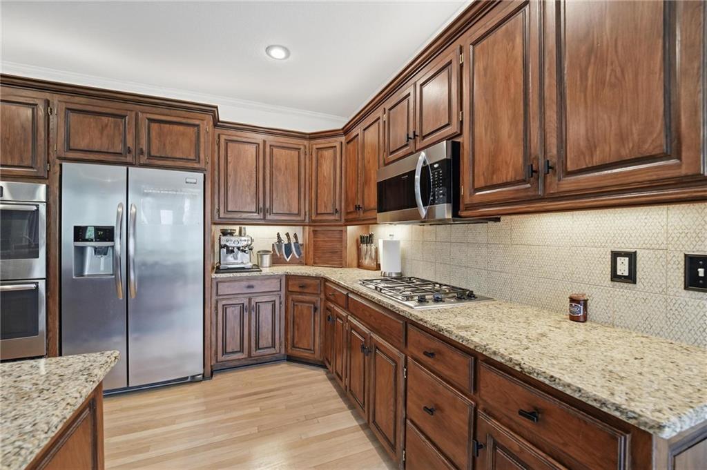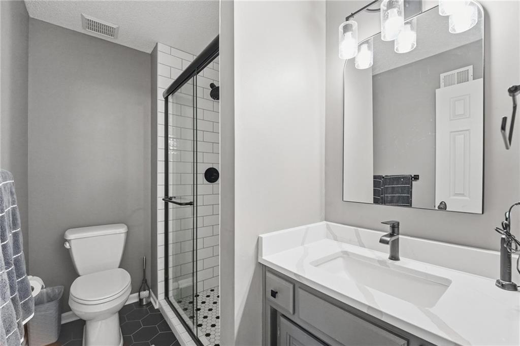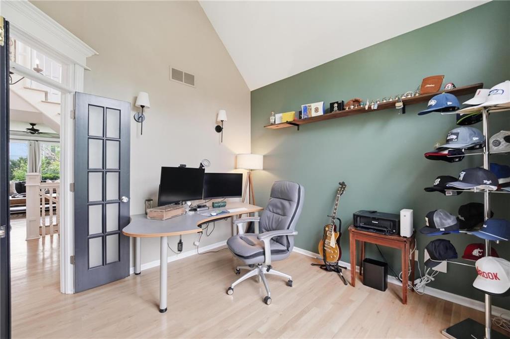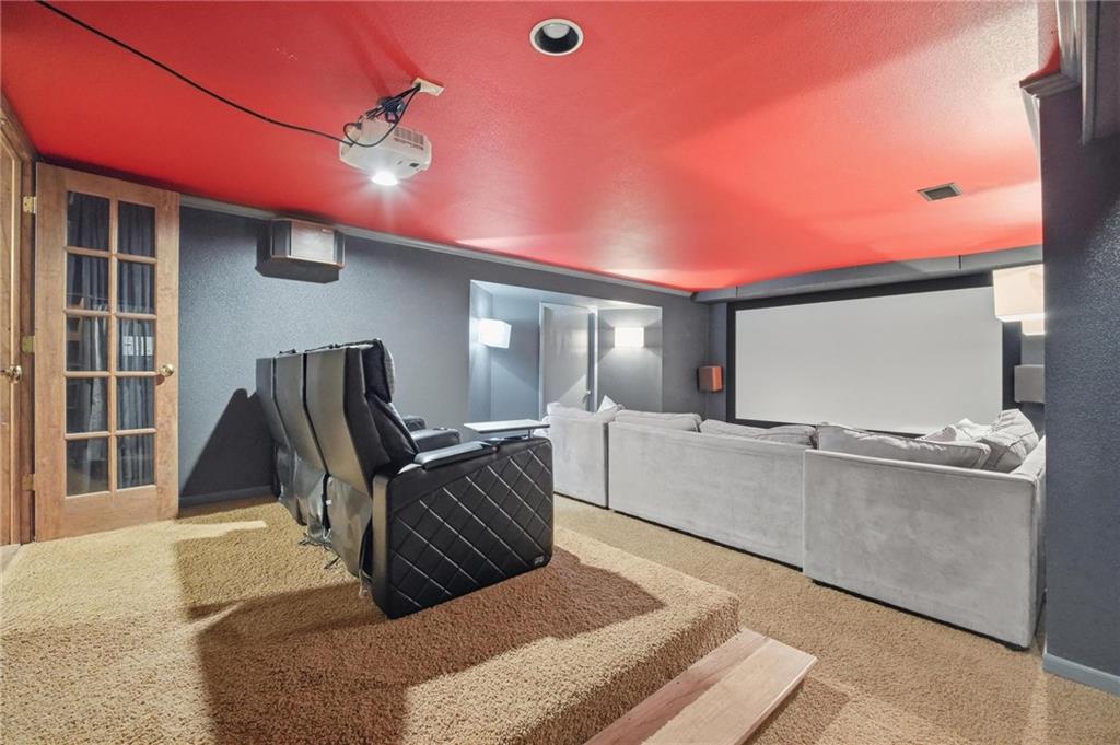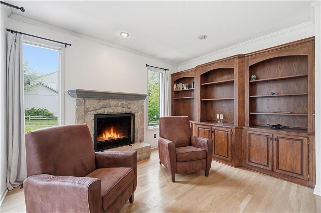 Step inside and you’ll love how easily the main level flows—from the open foyer to a private front office, into the living and dining spaces, all tied together with gorgeous hardwood floors. The kitchen is truly the heart of the home, with an angled island, granite countertops, shaker cabinets, stainless appliances, and charming built-ins. Whether you’re hosting or just enjoying a quiet night in, the two stone fireplaces (gas and woodburning) add the perfect cozy touch. Just off the kitchen is the kind of everyday functionality everyone wants—a mudroom, laundry with sink, great storage, and a stylish half bath. Upstairs, you’ll find four spacious bedrooms. The primary suite is a true retreat with a sitting area, vaulted ceiling, and a spa-like bath featuring a large shower, double vanities, and an oversized walk-in closet with natural light. Secondary bedrooms all offer walk-in closets, ceiling fans, and beautifully updated bathrooms, including one private en-suite and a fully renovated shared bath. One even includes a built-in desk—perfect for work or homework. And then… the lower level. This is where the fun really happens. Glass French doors create a private den with a bonus closet, plus there’s a flex room (gym, craft space, guest room—you decide). The family room is spacious but still feels cozy, complete with a game closet. A fully remodeled bath adds even more convenience, and the showstopper. An AMAZING movie theater space that can be closed off for the full experience. You’ll also find a huge, well-lit storage area with extensive shelving (because we all need that space). Big-ticket updates are already taken care of—new HVAC in 2023 and a new roof in 2024. All of this, plus award-winning schools nearby. It’s the kind of home that just makes sense the second you walk through the door.