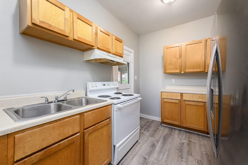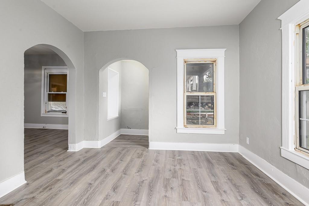 2 BDRM, 1 BTH BUNGALOW HOME W/NEW LAMINATE FLOORING THRUOUT. ROOF IS UNDER 7RS OLD, ORIGINAL WOOD WORK THRUOUT, HUGE LIVINGROOM AND DINING ROOM! LAUNDRY HOOKUPS IN BASEMENT, REFRIGERATOR & ELECTRIC STOVE/OVEN STAY WITH SALE OF PROPERTY. NEW VANITY IN BATHROOM, ENCLOSED BACKPORCH OFF KITCHEN OVERLOOKING PARTIALLY FENCED IN BACKYARD. OFFSTREET PARKING IN BACK OFF ALLEY THAT RUNS BEHIND THE HOUSES. BEING SOLD AS-IS!