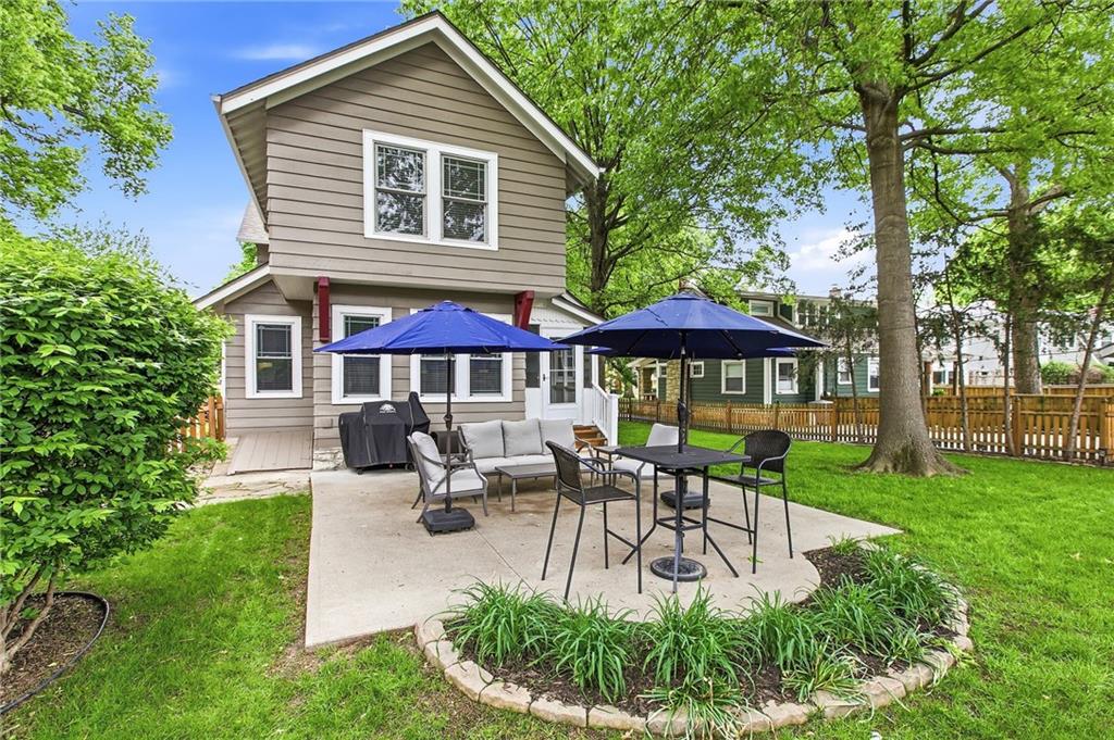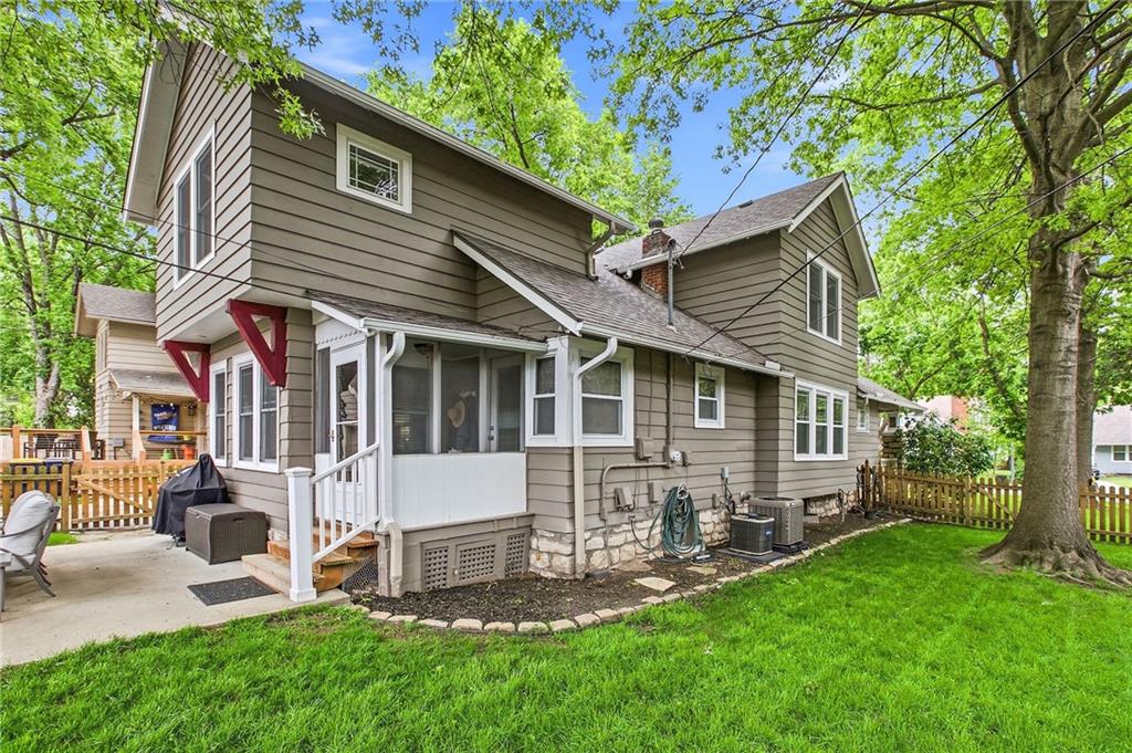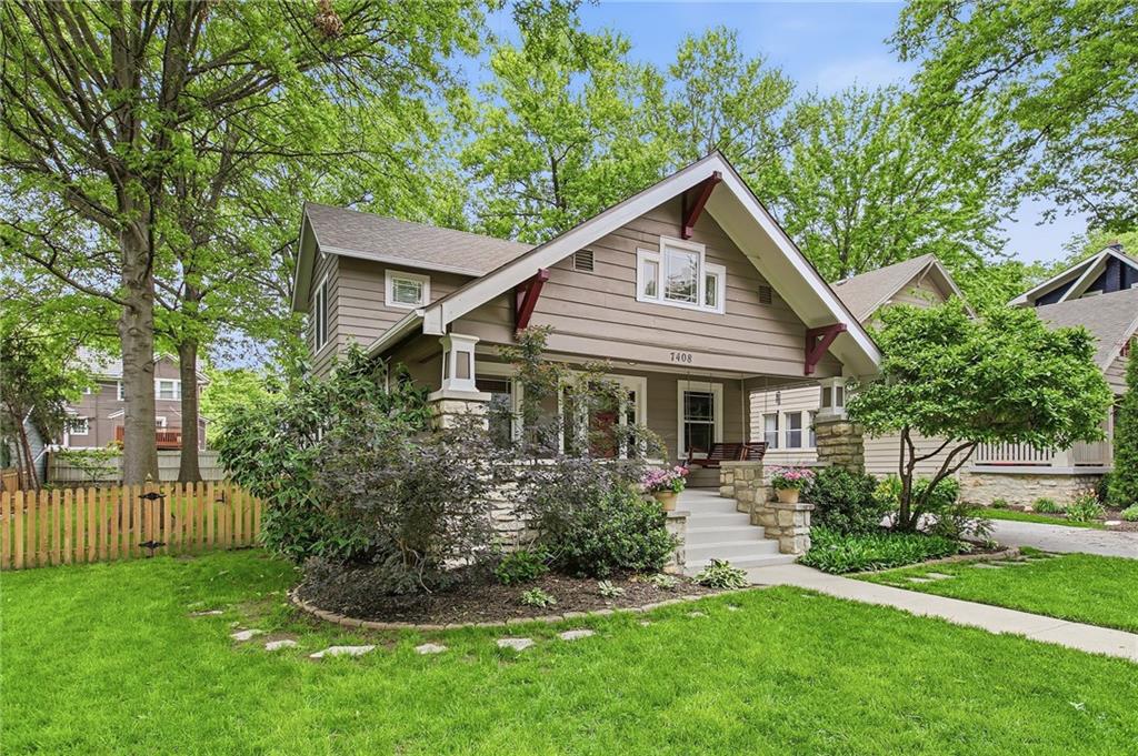 Welcome home to this beautifully maintained 2,308 SF Craftsman expanded Bungalow style home in an unbeatable Waldo location. Offering 4 bedrooms, 3 full baths, and a light-filled small office overlooking a fully fenced .23 acre yard, this home blends charm, space, and functionality. In addition to the kitchen, living and dining rooms, the main level features two bedrooms, a full bath and a dedicated office - perfect for working from home, in addition to a convenient mud room space. Upstairs you will find a spacious primary suite with very large walk in closet and private bath, PLUS an additional bedroom and full bath. The recently remodeled kitchen (within the last two years) shines with quartz countertops, all new appliances, new tile floor, windows and a beverage refrigerator - ideal for entertaining. Major updates include a complete roof replacement (2024) and newer lower level HVAC (within the last two years). Enjoy mornings on the expansive covered front porch that spans the length of the house or relax in the beautlfully landscaped backyard and patio - perfect for outdoor living. Complete exterior paint within the last 4 years. Beautifully maintained home. Located just East of Ward Parkway and North of 75th Street, you're within walking distance to schools, Waldo's shops, dining and growing amenties with easy access to everything Kansas City has to offer. A beautiful walking neighborhood with sidewalks on both sides of the street, don't miss your chance to see this charmer. Please note these photos taken Fall of 2024. Current photos to be uploaded prior to active date although nothing has changed on exterior.
