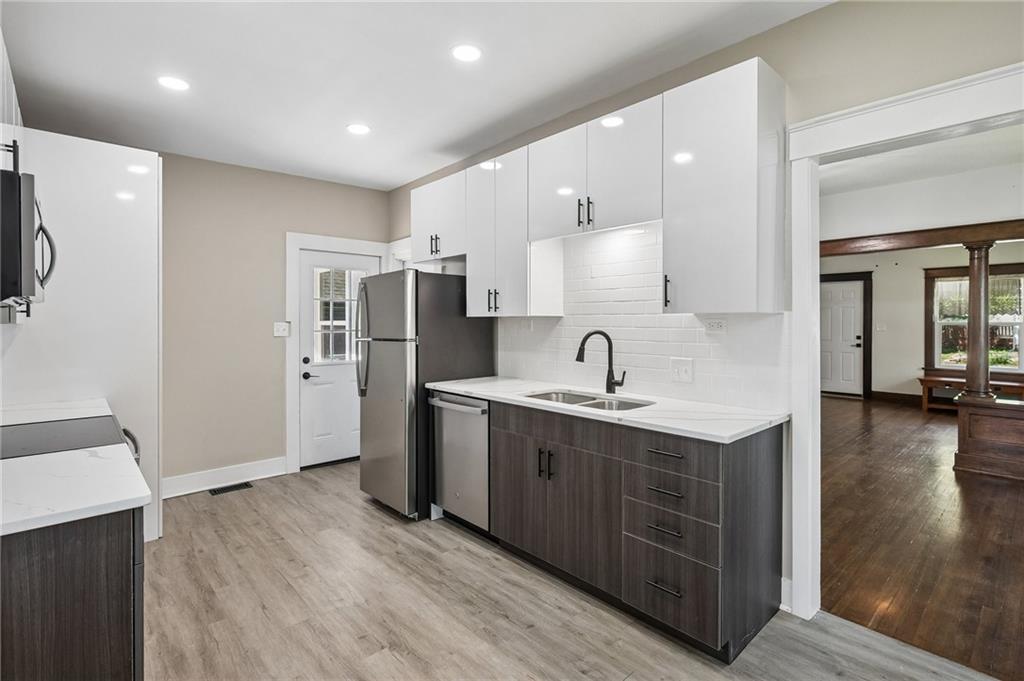 Timeless character meets thoughtful updates in this charming Liberty home just steps from Liberty Square. Blending historic charm with modern convenience, this home offers inviting living spaces filled with natural light, refinished floors, and fresh interior and exterior paint. The renovated kitchen features a functional layout with modern touches, while the remodeled bathroom adds a clean, updated feel. Recent updates to the roof, gutters, and windows provide added peace of mind. The deck overlooking the backyard provides a perfect space for relaxing or entertaining, along with both on- and off-street parking. Conveniently located near local shops, restaurants, and William Jewell College, this home offers a blend of character, modern touches, and a location that is hard to beat.