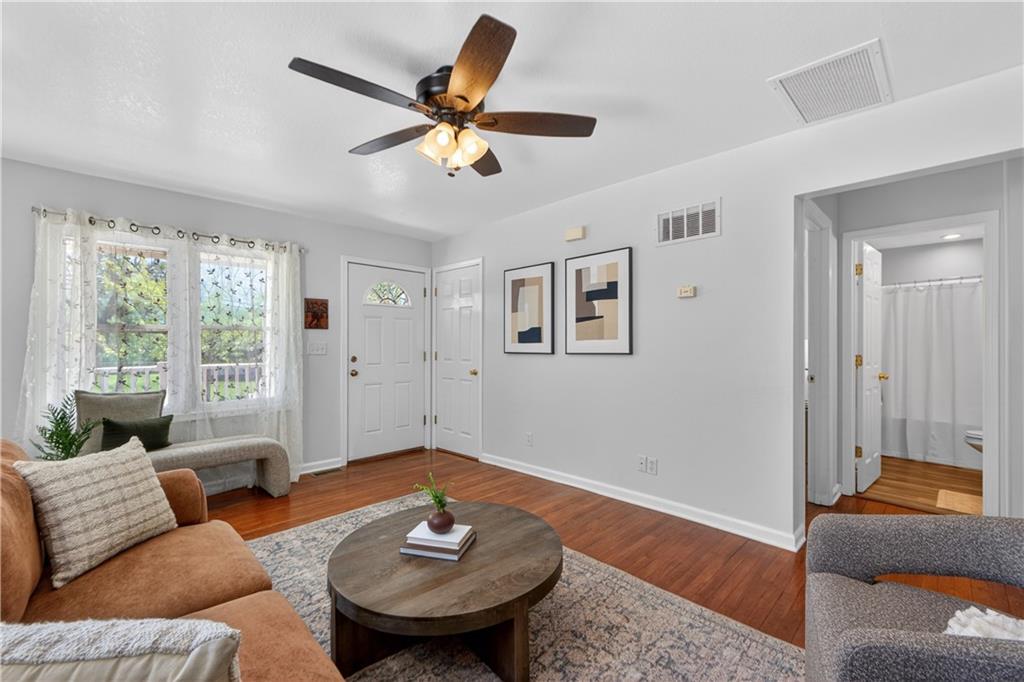 Charming, move-in ready and perfectly located?this adorable 2-bedroom, 1-bath home truly checks the boxes! You?ll love the inviting curb appeal featuring a circle driveway, covered front porch, beautiful landscaping, and a garden that adds the perfect touch of character. Inside, the main level offers two comfortable bedrooms, a full bath, and a functional kitchen with all appliances included, plus convenient main-floor laundry. Large windows throughout fill the home with natural light, creating a warm and welcoming feel. The home also features an accessible wheelchair ramp, offering added flexibility if needed. A detached garage adds extra storage and convenience. Lovingly maintained and close to everything you need.