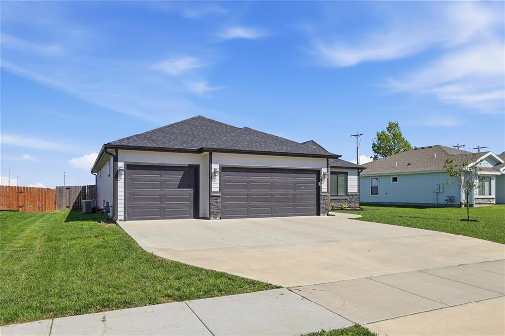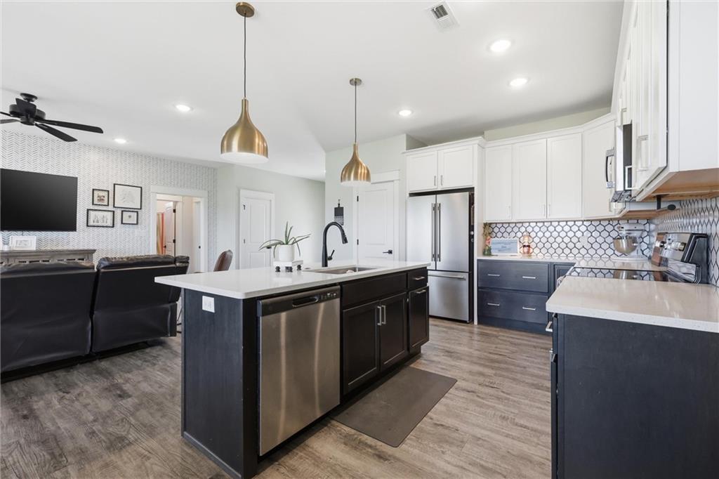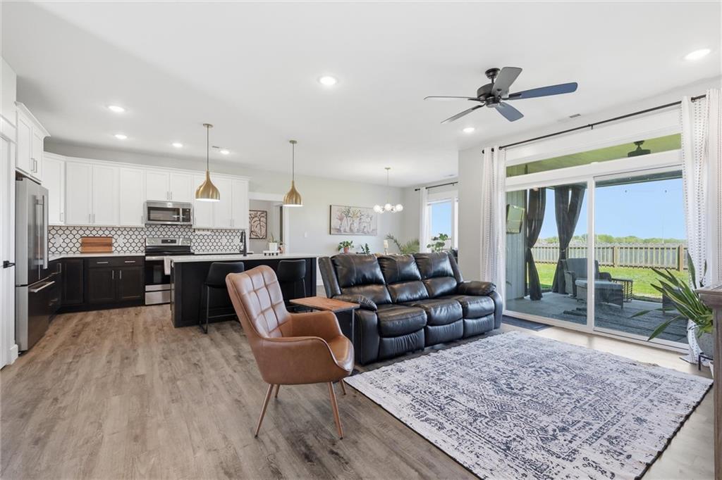 This nearly new home, built in 2023, is located in Shadow Ridge and sits directly behind Eudora Middle School. The open living space flows out to the covered back patio and fully fenced backyard. The kitchen features a large island, white quartz countertops, a walk-in pantry, and all kitchen appliances stay. The primary bedroom offers an en suite bath and a large closet, while the other two bedrooms are located on the opposite side of the home. Enjoy the benefits of a newer home with added personal touches throughout, such as fresh paint, wallpaper, and upgraded fixtures.