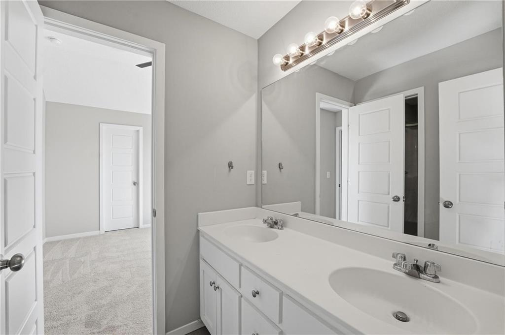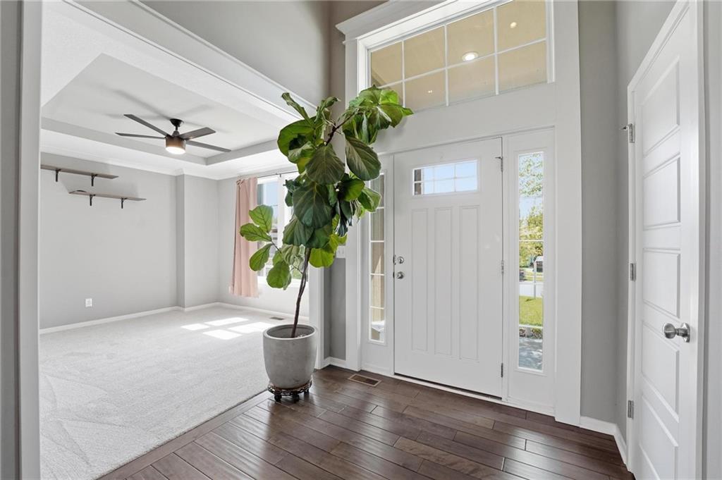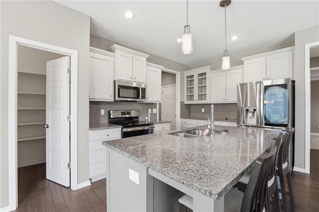 This beautifully maintained 4-bedroom, 3.1-bath home offers the perfect blend of comfort, style, and everyday functionality in a highly desirable Olathe location. From the moment you arrive, the charming front porch sets a welcoming tone, leading into a bright and airy interior with soaring ceilings and an inviting entryway. The main living area is filled with natural light and features a cozy fireplace, creating an ideal space for both relaxing and entertaining. The open-concept layout flows seamlessly into the kitchen, where granite countertops, a large island, ample cabinetry, and a new microwave make both cooking and gathering effortless. Fresh new carpet enhances the home’s clean, updated feel, while thoughtful design elements throughout provide both style and practicality. Upstairs, the spacious primary suite offers a peaceful retreat with a tray ceiling and a well-appointed en-suite bath. Additional bedrooms provide flexibility for family, guests, or home office needs. A versatile loft area with built-in shelving adds even more functional living space. Step outside to enjoy the newly landscaped yard with freshly laid sod, offering plenty of room to relax or play. The outdoor living area is perfect for entertaining, complete with a patio and outdoor TV for enjoying evenings at home. The unfinished basement presents a fantastic opportunity to customize additional living space to suit your needs. Ideally situated near shopping, dining, and everyday conveniences while still offering a quiet, neighborhood feel, this home combines location, community, and livability in one exceptional package.