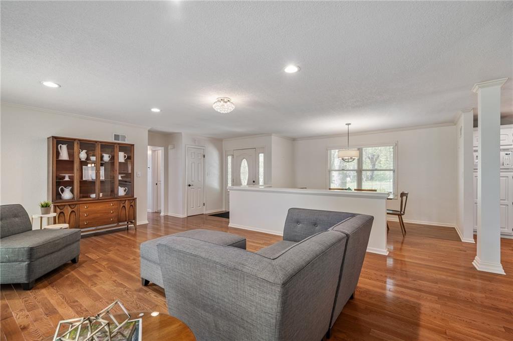 If you love the charm of mature trees and spacious yards in Leawood Estates but don’t want the million-dollar price tag, this is your opportunity. From the moment you drive up, this beautifully maintained home makes a lasting impression and continues to wow as you step inside. Move-in ready and thoughtfully updated, it offers an inviting open layout perfect for entertaining family and friends. The light-filled kitchen is a standout, featuring a gas range, abundant cabinetry, quartz countertops, and generous natural light. The living room is equally impressive with a masonary fireplace framed by windows and classic built-in display shelving, creating a warm and welcoming focal point. The primary suite is privately situated on one side of the home, complete with a wall of closets and an ensuite bathroom. Two additional bedrooms are located on the opposite side, offering comfort and privacy for family or guests. All three bedrooms have brand-new carpet with upgraded 8# padding. A conveniently located laundry room sits between the primary bedroom and kitchen for everyday ease. Extend your living space into the multi-season room, perfect for relaxing or entertaining year-round, and step outside to enjoy the charming paver brick patio. The expansive yard, shaded by mature trees, provides a peaceful retreat throughout the summer months. Two car garage with extra wide driveway. Located near Brookwood Elementary School and just minutes from the scenic Indian Creek Trail, this home also offers quick access to major highways for added convenience. This is a rare chance to enjoy the character and location you love—at a price point that makes sense.