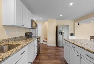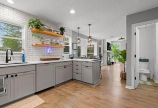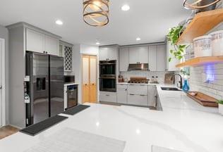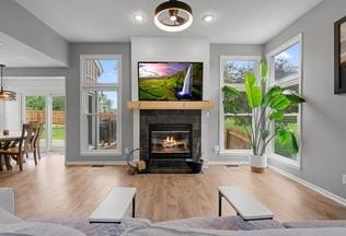 Located in a highly sought-after neighborhood known for its privacy and convenience, this beautifully updated home sits on a cul de sac just under 4 miles from Kearney with easy highway access. The elevated setting and long driveway create strong curb appeal, complemented by a well-maintained, landscaped yard. Inside, you’ll find a spacious main living area with vaulted ceilings, skylights, and abundant natural light. The large living room offers flexibility for multiple seating areas and features a cozy fireplace. The kitchen has been updated with quality cabinetry, appliances, and modern finishes, along with a walk in pantry, updated half bath, and access to both the garage and basement. Just off the kitchen is a large wood deck, perfect for entertaining. Upstairs features 4 bedrooms, including a primary suite with tray ceiling, walk in closet, and a beautifully updated bathroom with custom shower. The additional bedrooms offer generous closet space, and the hall bath has also been recently remodeled. The newly installed carpet completes the upper level. The finished walkout basement offers a full apartment style setup with its own kitchen area, large living space, bedroom with egress window, full bath, and second laundry. With separate driveway access, it provides excellent privacy for guests or multi-generational living. Updates include basement bedroom, basement finished less than 10 years ago, wood privacy fence, major kitchen and main floor remodel with deck extension, new garage doors just a few years ago, and remodeled bathroom and upstairs updates. This home offers space, flexibility, and a location that’s hard to beat.