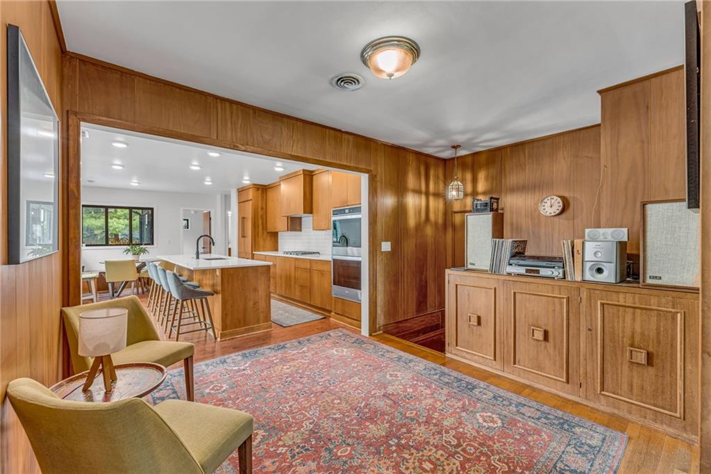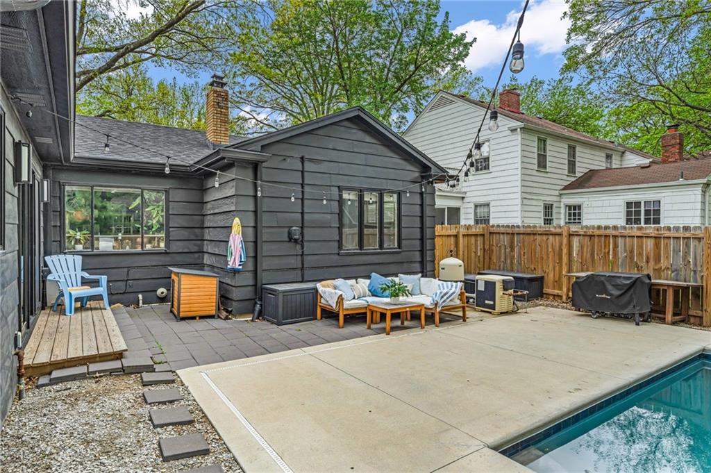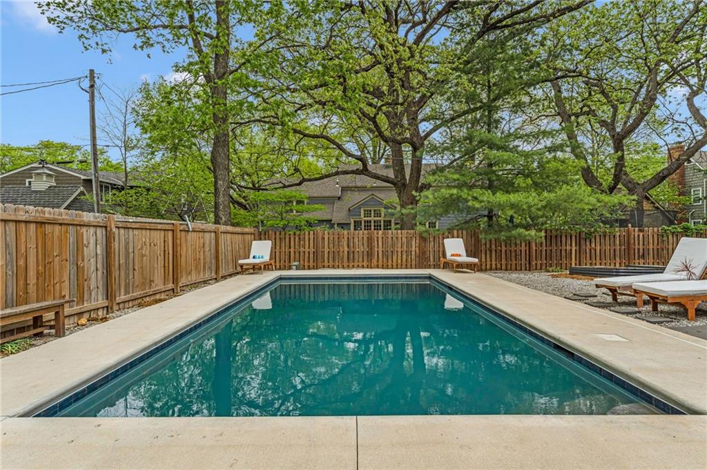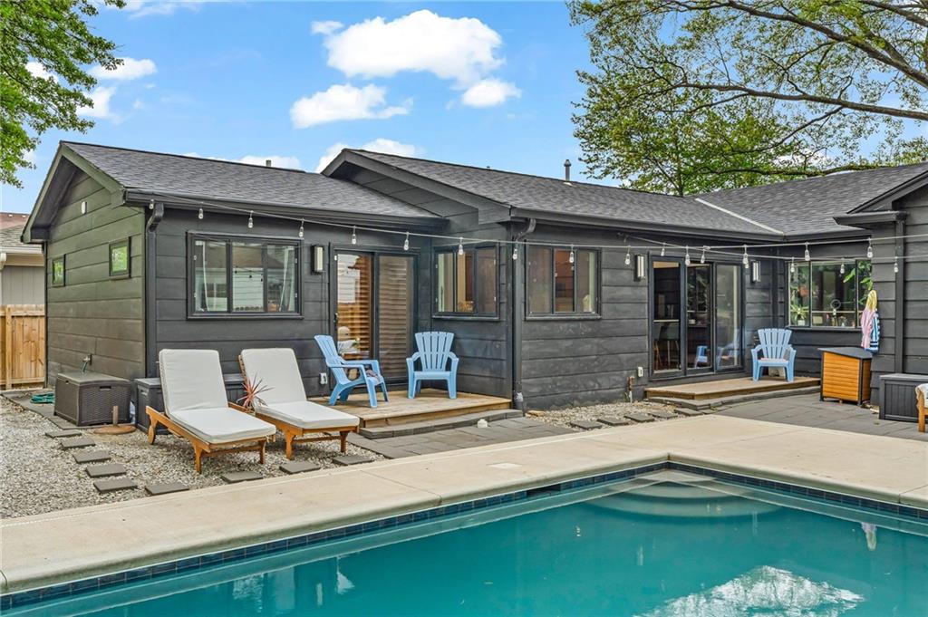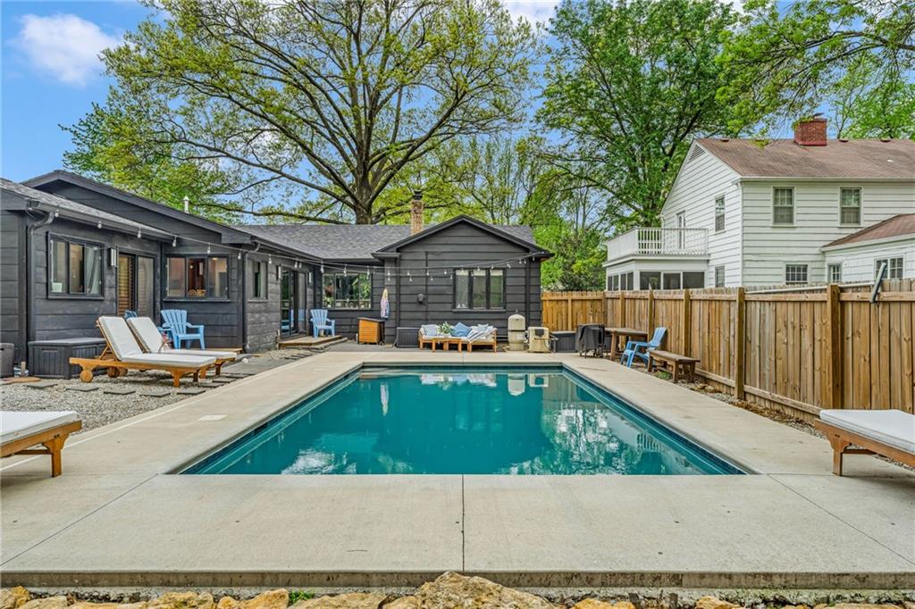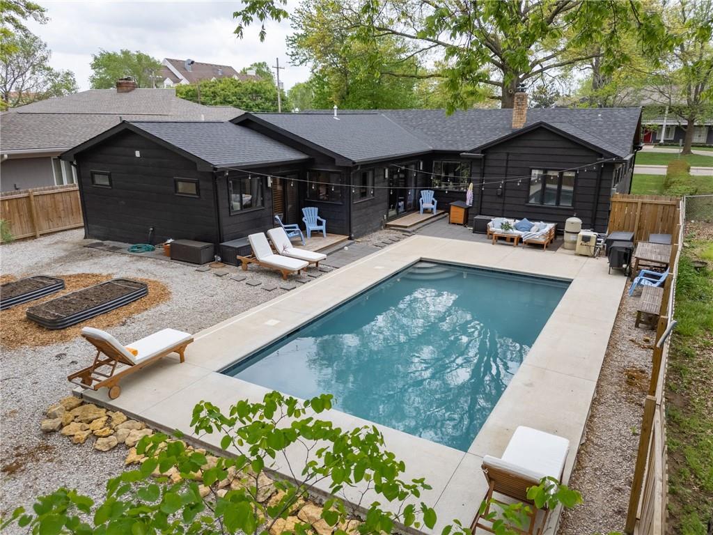 Set along one of Lawrence’s most storied corridors, 1506 University Drive is a study in what it means to live well — steps from the University of Kansas campus, yet removed enough from the ordinary to feel entirely your own. The home’s midcentury bones have been thoughtfully elevated: original wood-paneled rooms, clean geometric lines, and an effortless indoor-outdoor flow that feels both curated and lived-in. Inside, a fully renovated chef’s kitchen anchors the heart of the home — warm wood cabinetry to the ceiling, white quartz waterfall island, professional-grade appliances, and hardwood floors that glow underfoot. The reimagined primary suite is a private retreat: a generous bedroom paired with a spa-caliber bath featuring double vanity, walk-in shower, soaking tub, and a dedicated walk-in closet. Beyond the walls, a resort-style saltwater pool commands the rear garden — a crystalline centerpiece around which evenings unfold slowly. String lights, mature oaks, raised garden beds, and a fully fenced yard complete the picture. Whether you arrive for the football Saturdays or the daily ceremony of a morning walk to campus, this home understands exactly who you are.